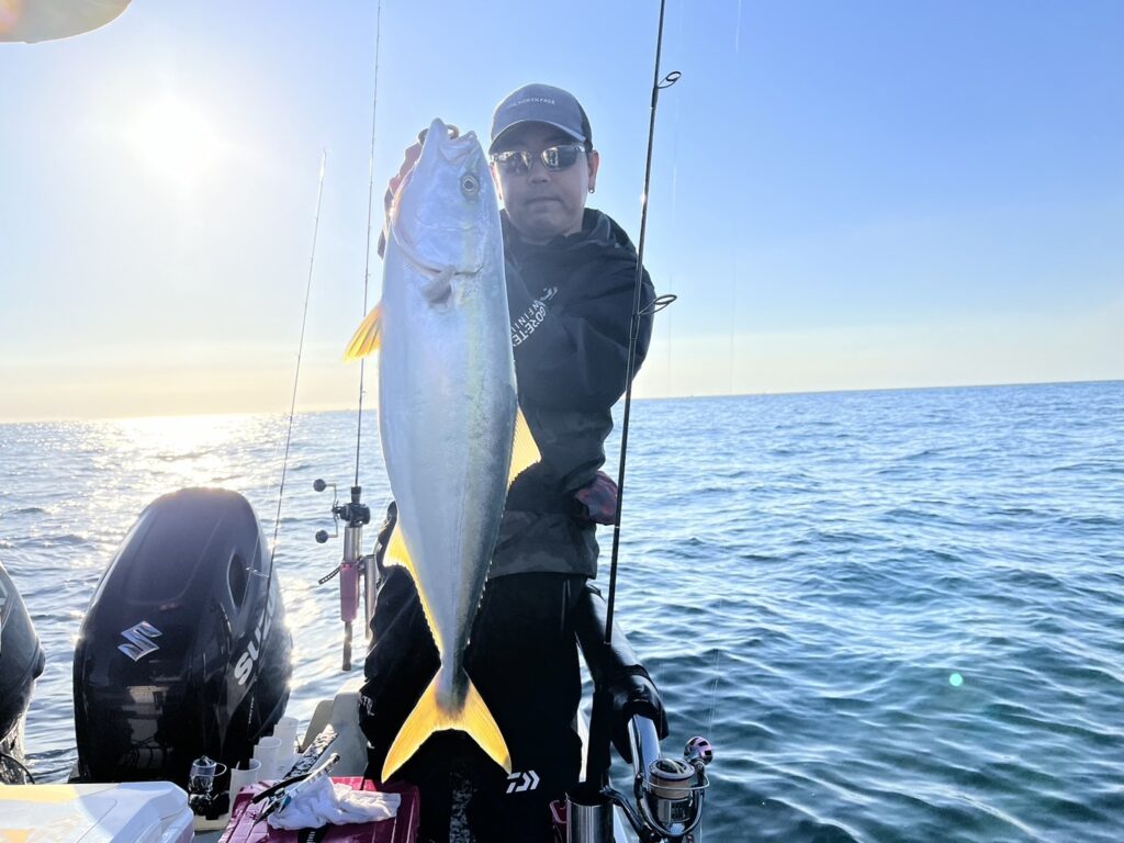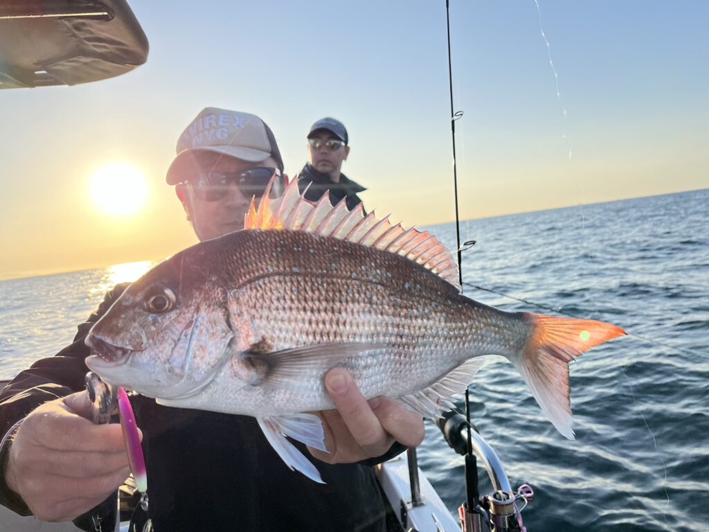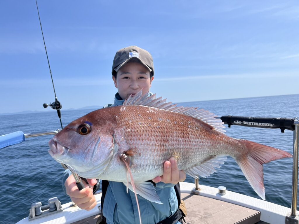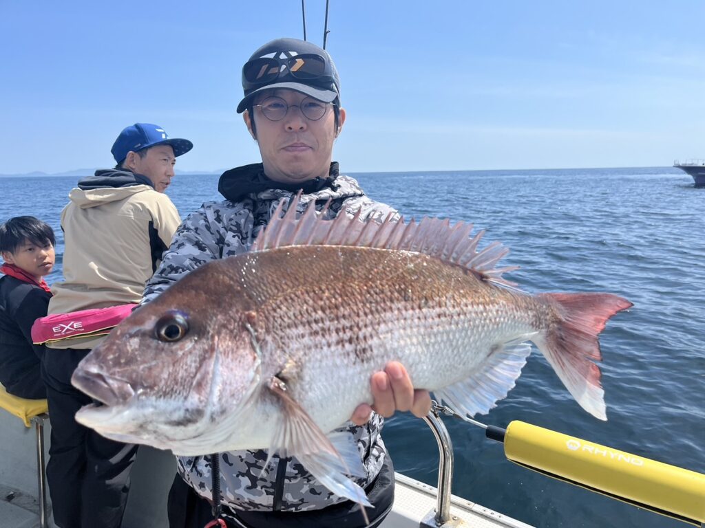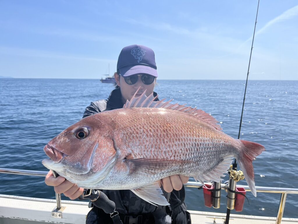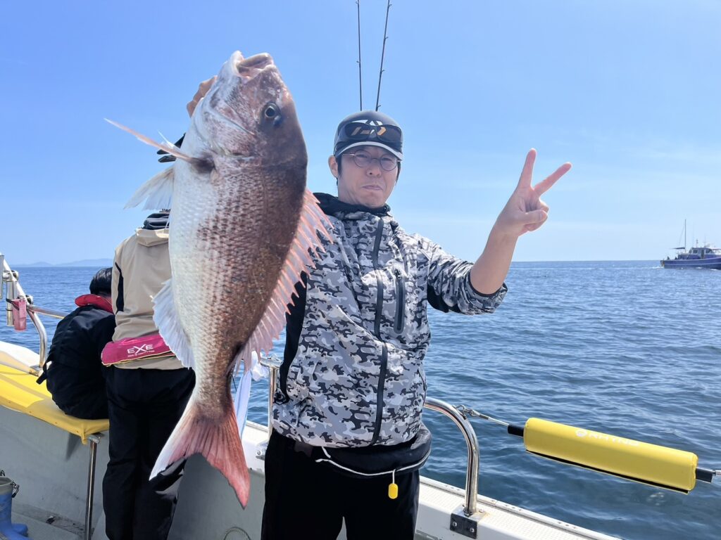 ファーストポイントに着いて1投目でいきなり本命真鯛をキャッチ!