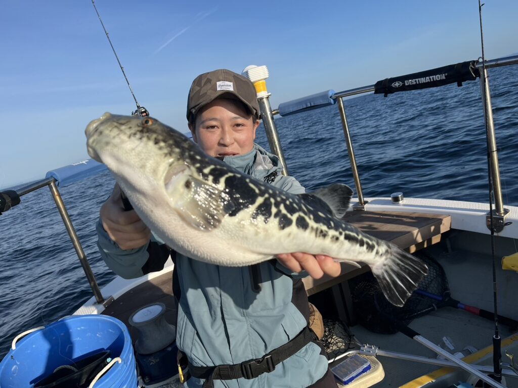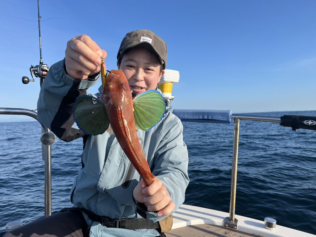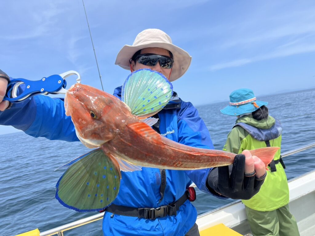 本日の釣果は、真鯛、ハナダイ、ホウボウ、カナガシラ、ワラサ、マサバ、トラフグ、ショウサイフグ、ヒラメ、ミズガレイ、ヤリイカ、ケンサキイカ‥‥12目。