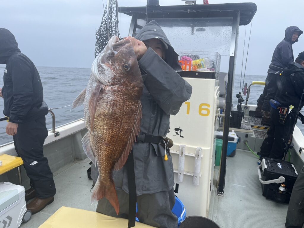 こちらの釣りガールは、当船初乗船で見事女子部門今季最大の73cmの雄白子大鯛をキャッチ!おめでとう🎉