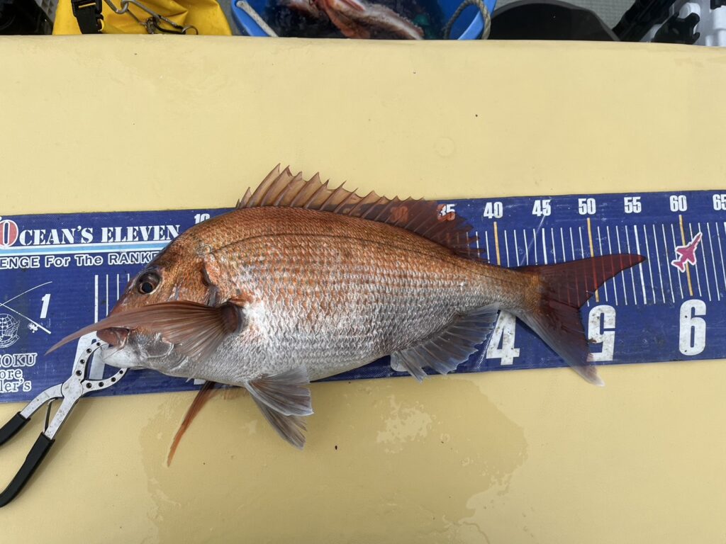 それでもポイントに着くと、直ぐに63cmの本命真鯛をキャッチ!
