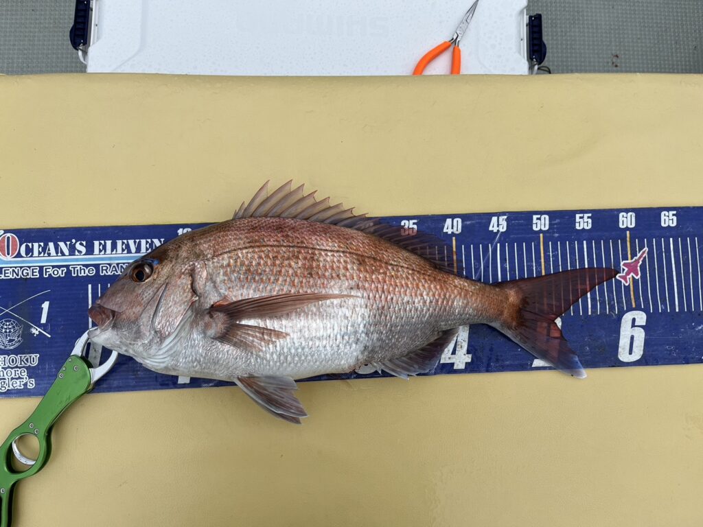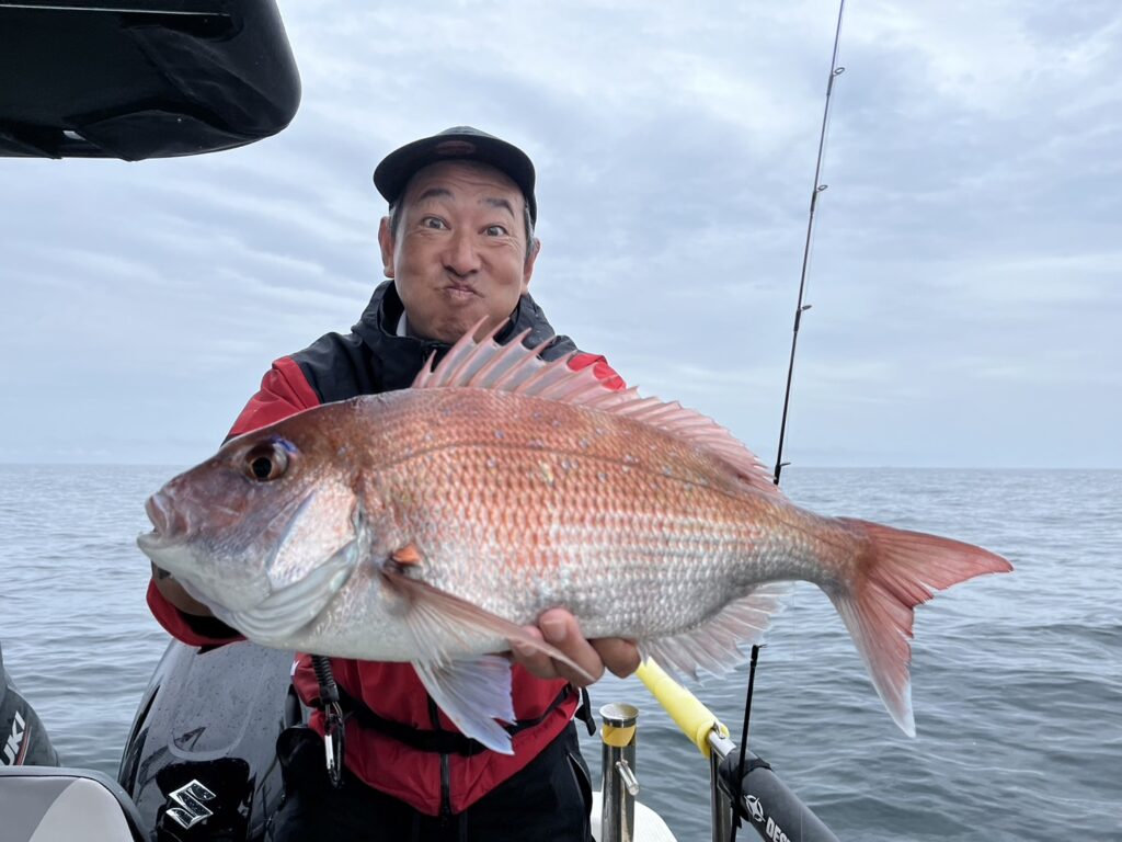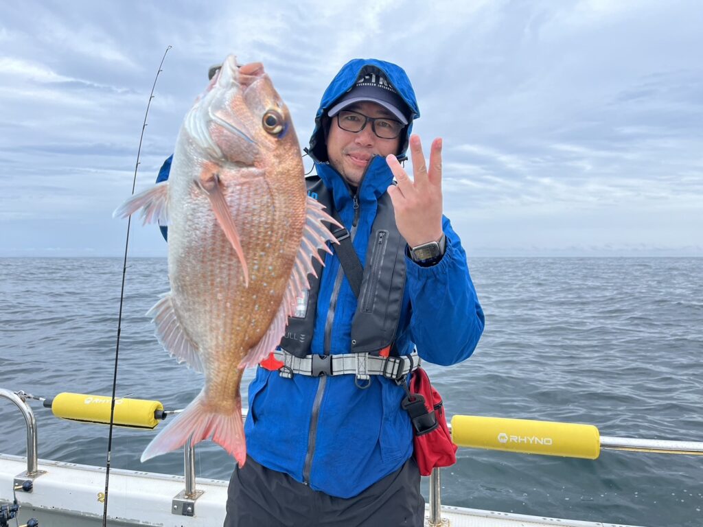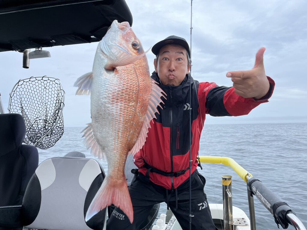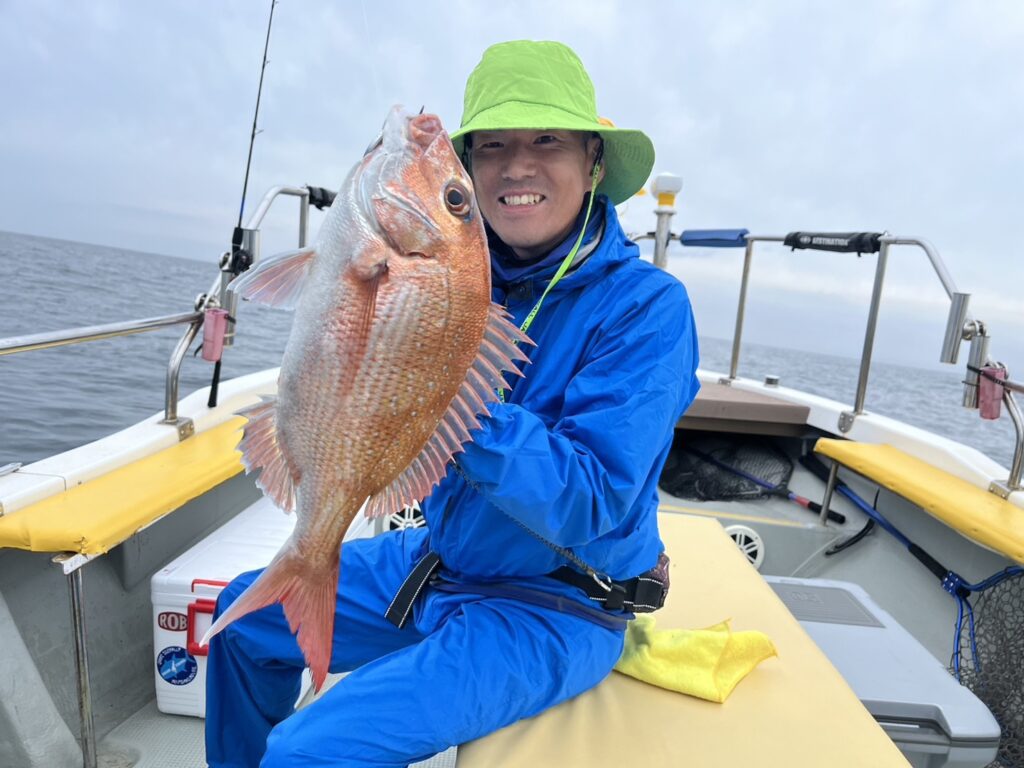 ゆっくりポイントに着くと、早速本命真鯛をキャッチ!