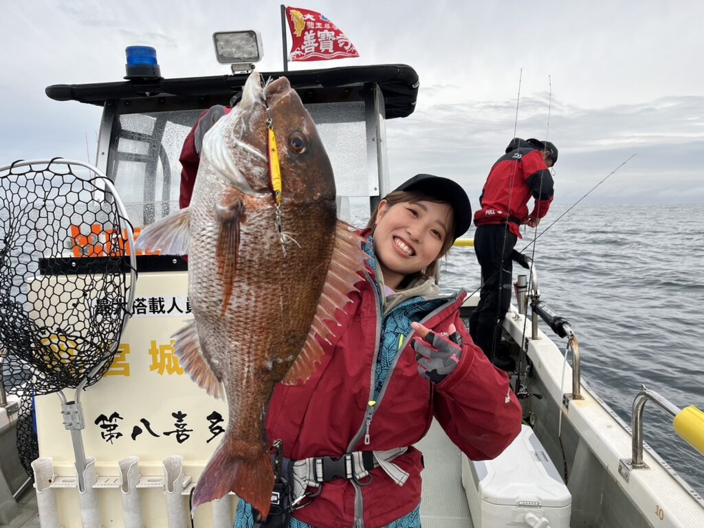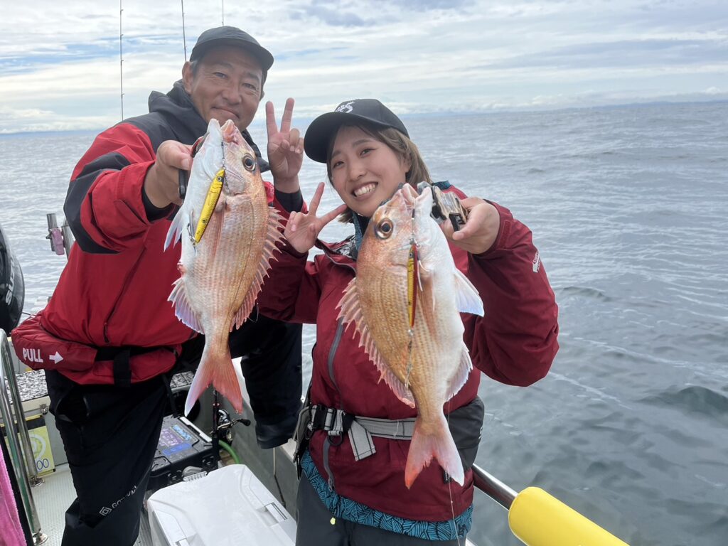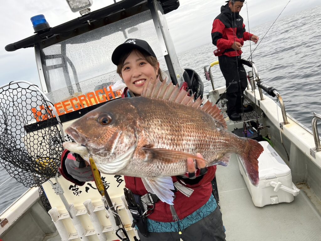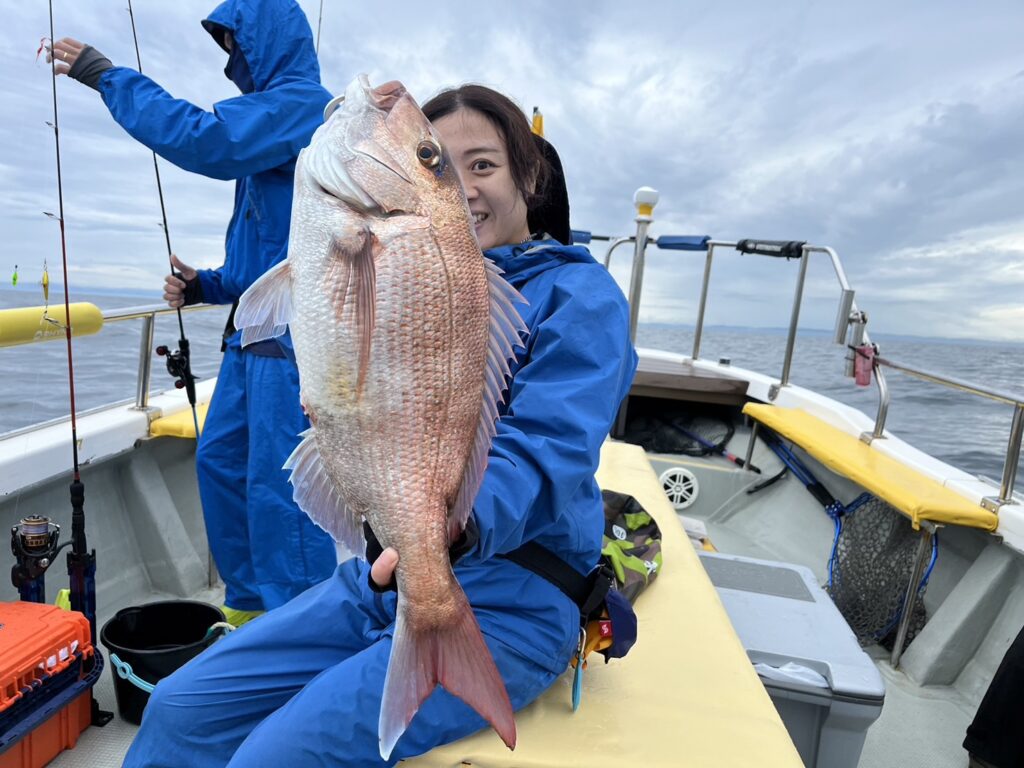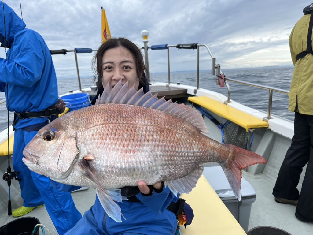 ゆっくりポイントに着くと、早速本命真鯛をキャッチ!