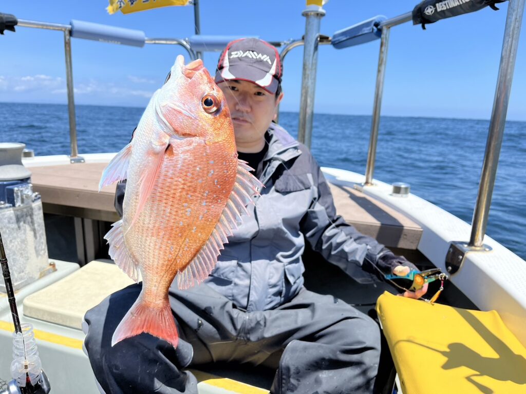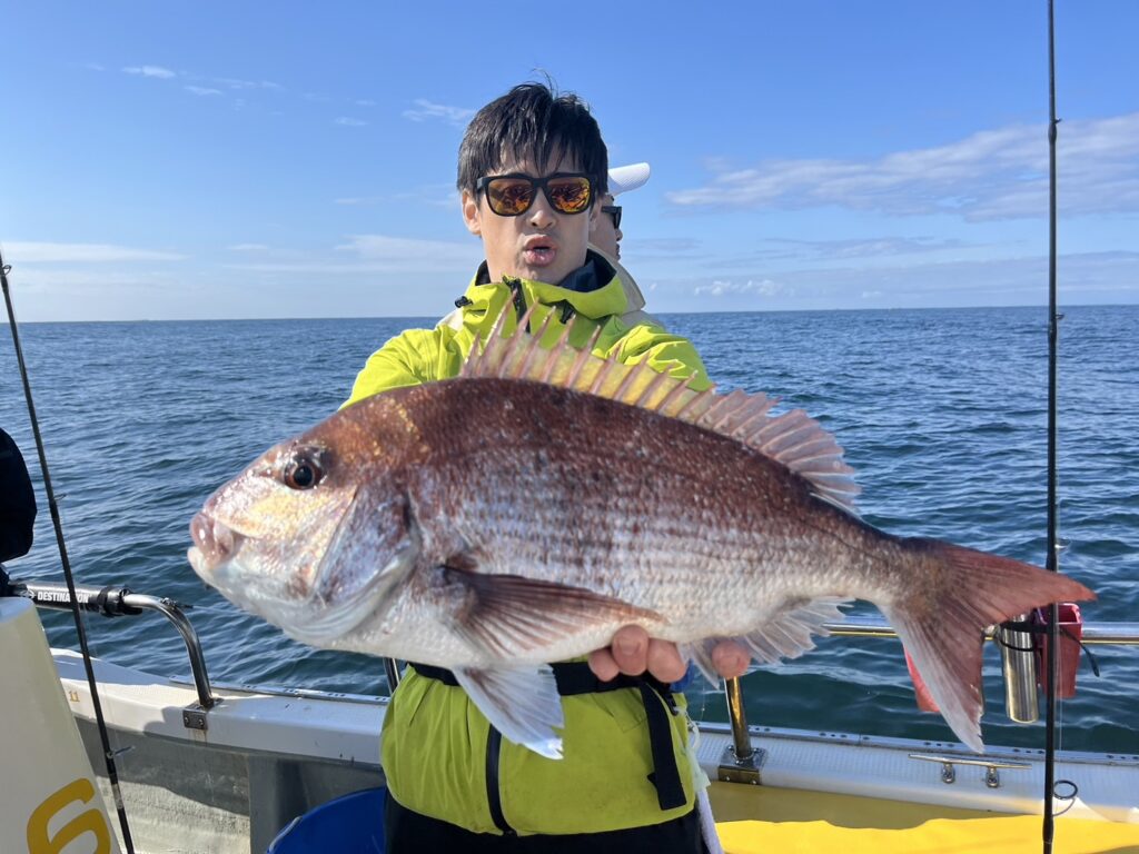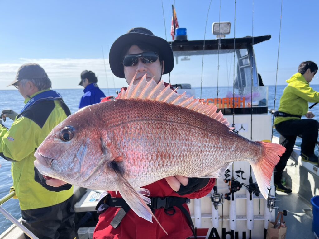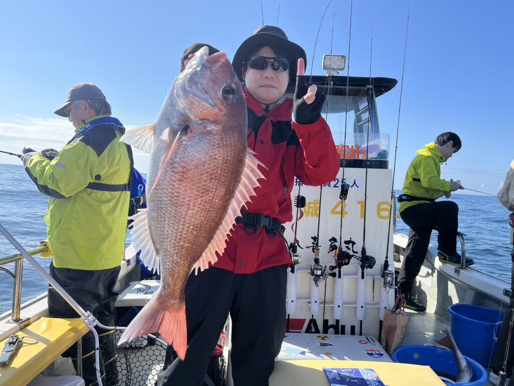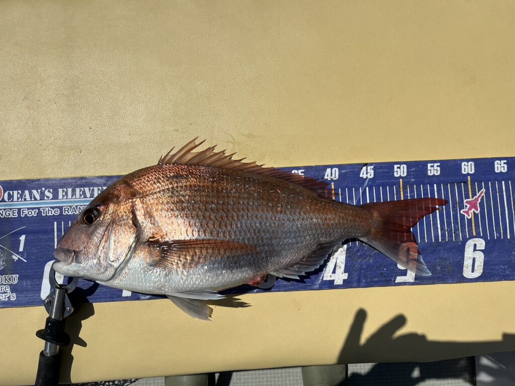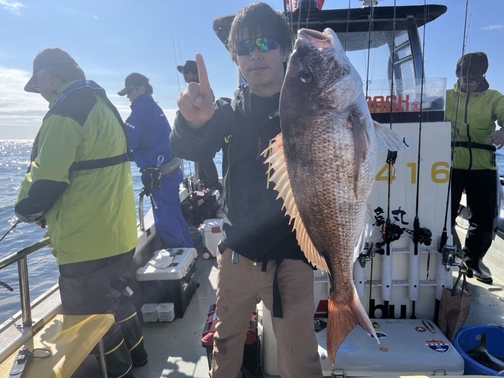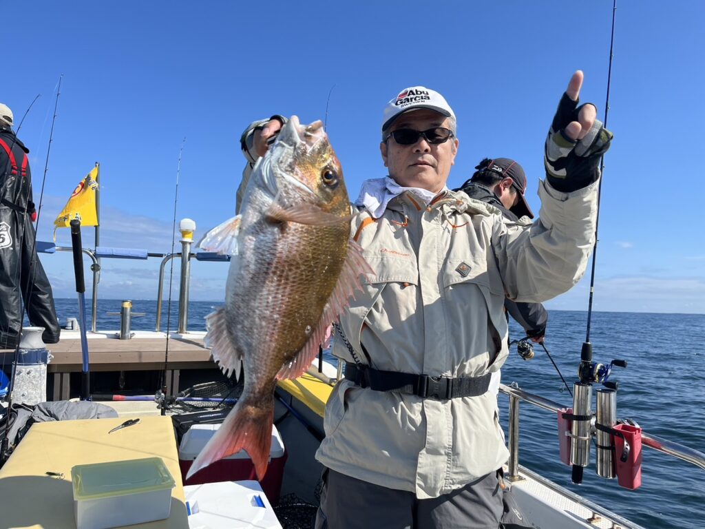すると1投目から本命真鯛をキャッチするとノッコミ真鯛連発!!!