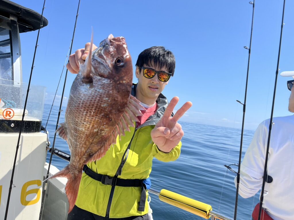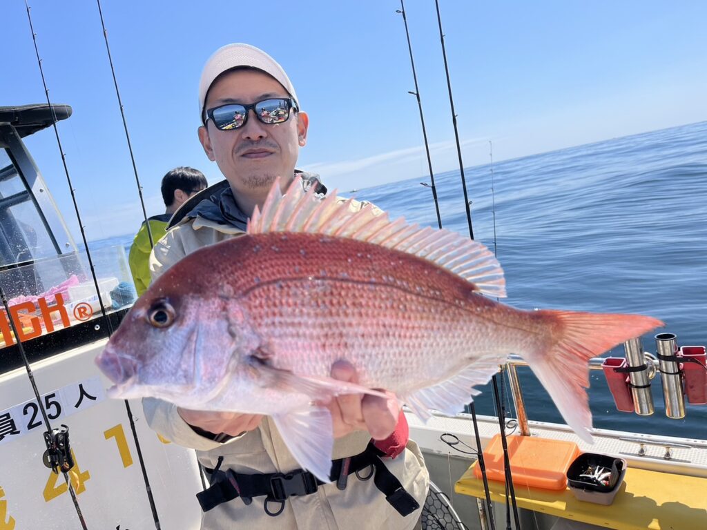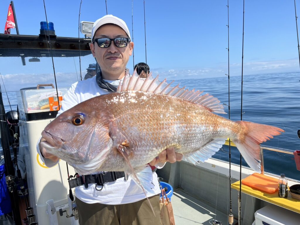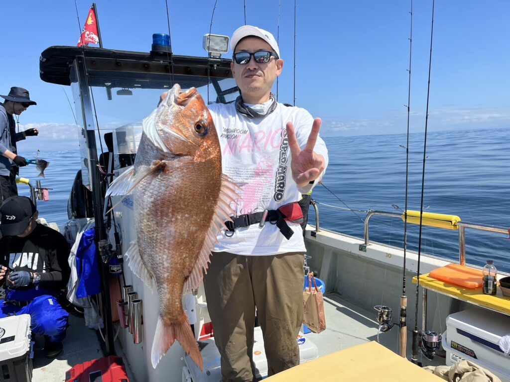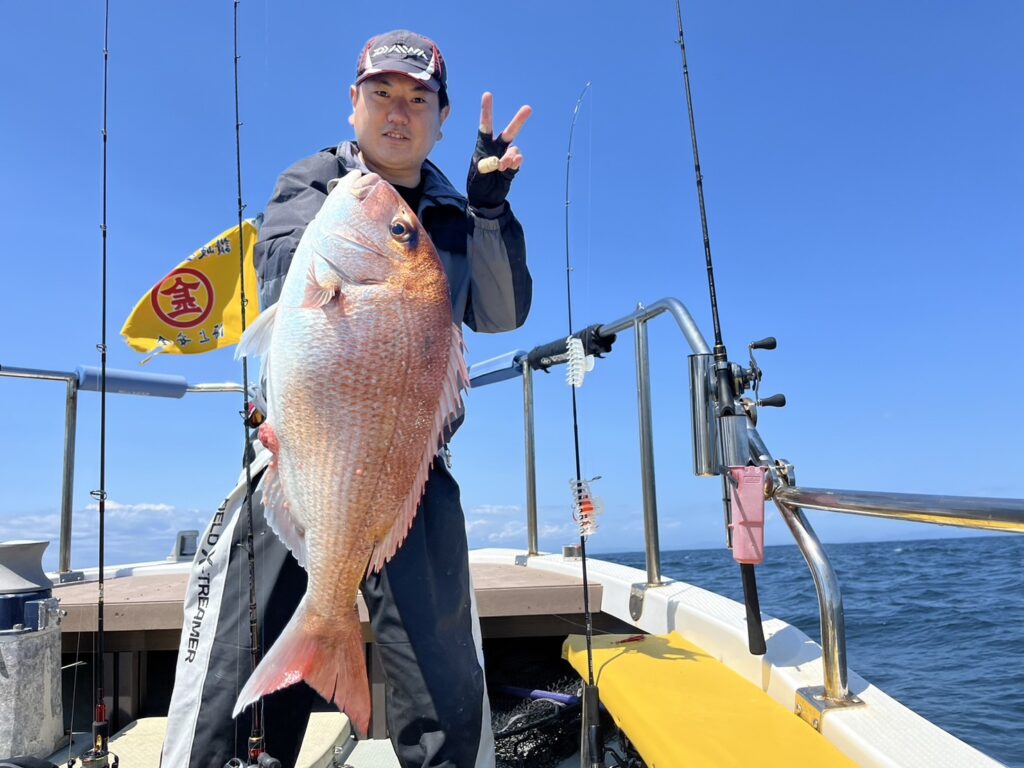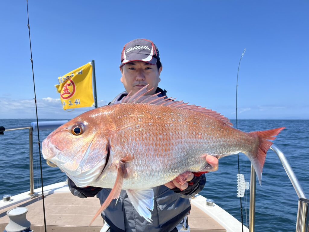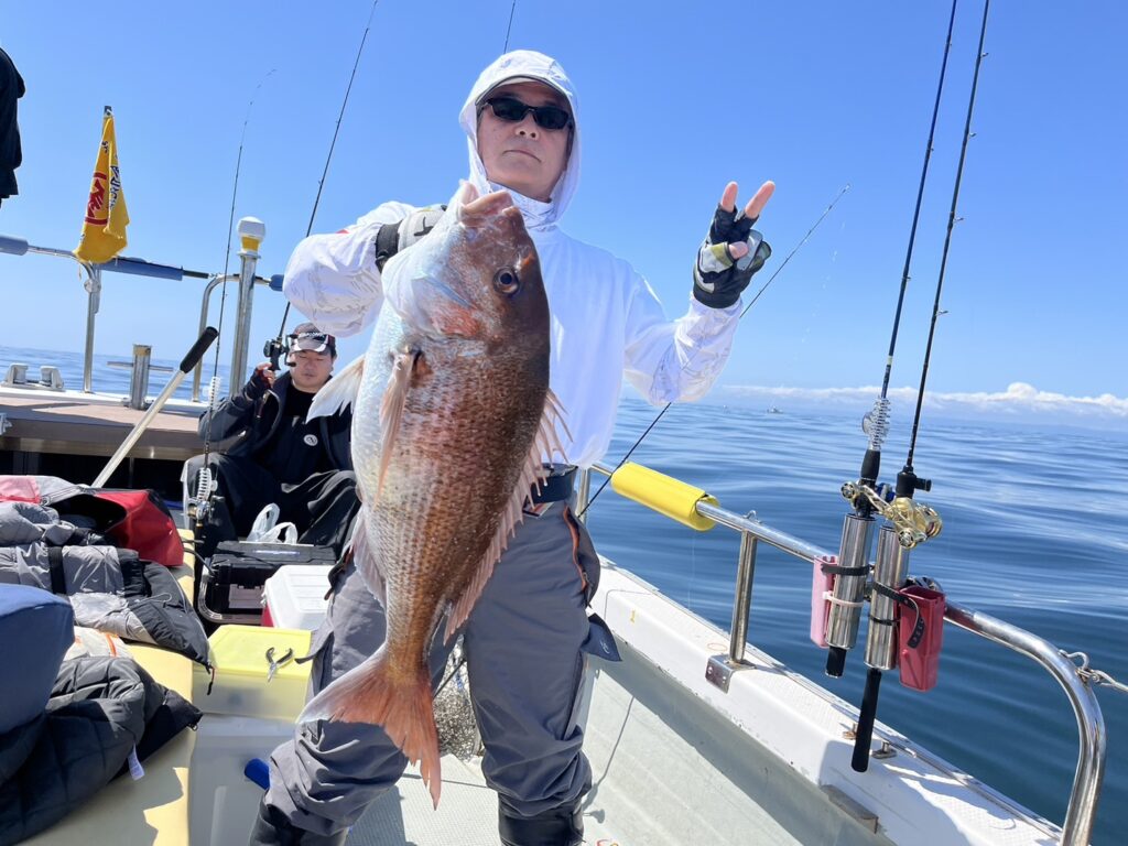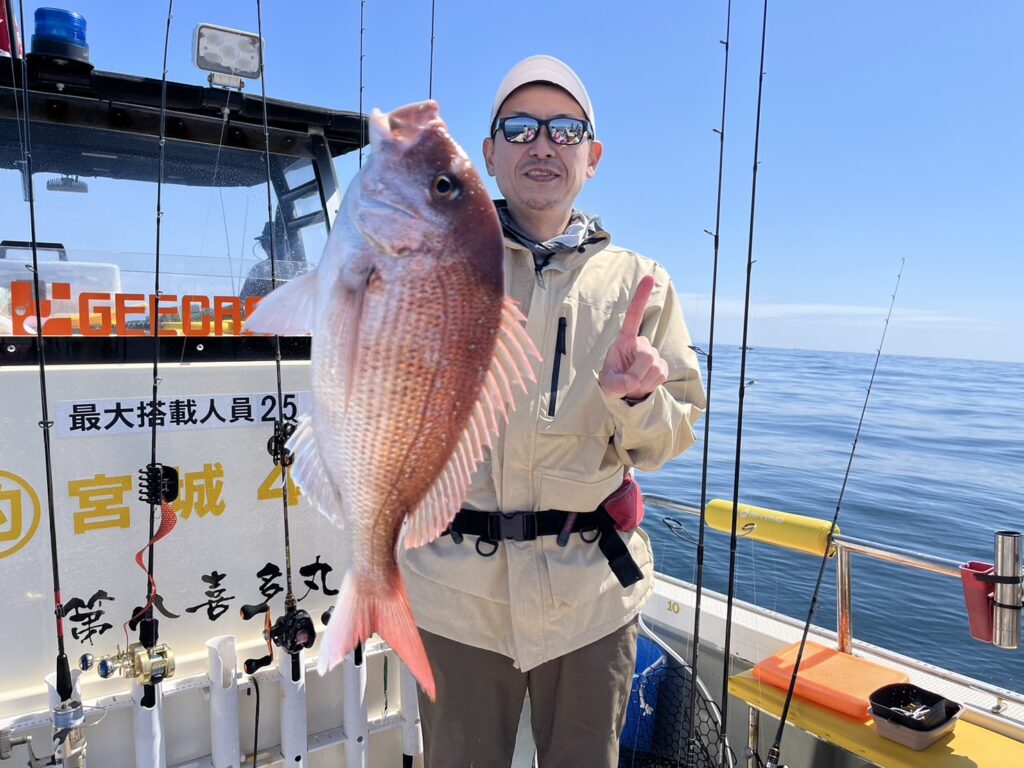 すると1投目から本命真鯛をキャッチするとノッコミ真鯛連発!!!
