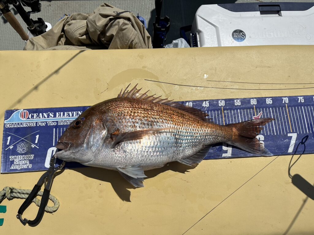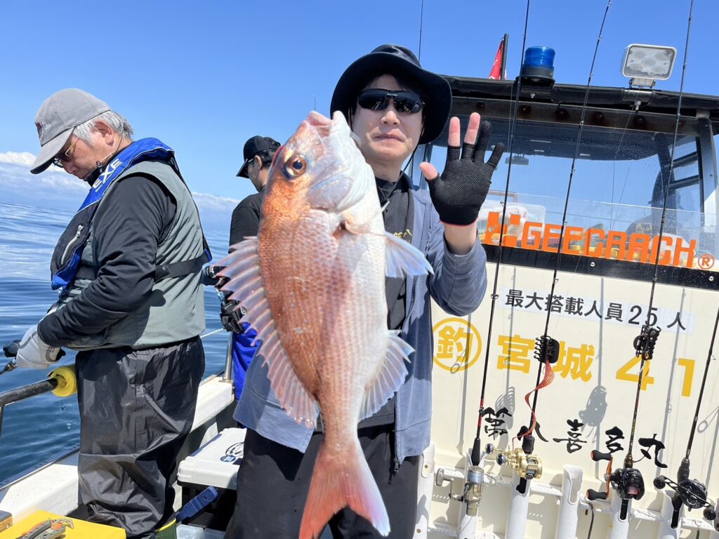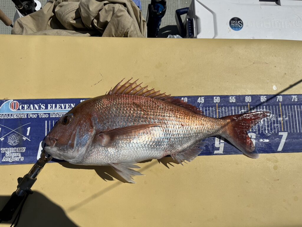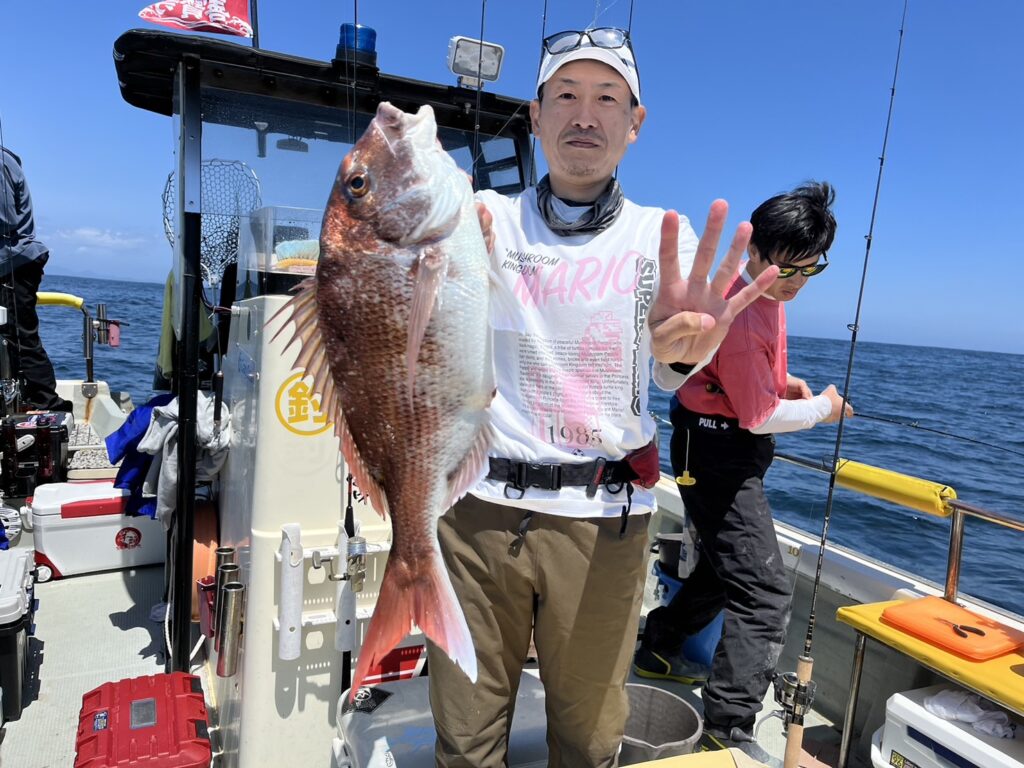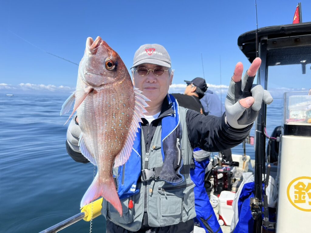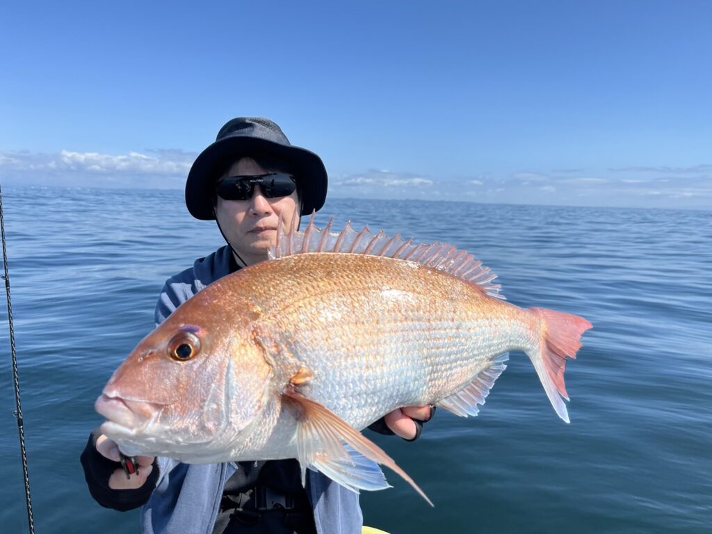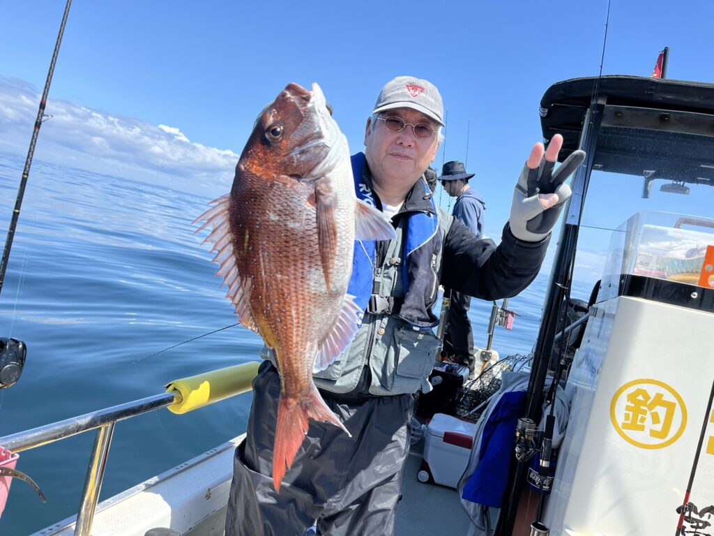 すると1投目から本命真鯛をキャッチするとノッコミ真鯛連発!!!