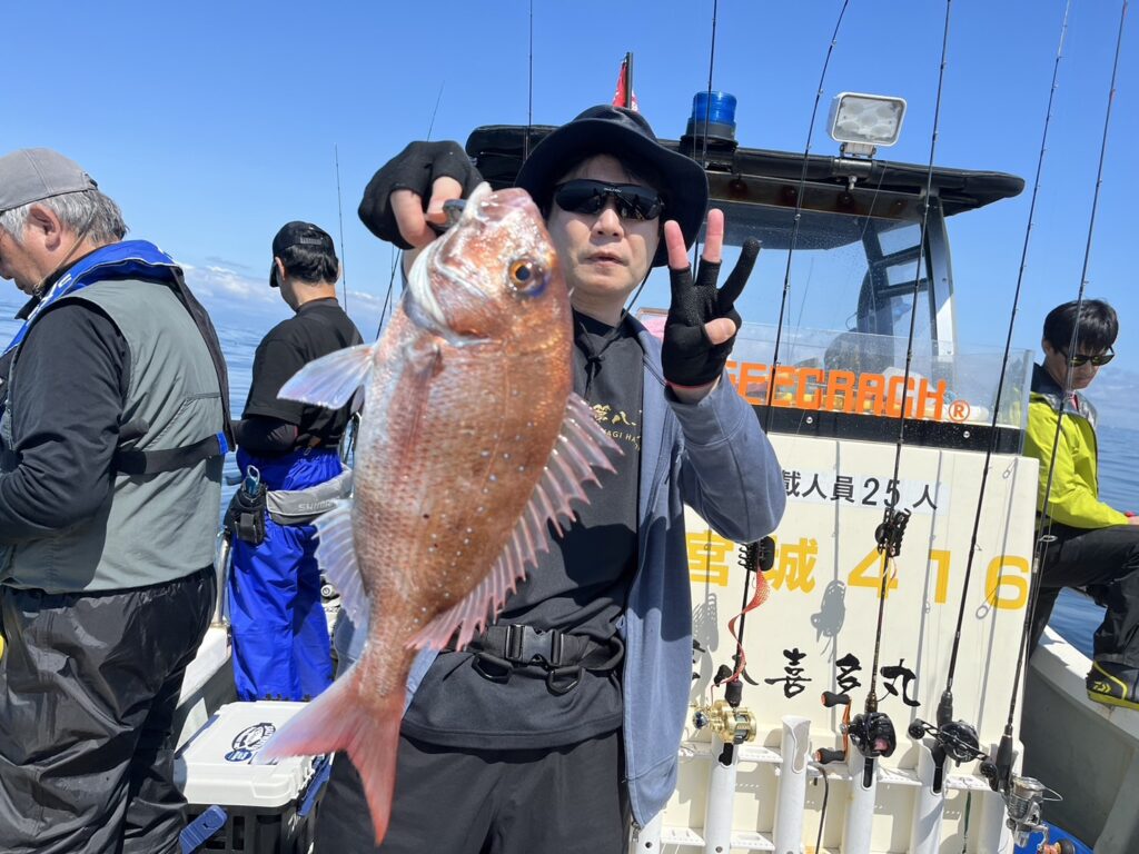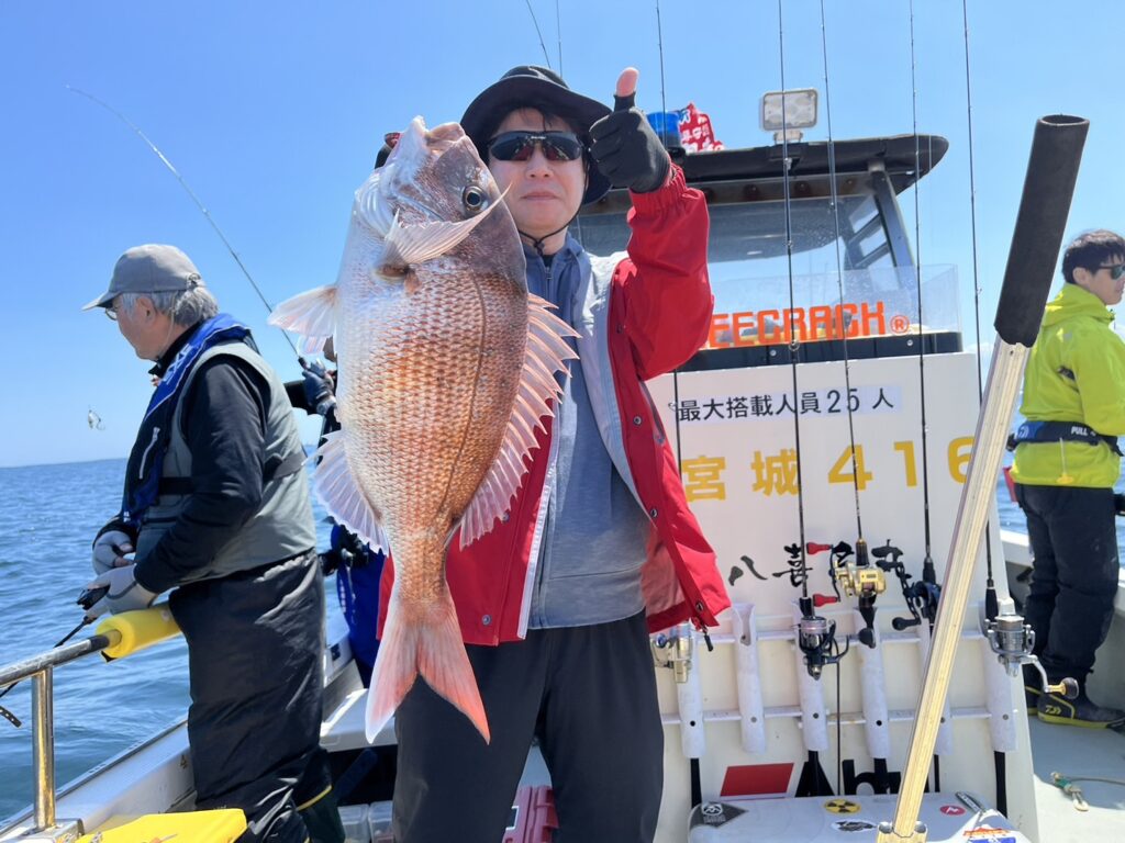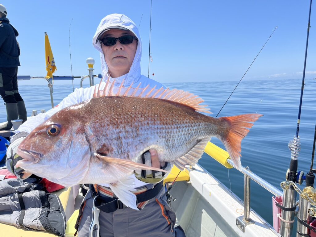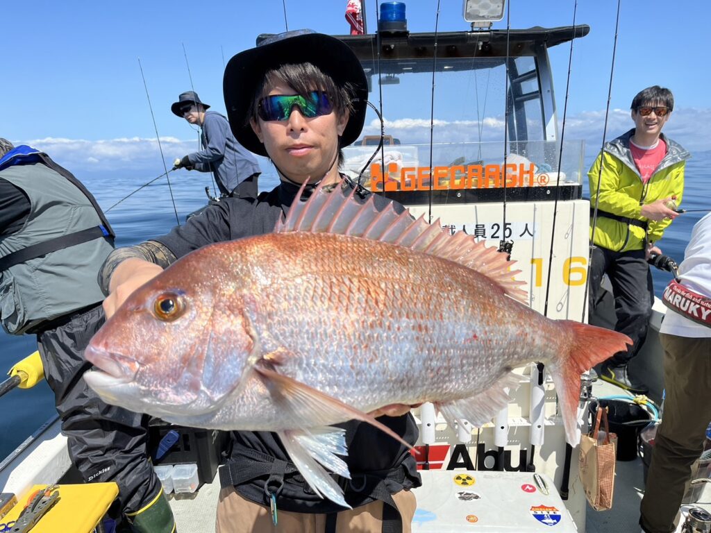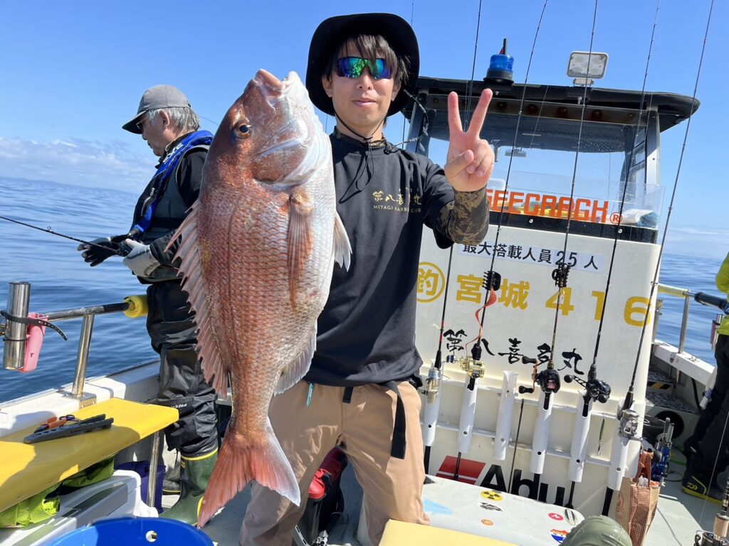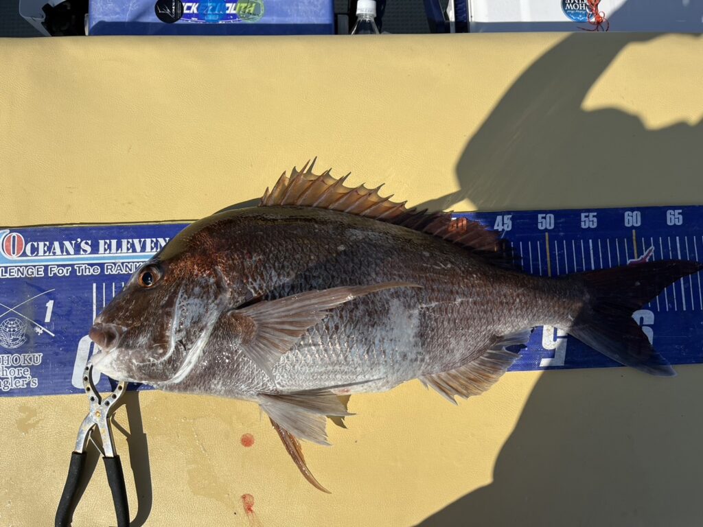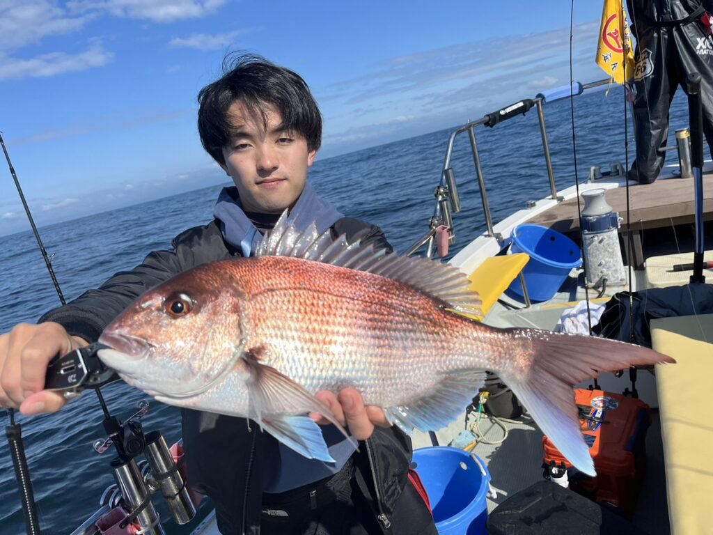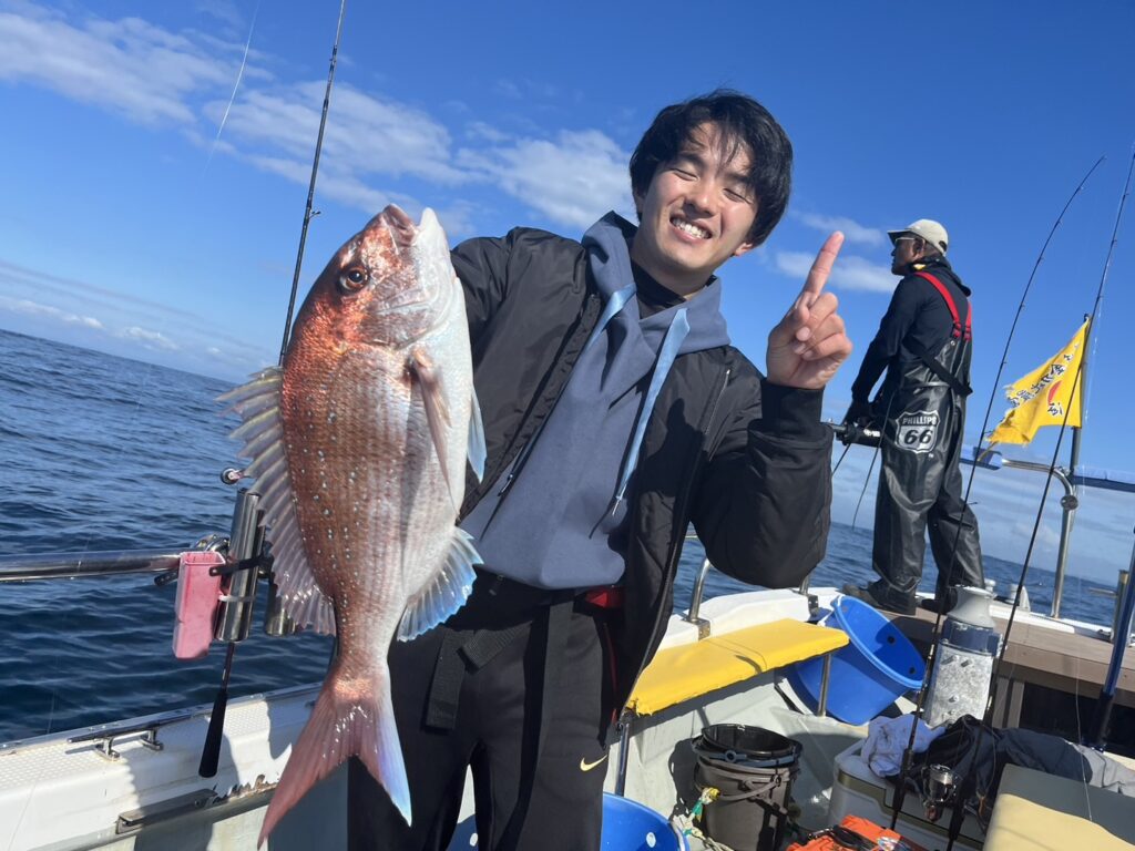 すると1投目から本命真鯛をキャッチするとノッコミ真鯛連発!!!