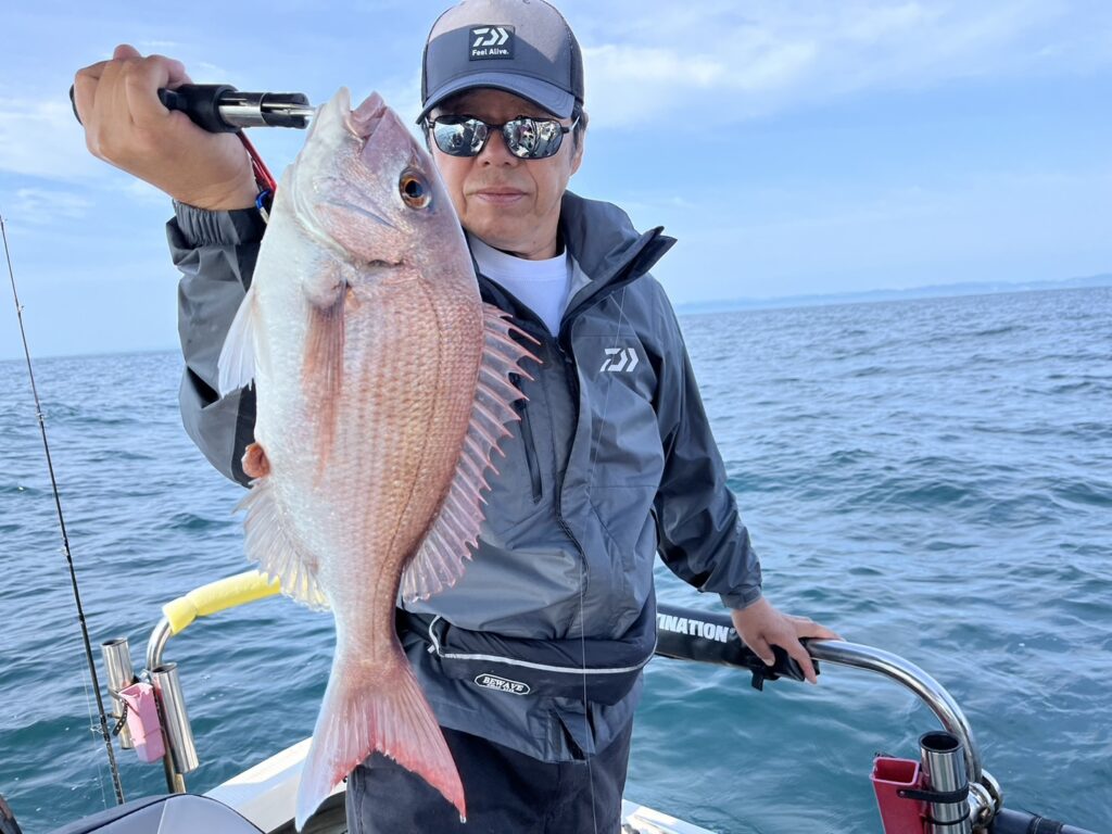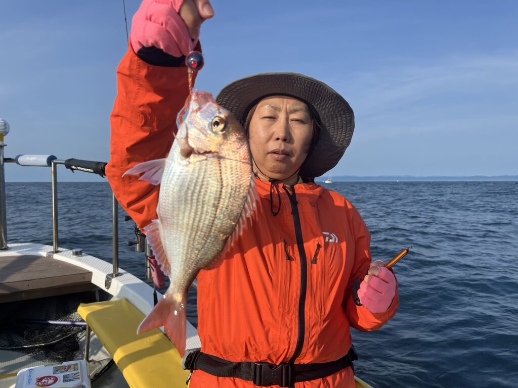 その後ポイントを変えてサバの少ないエリアに移動するも真鯛の数はそれ程増やせず、6枚で終了‥‥。