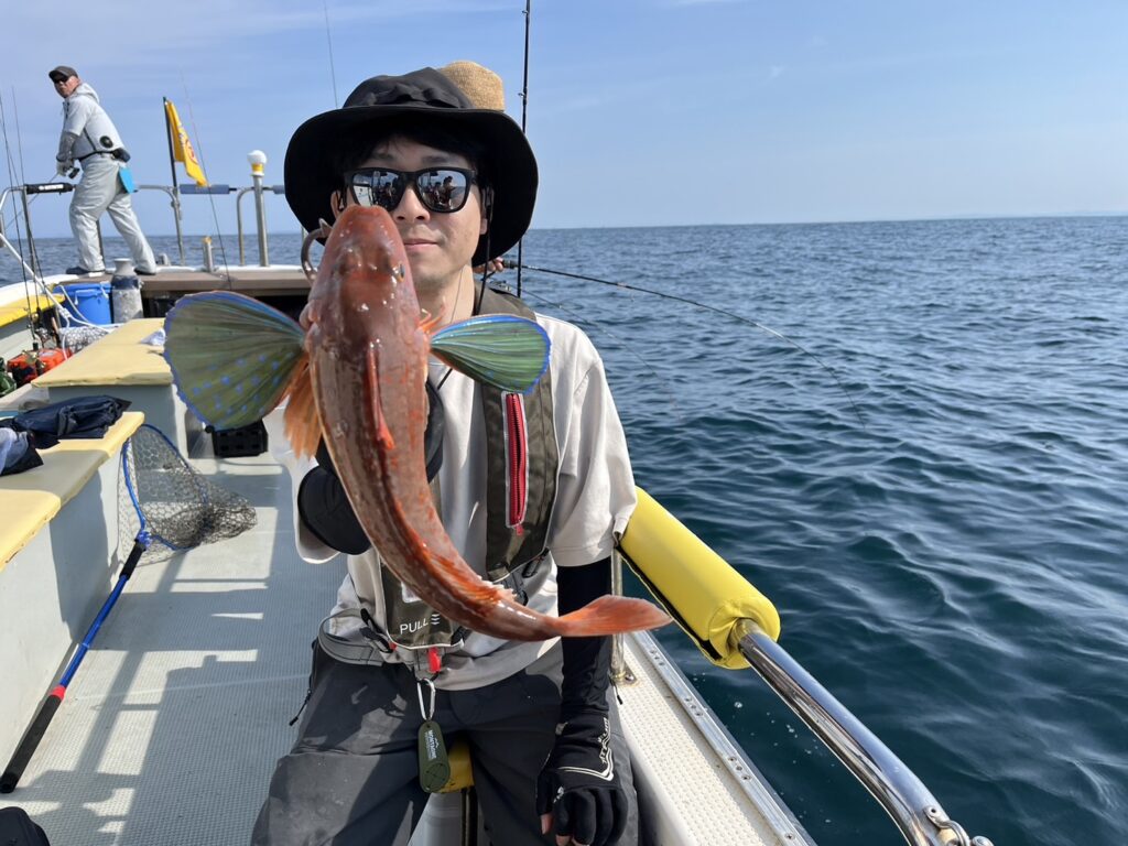 本日の釣果は、真鯛、ハナダイ、ホウボウ、カナガシラ、ギガアジ、イナダ、マサバ、ゴマサバ、メジ、アイナメ、ヒラメ、ミズガレイ、トラフグ、マフグ‥‥14目。