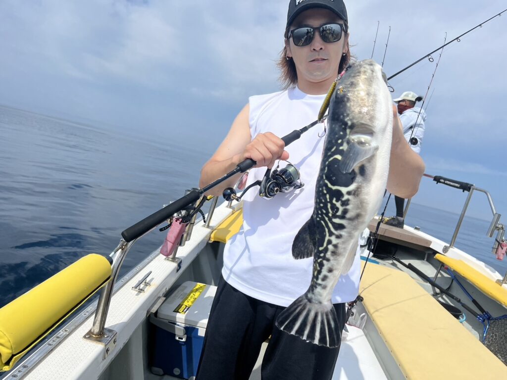 本日は釣果は、真鯛、ハナダイ、ホウボウ、カナガシラ、ワラサ、ギガアジ、マサバ、ヒラメ、ミズガレイ、トラフグ、ショウサイフグ‥‥11目。