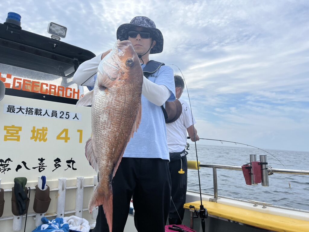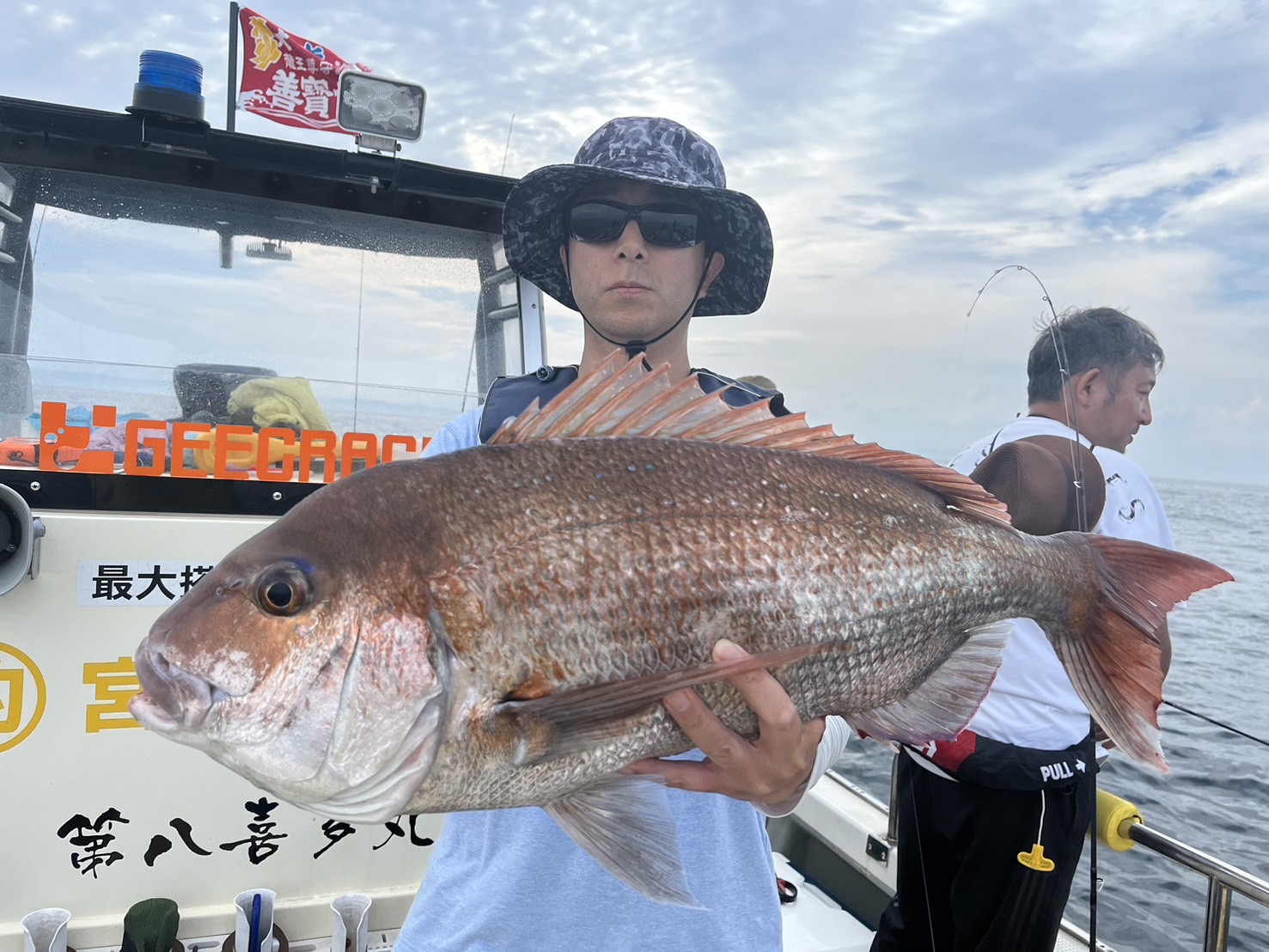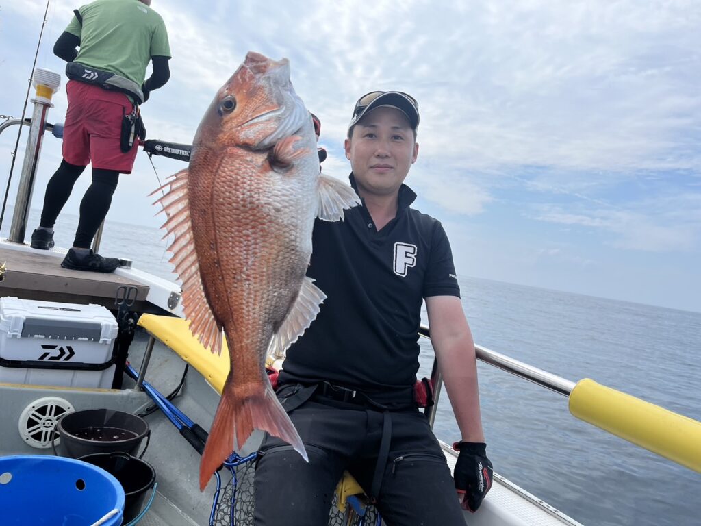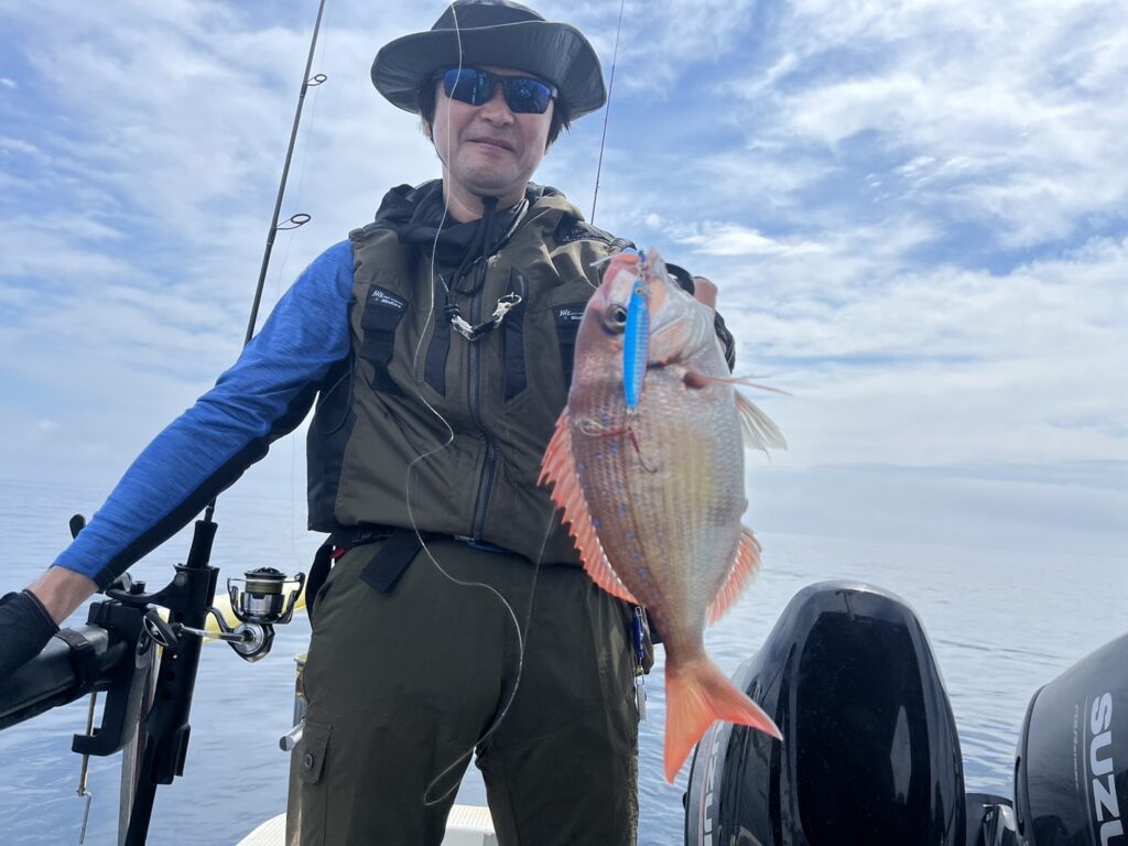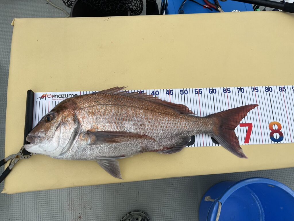 午後になり大きくエリアチェンジして何とか本命真鯛をキャッチすると、終了まで76cmを筆頭に5枚キャッチ!