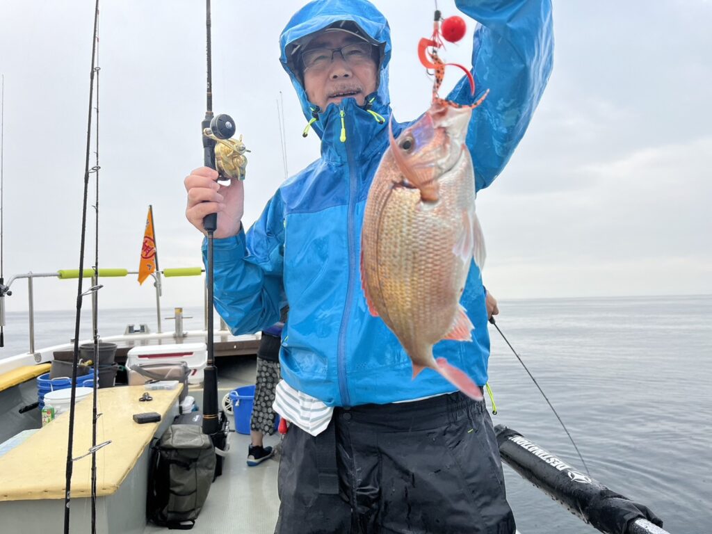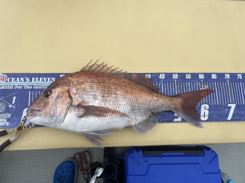 そんな中、本命真鯛は64cmを筆頭に6枚キャッチ!