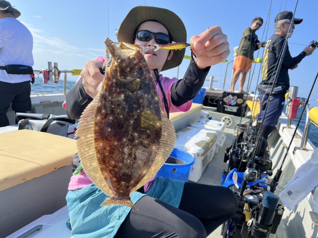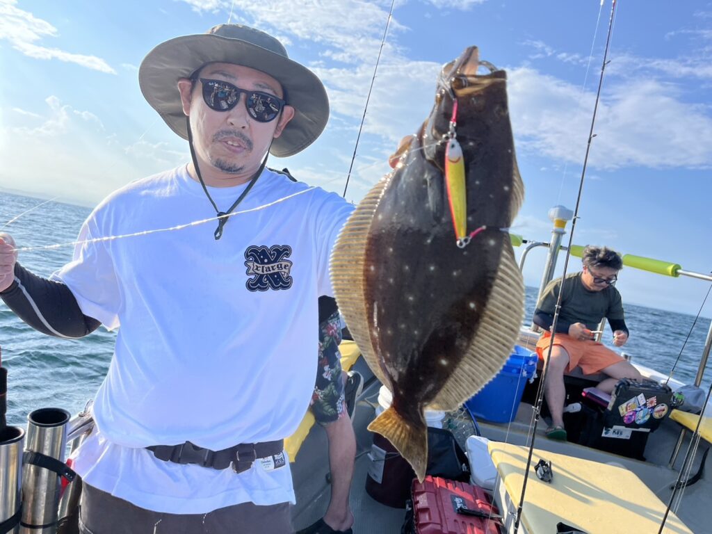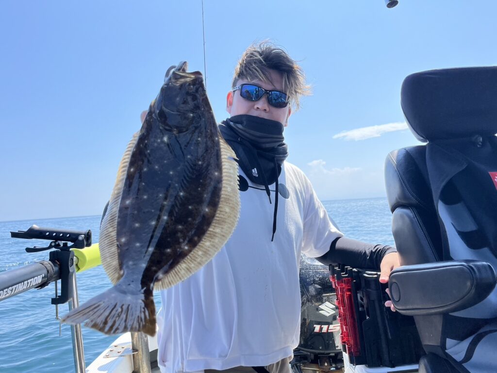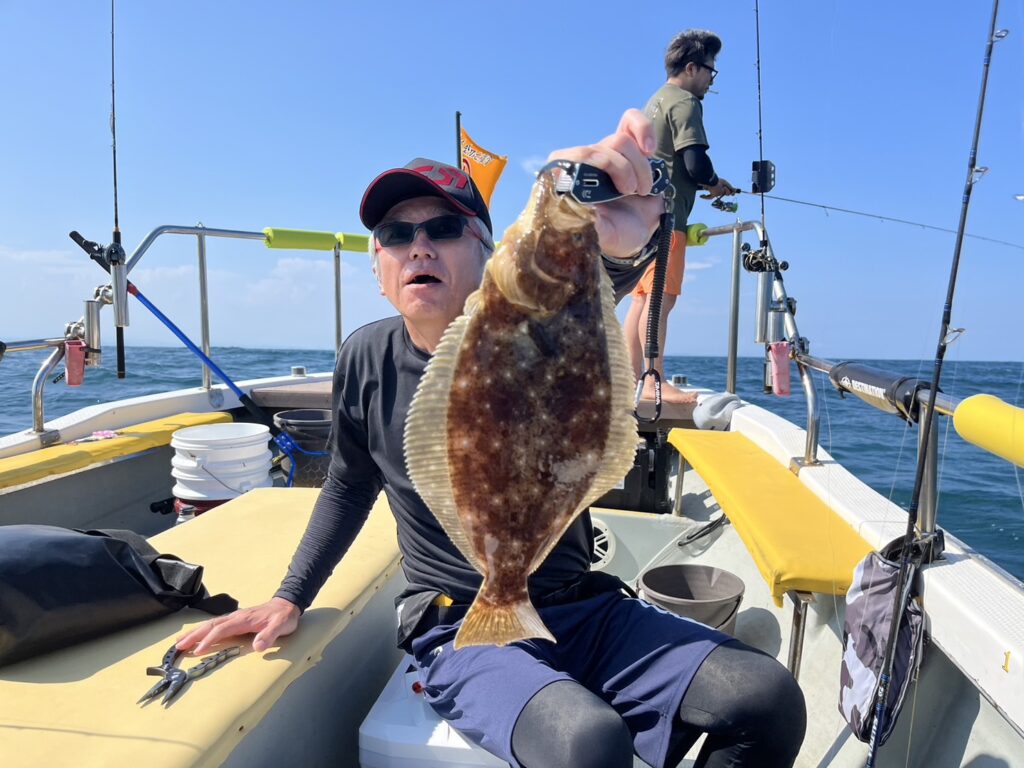 開始早々いきなり本命真鯛をキャッチすると、今日はヒラメ祭り!