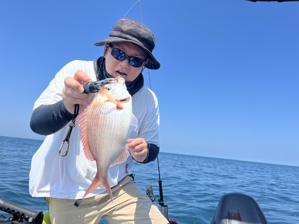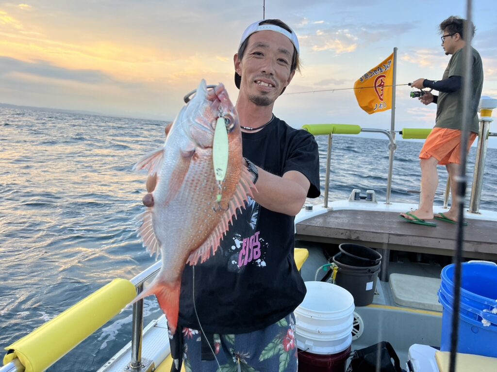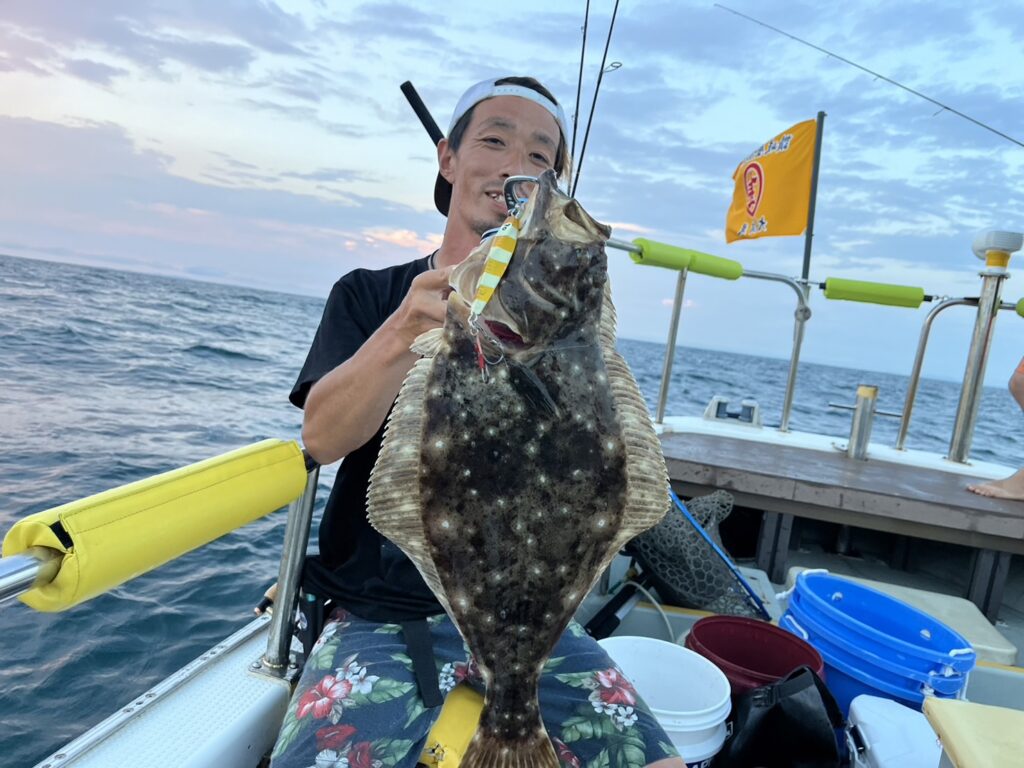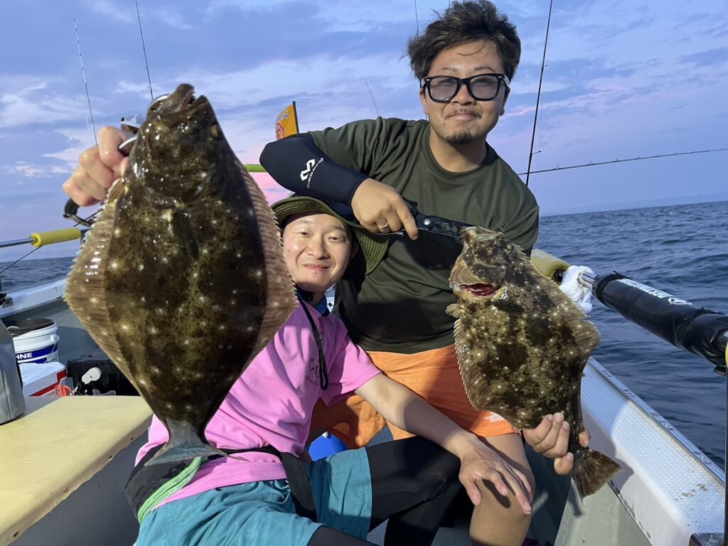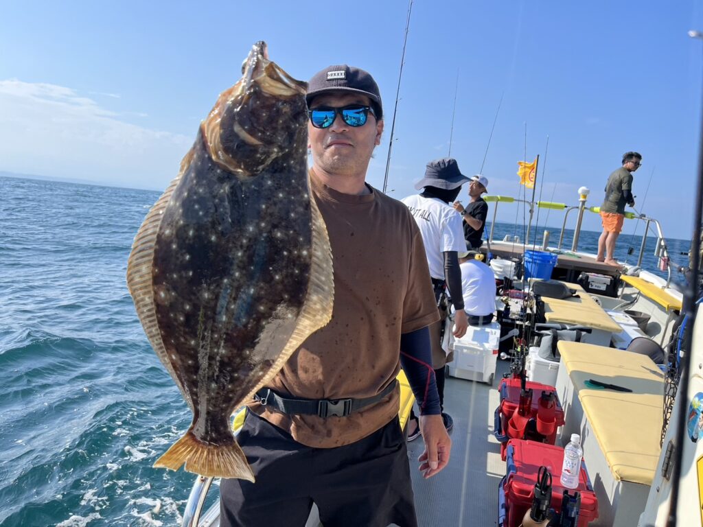 開始早々いきなり本命真鯛をキャッチすると、今日はヒラメ祭り!