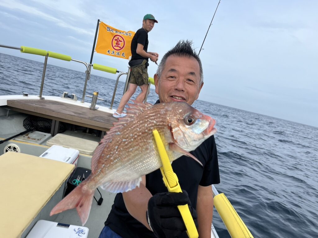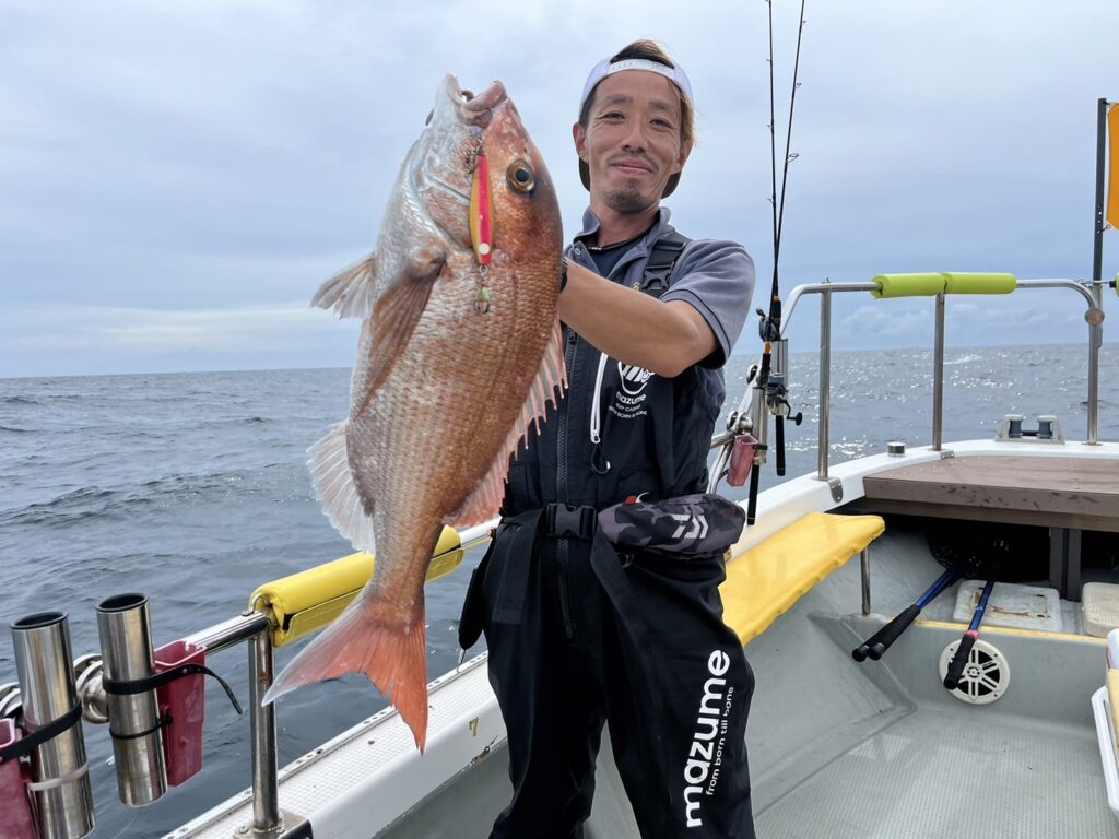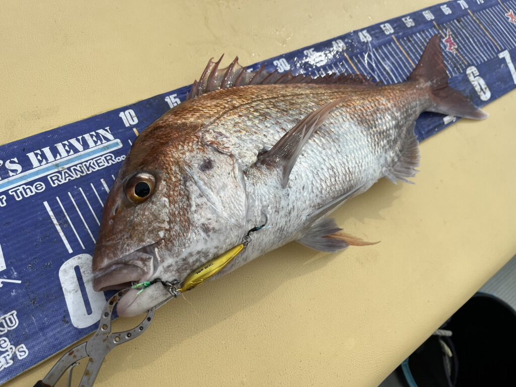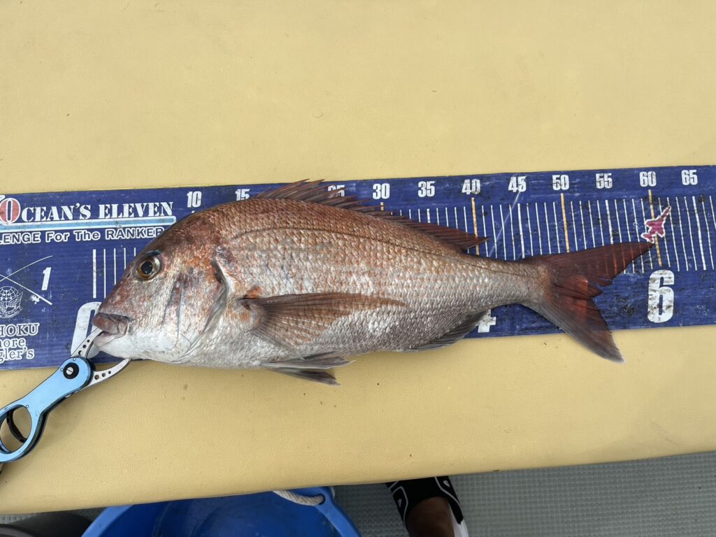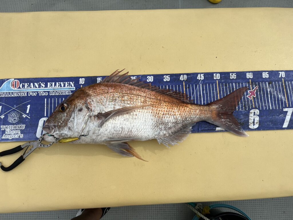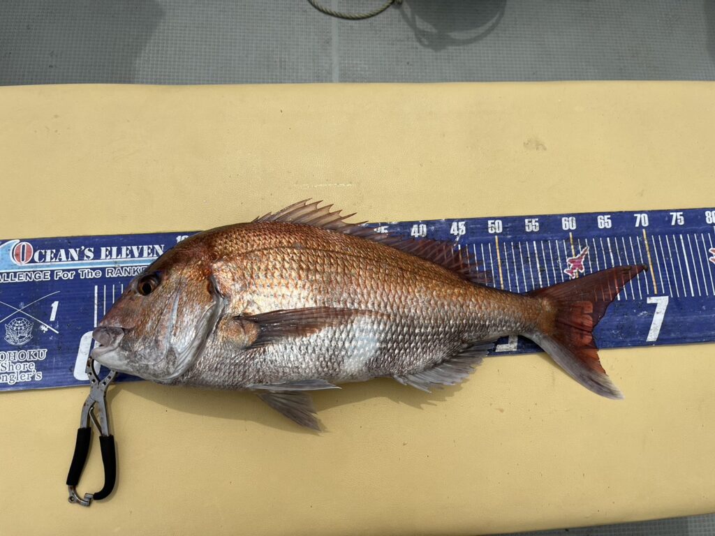 次のポイントに入り直ぐに本命真鯛をキャッチすると、その後はコンスタントに釣れ続け、真鯛は70cmを筆頭に60cmオーバーが4枚!