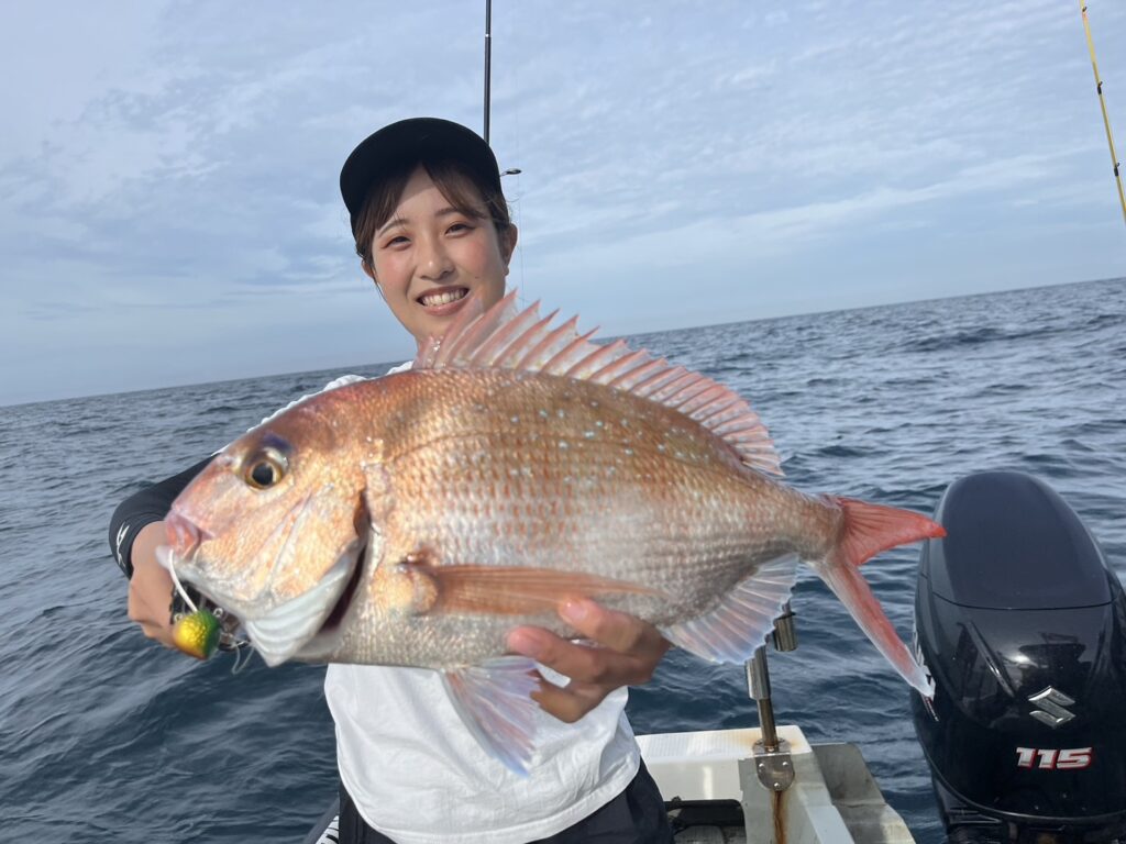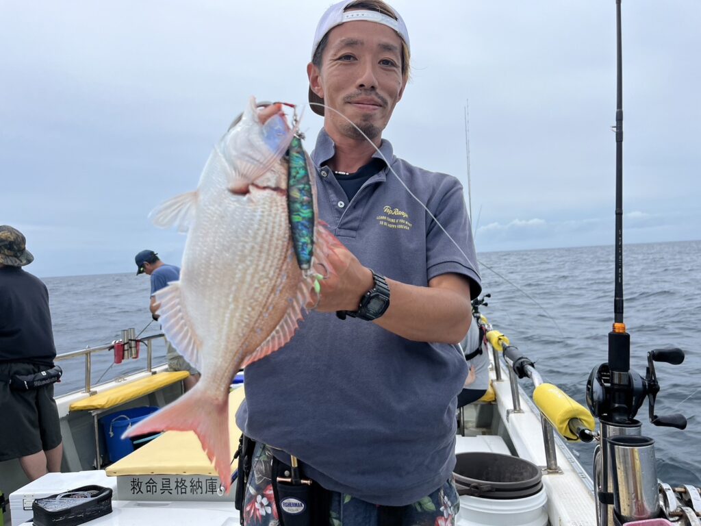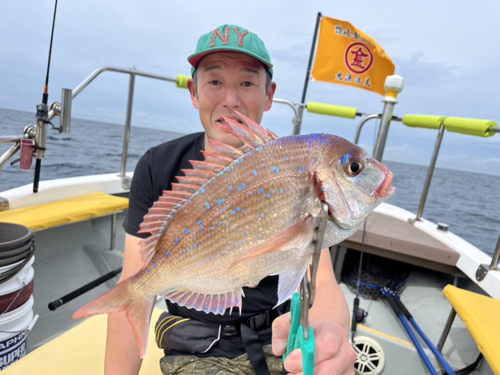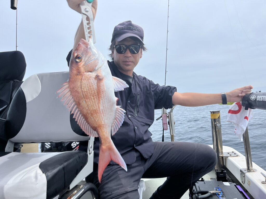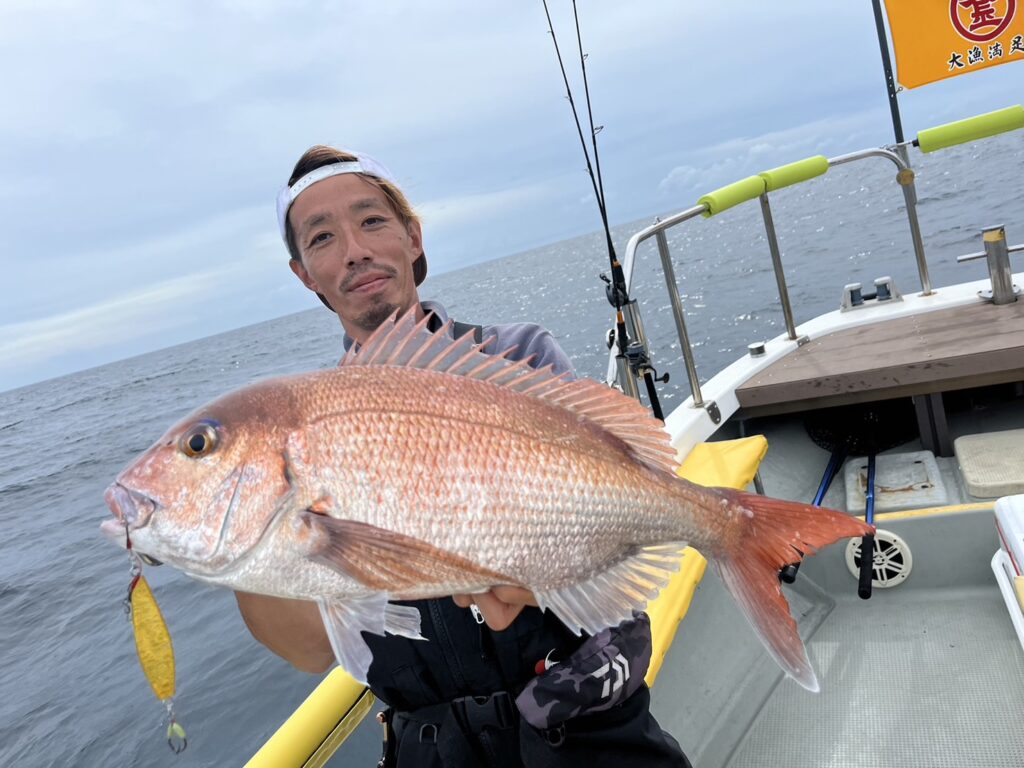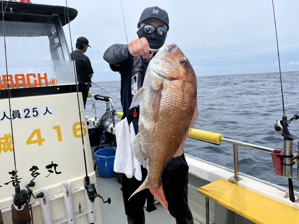 次のポイントに入り直ぐに本命真鯛をキャッチすると、その後はコンスタントに釣れ続け、真鯛は70cmを筆頭に60cmオーバーが4枚!