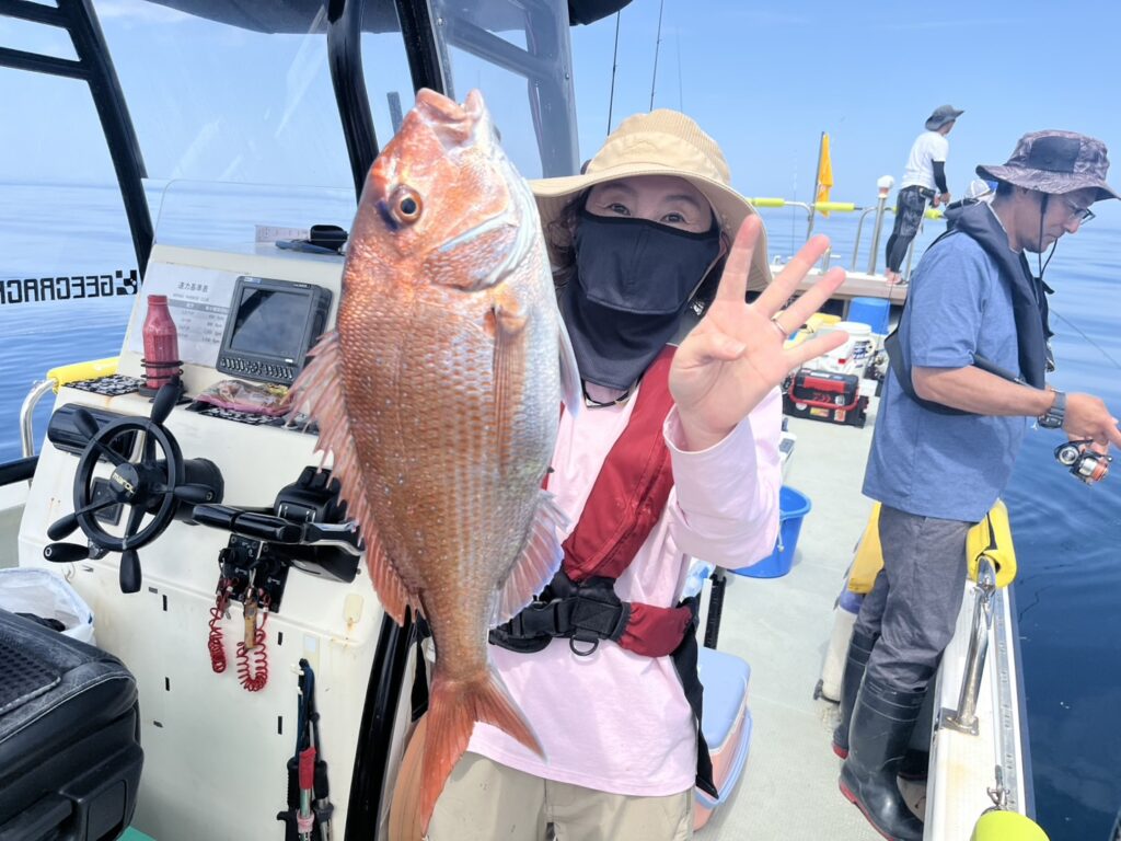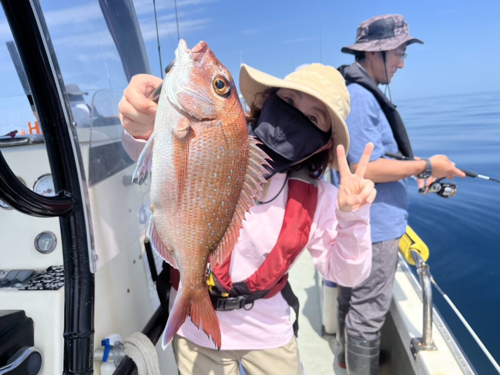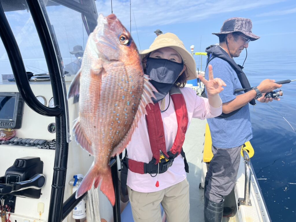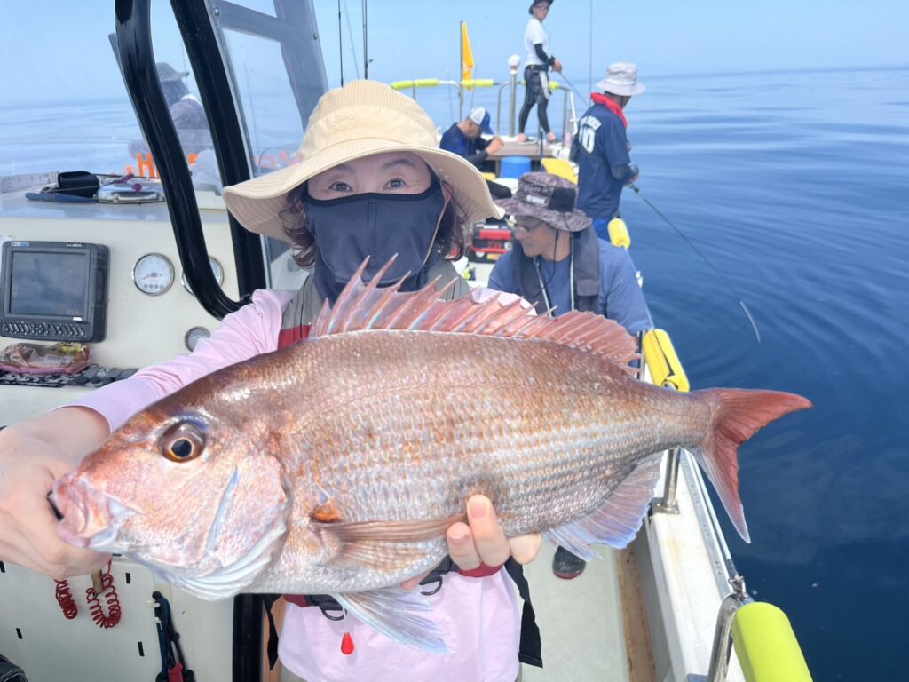 そんな中早い段階で本命真鯛をキャッチ!