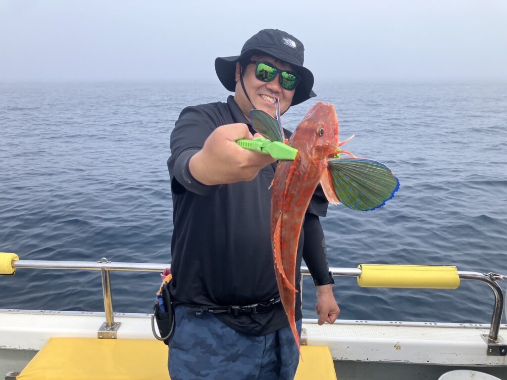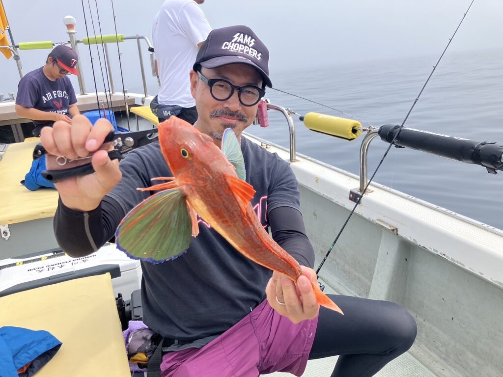 本日の釣果は、真鯛、ハナダイ、ホウボウ、カナガシラ、ミズガレイ、マサバ、ゴマサバ、ゴマフグ、メジ‥‥9目。