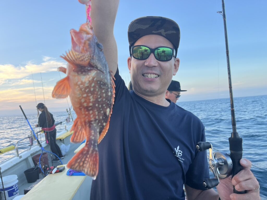本日の釣果は、真鯛、ハナダイ、ホウボウ、カナガシラ、太刀魚、ウッカリカサゴ、ヒラメ、ミズガレイ、イナワラ、ギガアジ、マサバ、ゴマサバ、トラフグ、ショウサイフグ、イシナギ、シイラ‥‥16目。