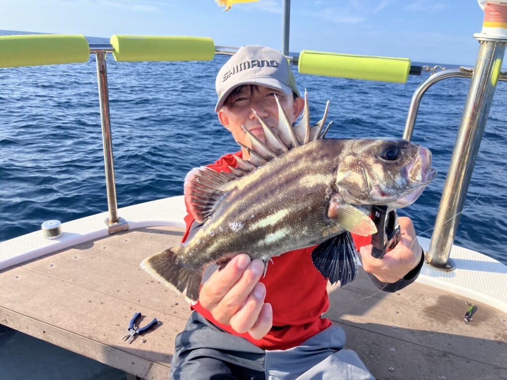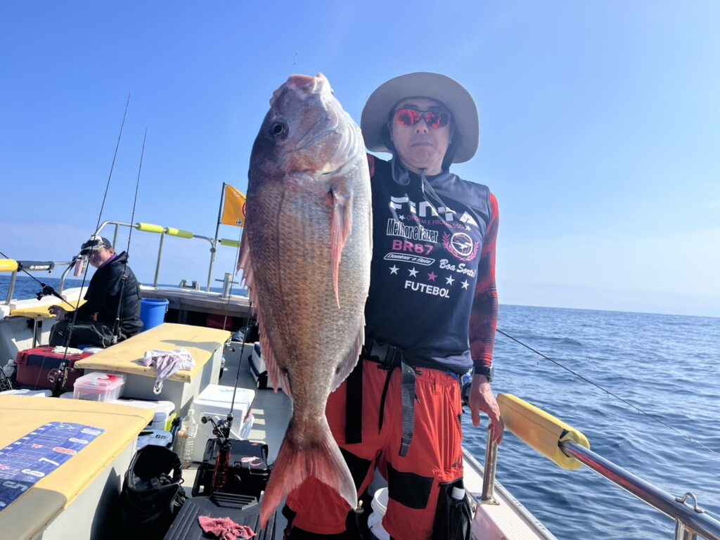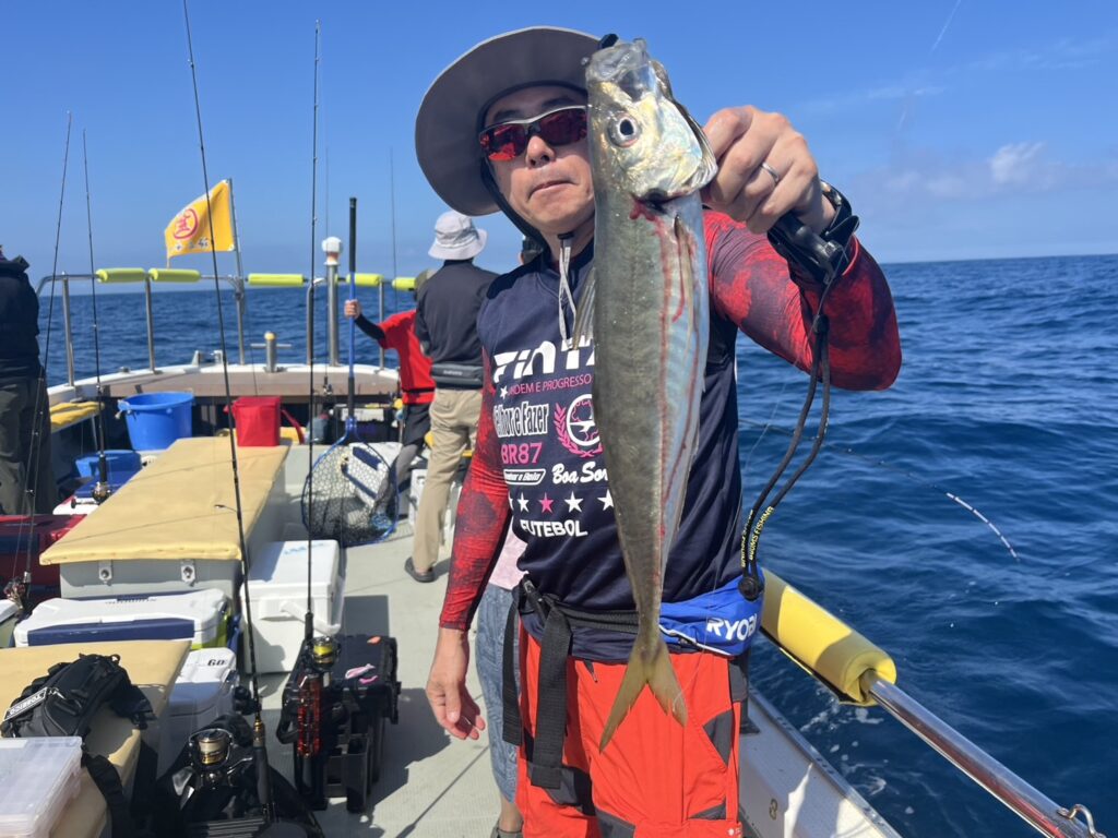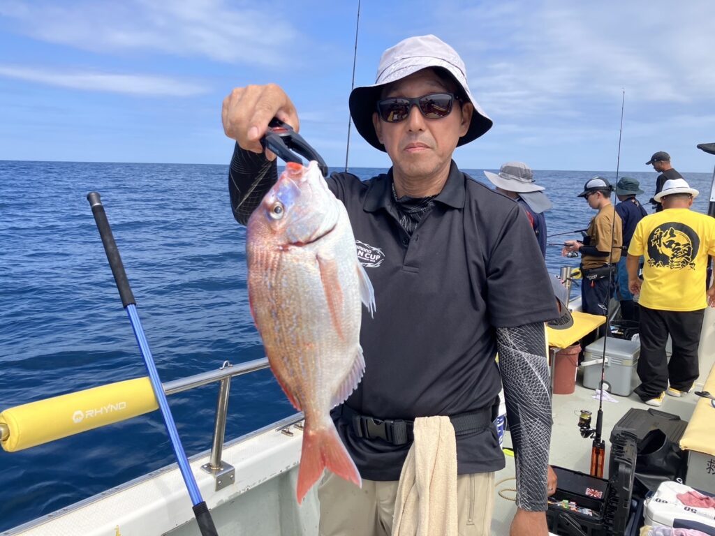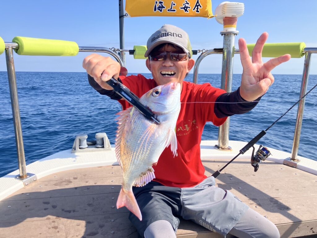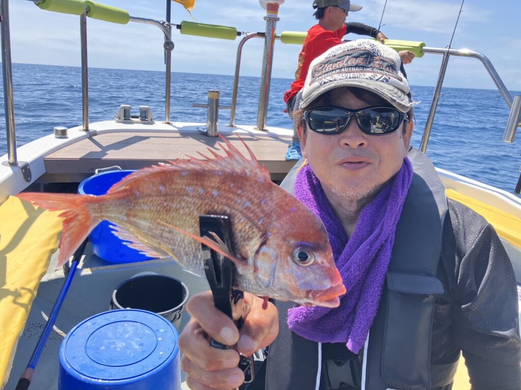 本日の釣果は、真鯛、ハナダイ、ホウボウ、カナガシラ、ギガアジ、太刀魚、沖メバル、ウッカリカサゴ、アカタチ、イシナギ、ワラサ、ショゴ、マサバ、ゴマサバ、ミズガレイ、タマガンゾウビラメ、シイラ‥‥17目。
