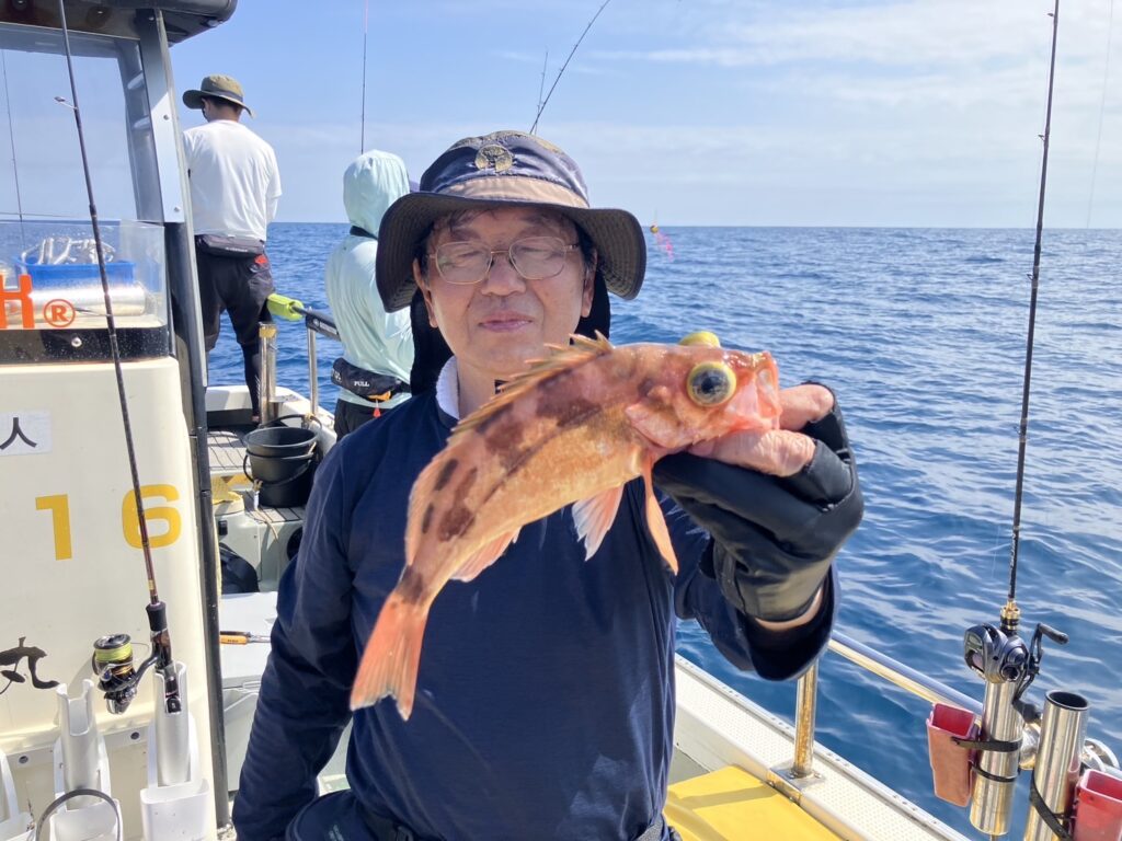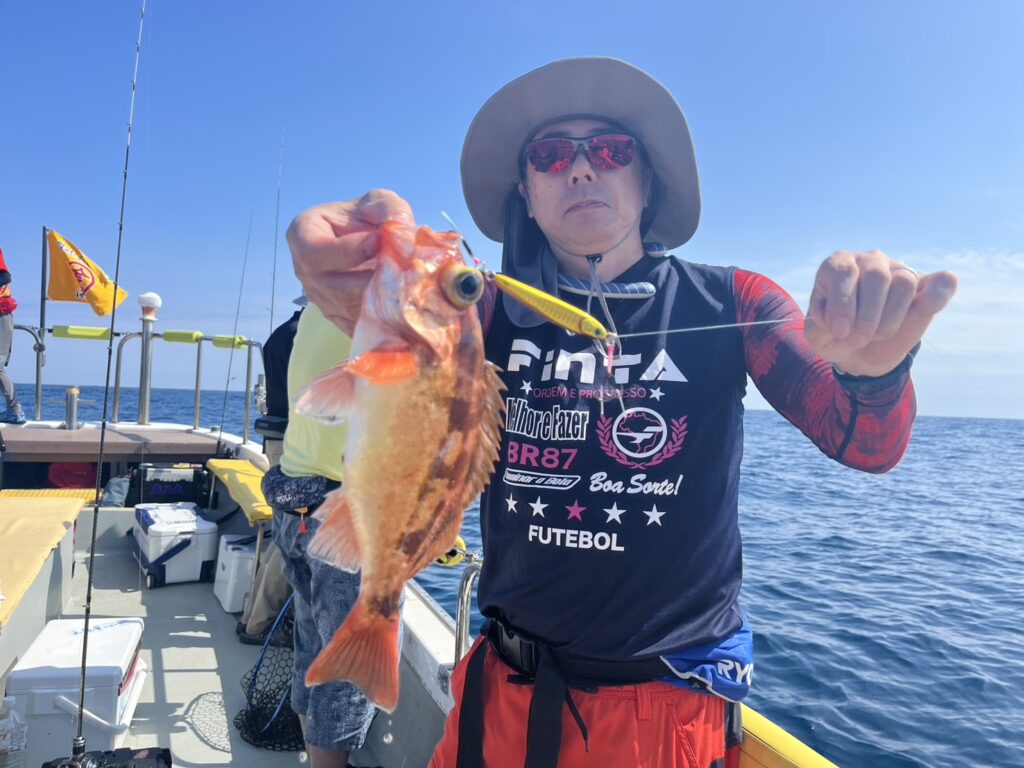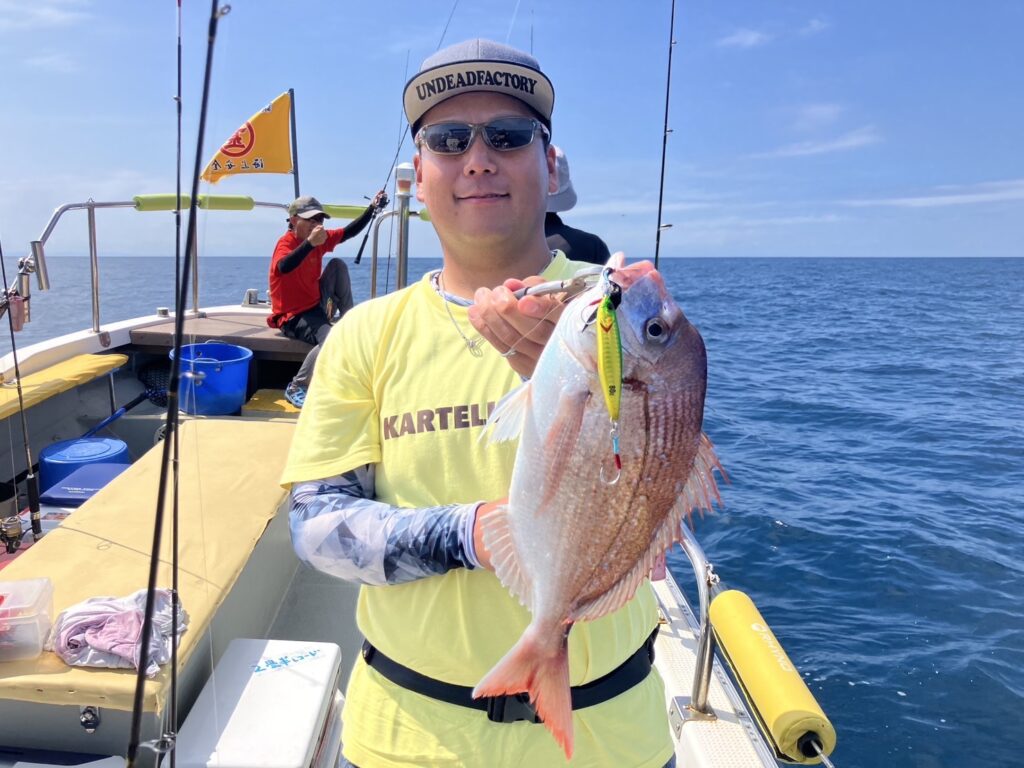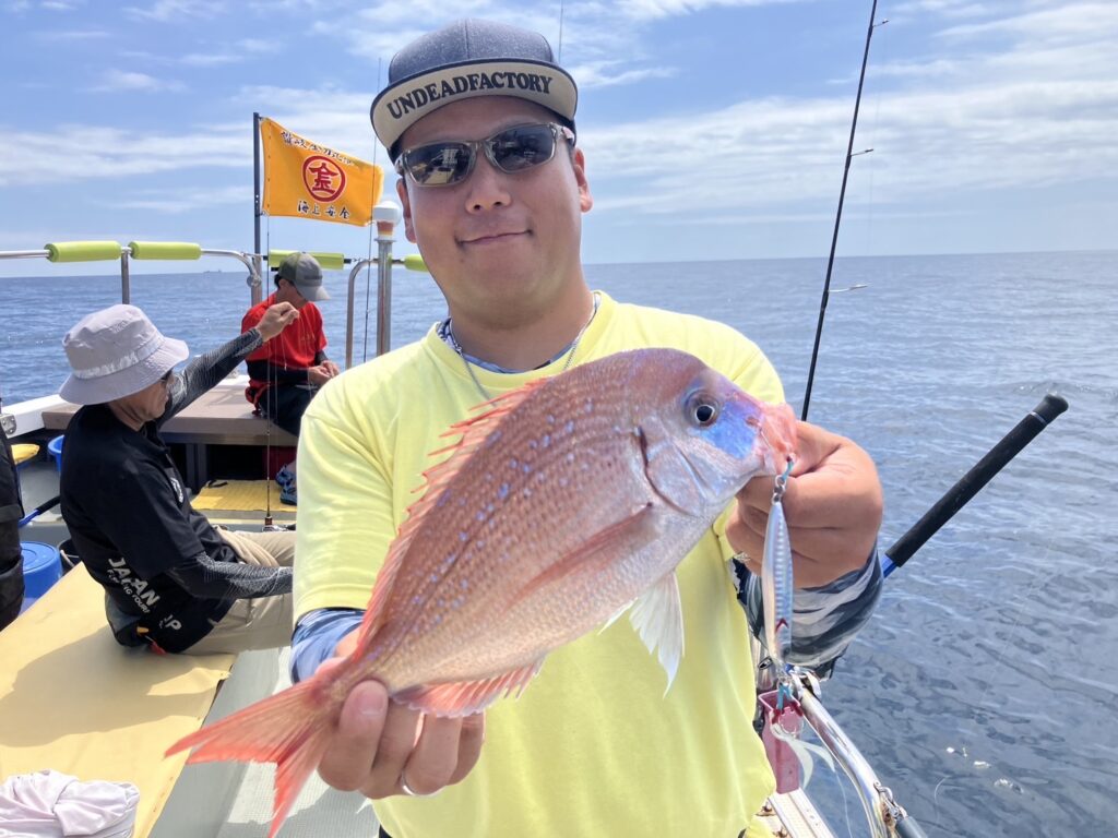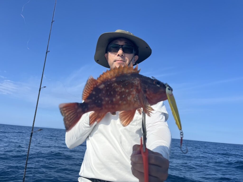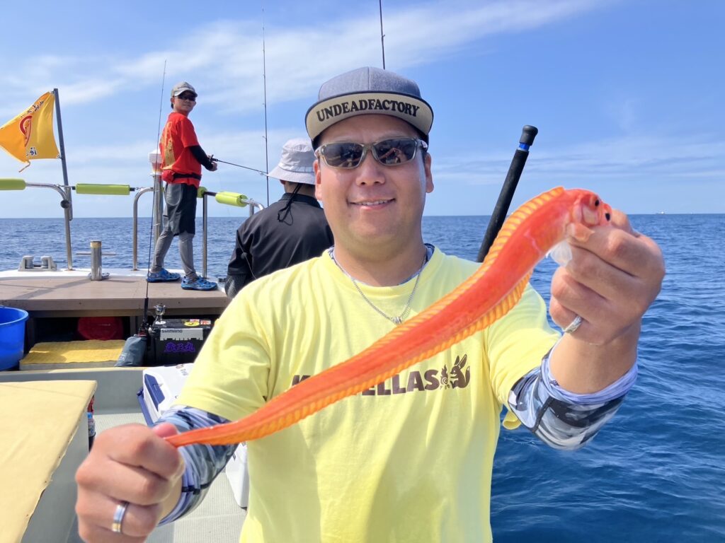 本日の釣果は、真鯛、ハナダイ、ホウボウ、カナガシラ、ギガアジ、太刀魚、沖メバル、ウッカリカサゴ、アカタチ、イシナギ、ワラサ、ショゴ、マサバ、ゴマサバ、ミズガレイ、タマガンゾウビラメ、シイラ‥‥17目。