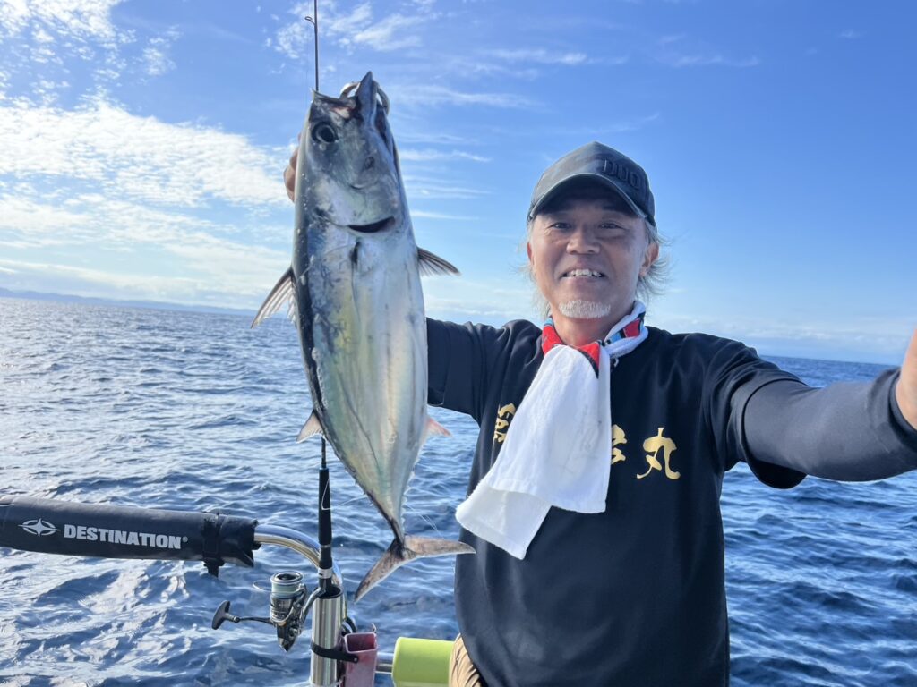 本日の釣果は、真鯛、ハナダイ、ホウボウ、カナガシラ、本ガツオ、ギガアジ、ワラサ、カンパチ、マサバ、ゴマサバ、ウッカリカサゴ‥‥11目。