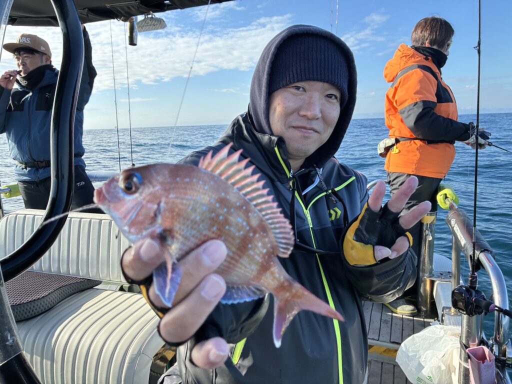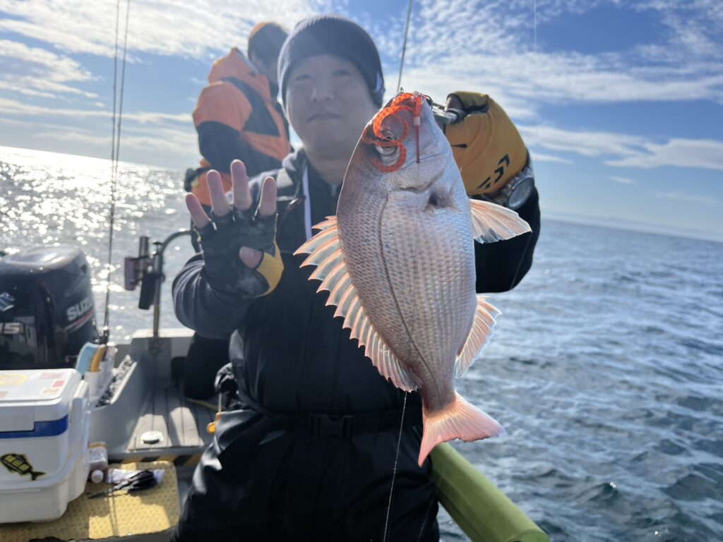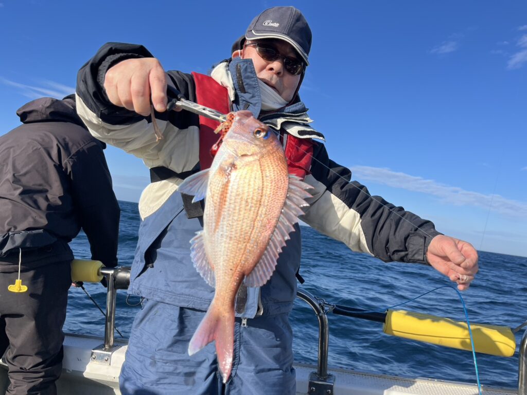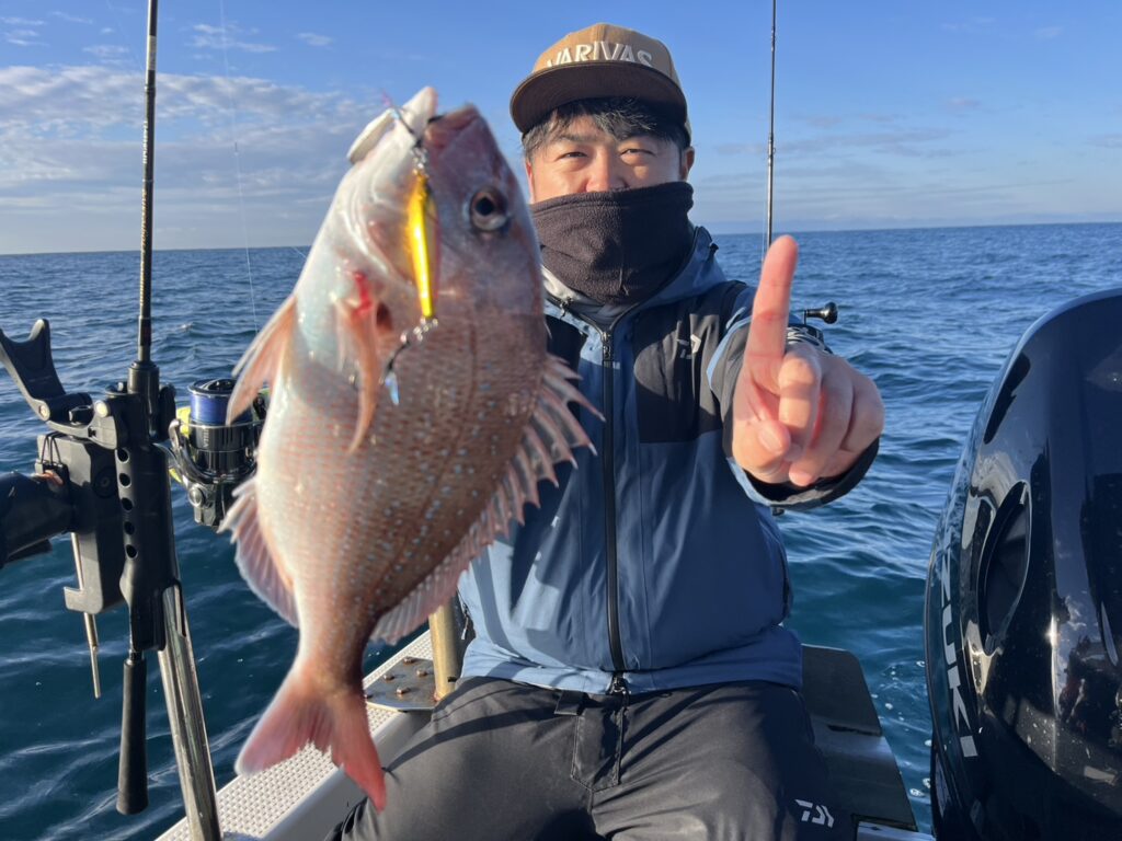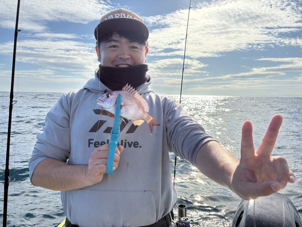 前回良かったエリアからスタートすると海水温は1℃ぐらい下がったもののホウボウを直ぐにキャッチすると本命真鯛もキャッチ!