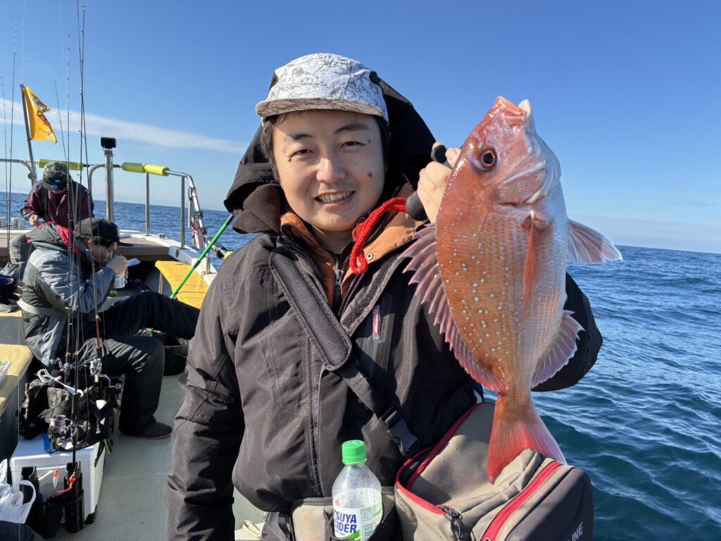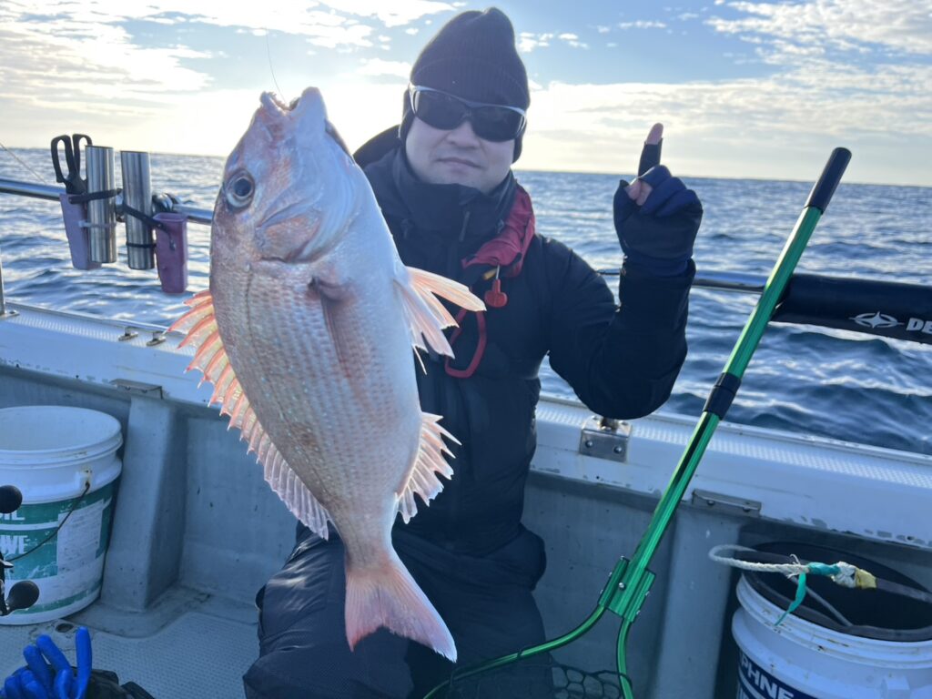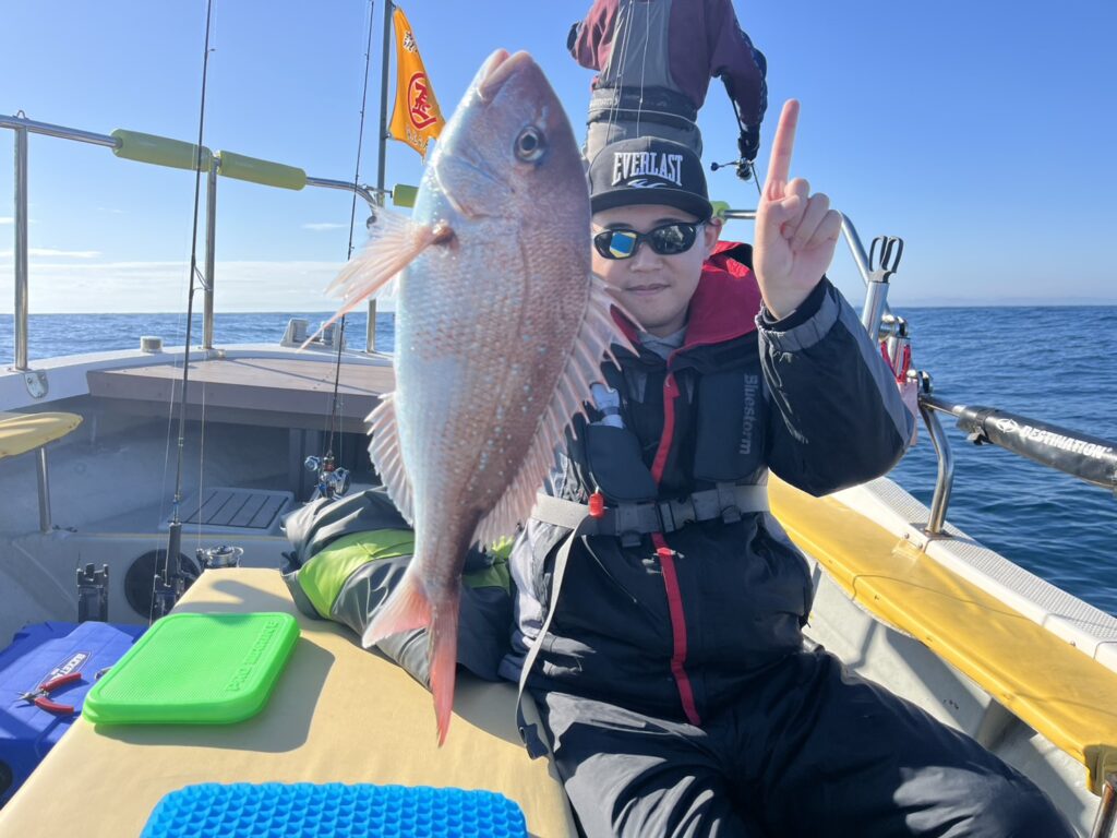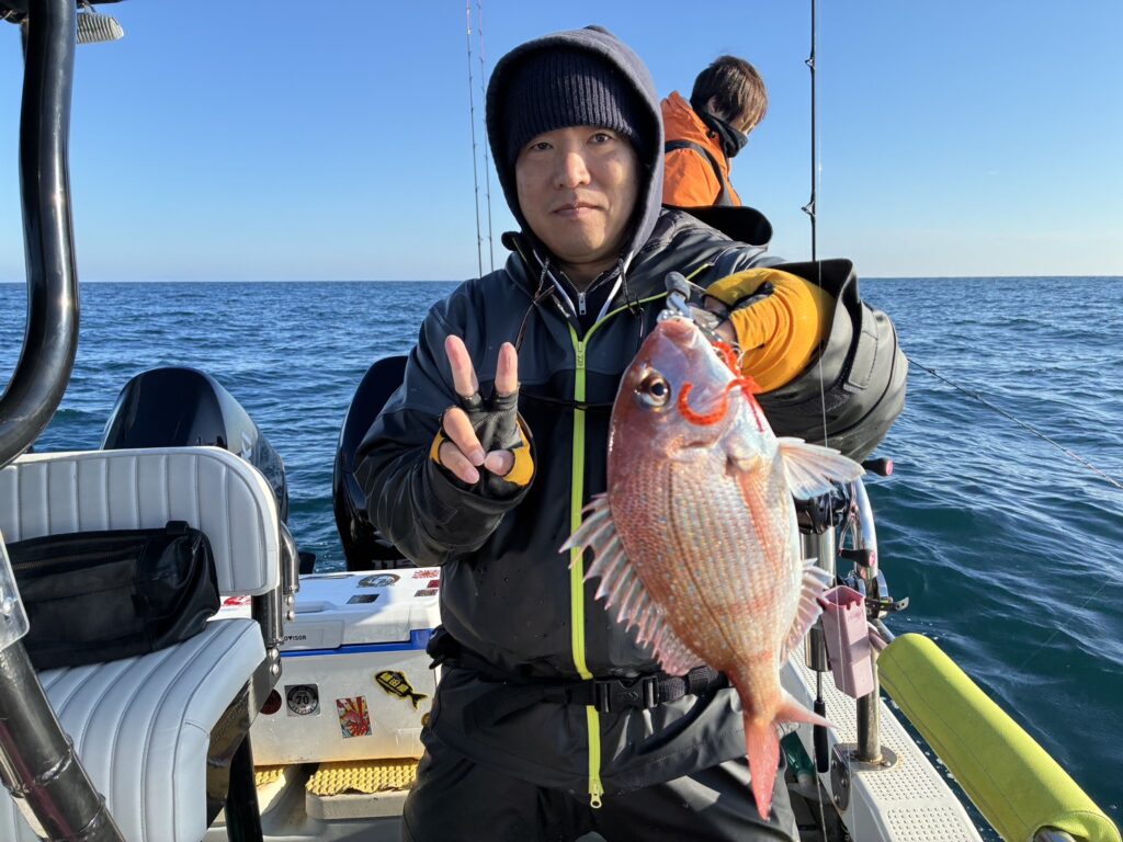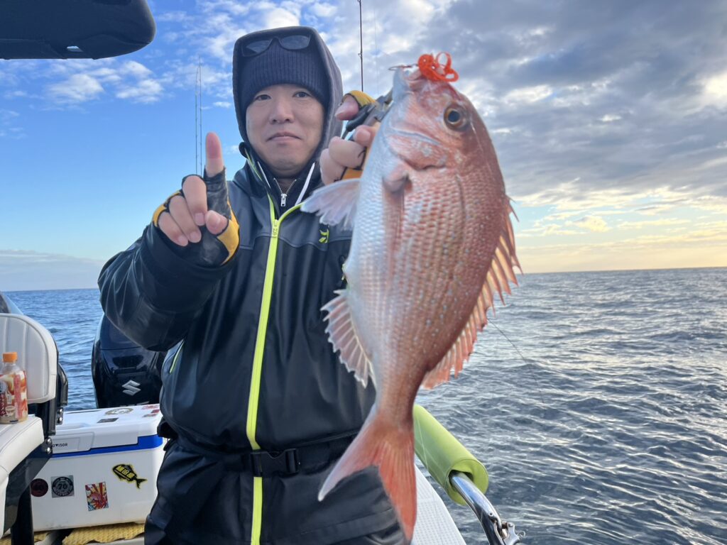 前回良かったエリアからスタートすると海水温は1℃ぐらい下がったもののホウボウを直ぐにキャッチすると本命真鯛もキャッチ!