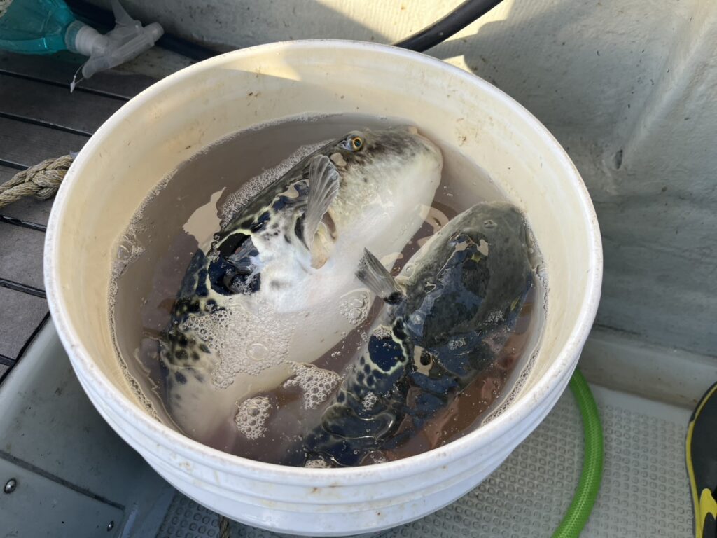 本日の釣果は、真鯛、ハナダイ、ホウボウ、カナガシラ、ワラサ、マサバ、ゴマサバ、ヒラメ、ミズガレイ、ウッカリカサゴ、メバル、トラフグ、ショウサイフグ‥‥13目。