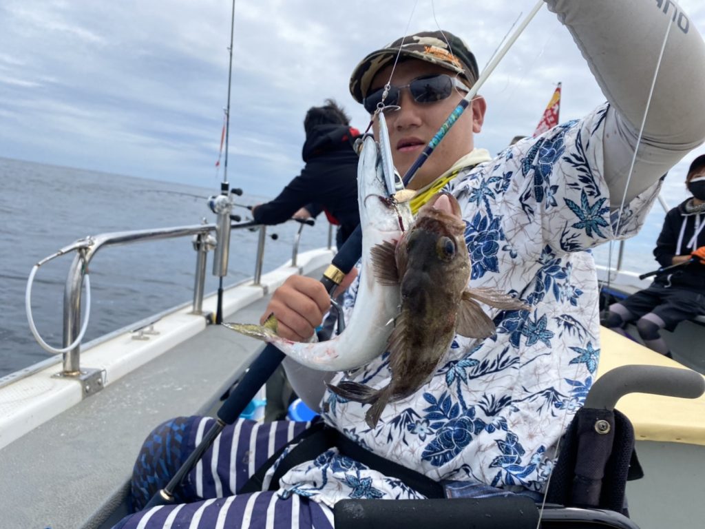 本日の釣果は、ハナダイ、ホウボウ、カナガシラ、ヒラメ、クロソイ、メバル、サバ、ミズガレイ、モウカザメ…9目!