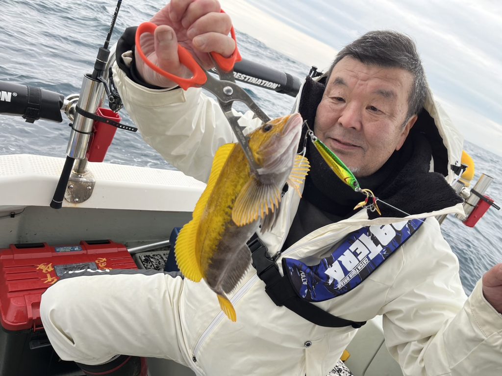 昨日までの予定では遠征真鯛狙い五目で出船する予定でしたが、朝になると予報も変わりウネリと波がある海況だったのでライトジギング五目に変更。