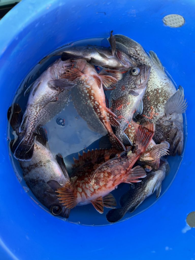 本日の釣果は、真鱈、スケソウダラ、マゾイ、カサゴ、沖メバル、メバル、アジ、カナガシラ、ミズガレイ、マサバ、リュウグウハゼ、ナマコ…12目。
