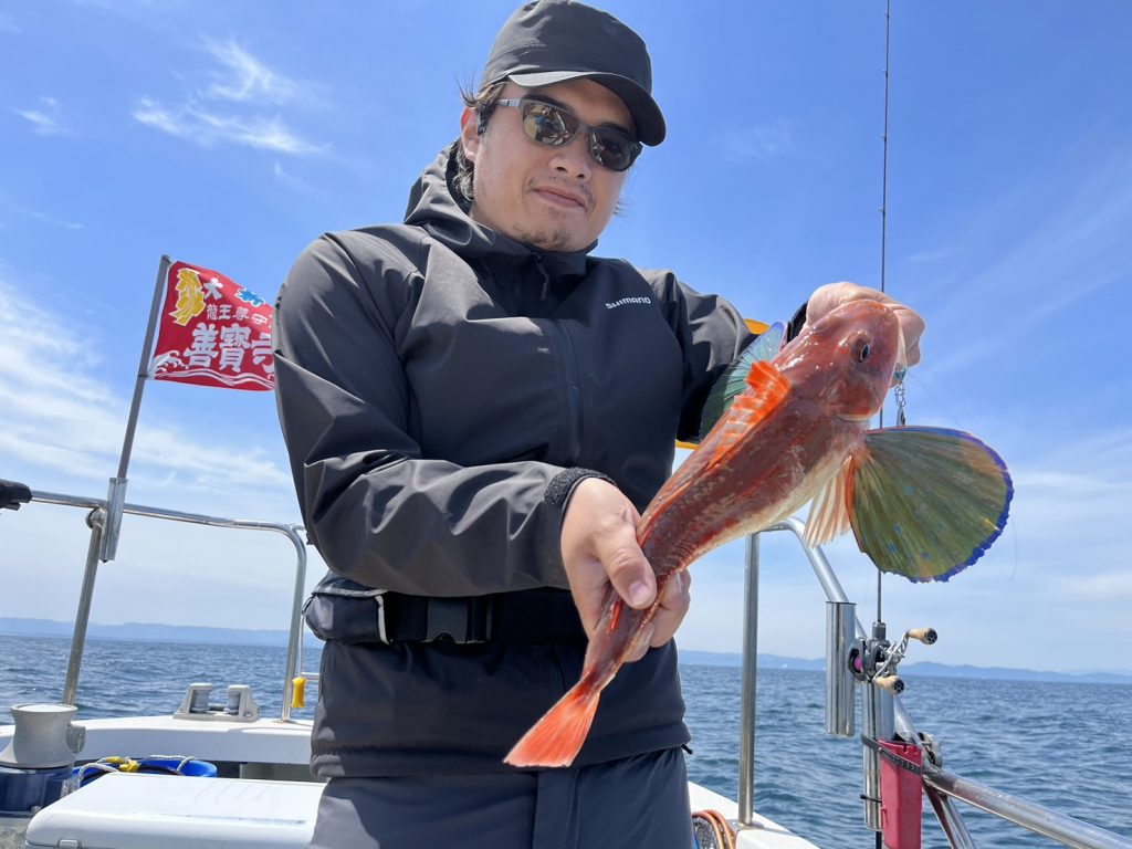 早々と真鯛狙いにシフトして前回反応の良かったエリアに行くも今日はサバすら釣れずカナガシラが少々釣れる程度の展開…。