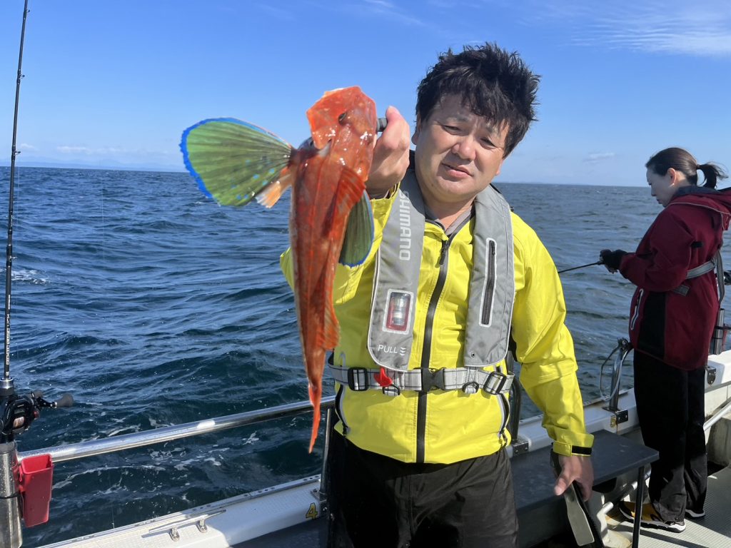 本日の釣果は、真鯛、ハナダイ、ホウボウ、カナガシラ、トラフグ、マフグ、ヒラメ…8目。