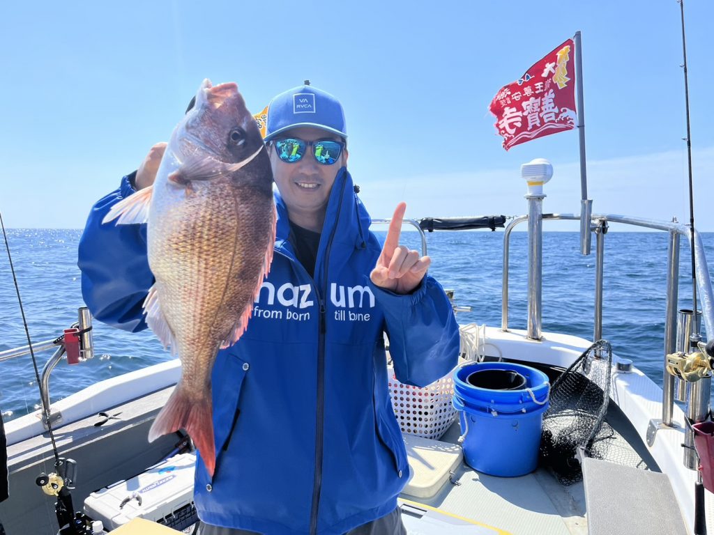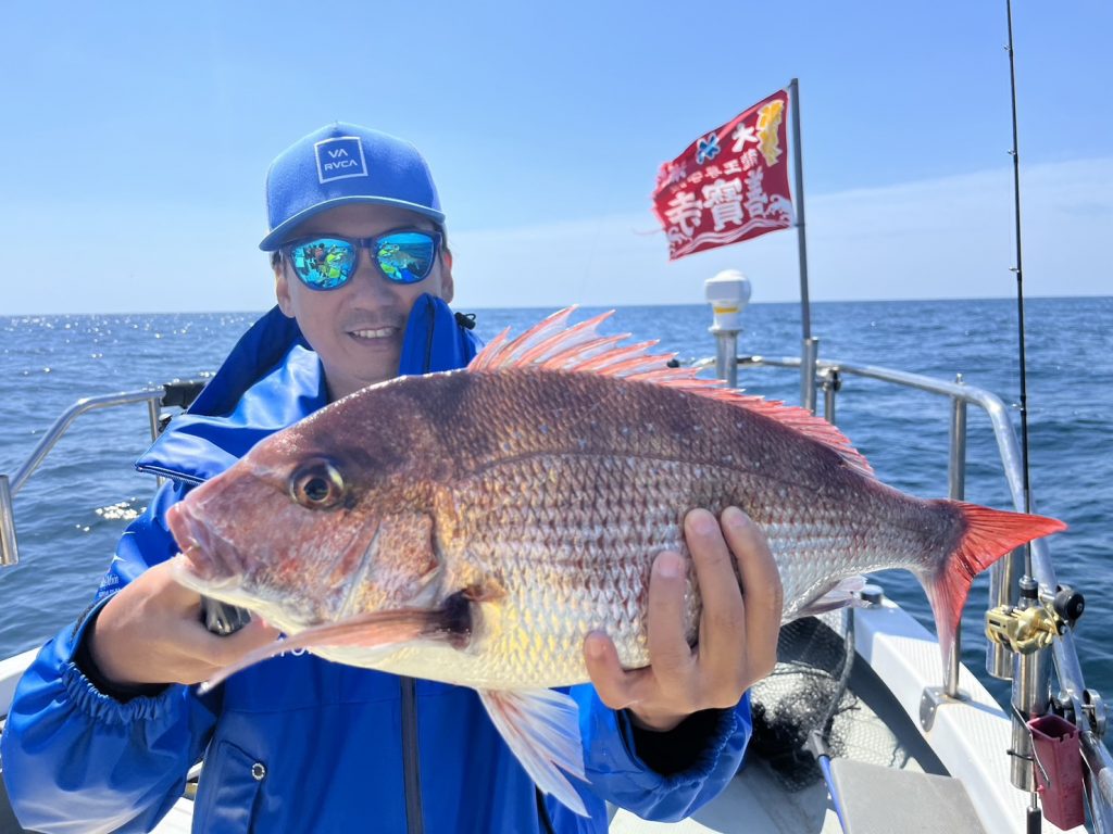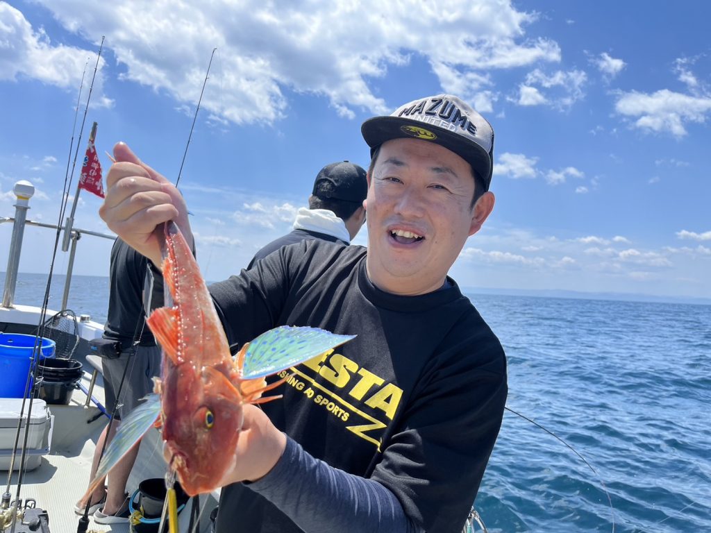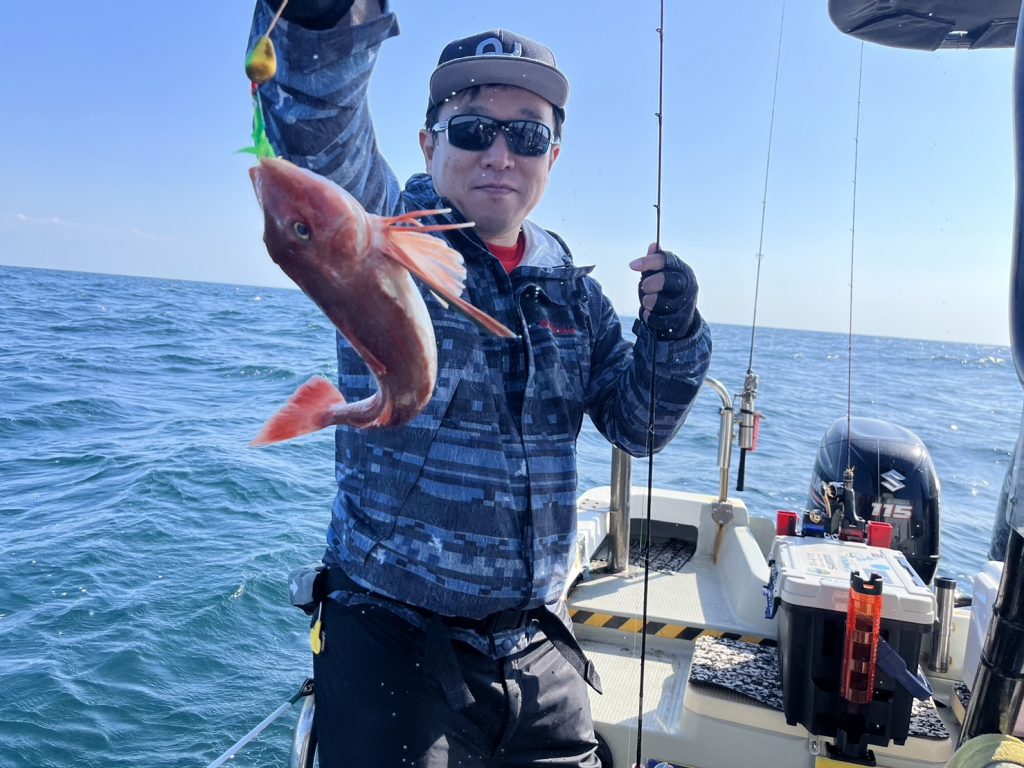 ファーストポイントに着くとカナガシラやホウボウは釣れるも本命真鯛の反応は薄く、明らかに前日とは違う展開…。