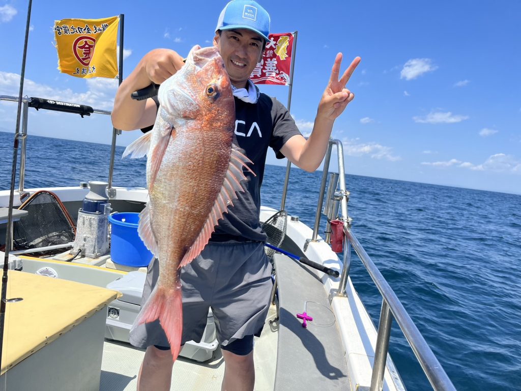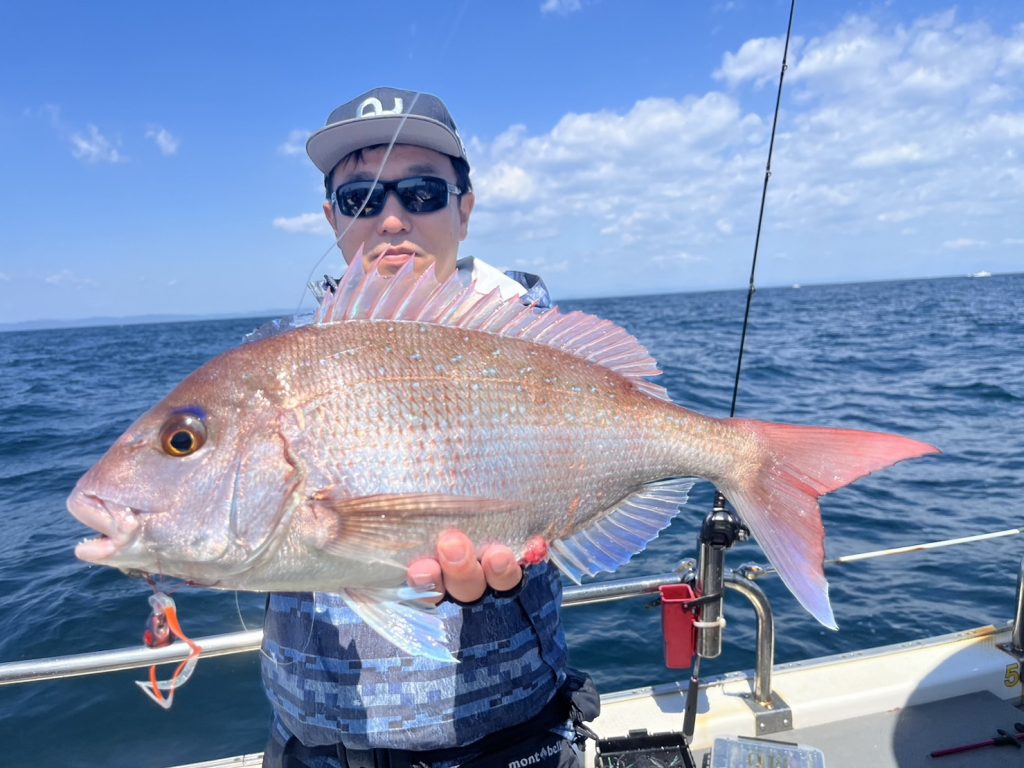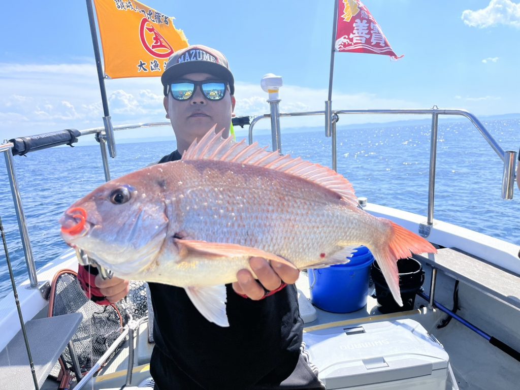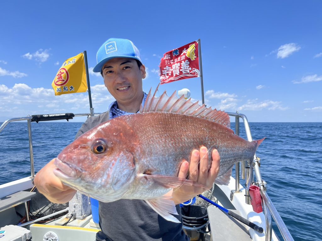 ファーストポイントに着くとカナガシラやホウボウは釣れるも本命真鯛の反応は薄く、明らかに前日とは違う展開…。