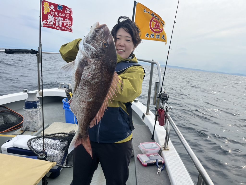 こちらの釣りガールは人生初真鯛は66cmの大鯛!おめでとうございます㊗