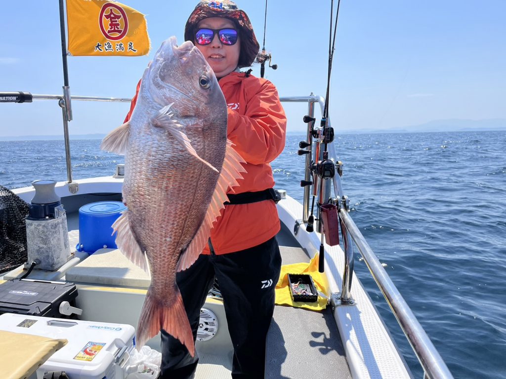 女性アングラーが前回に続き自己新記録の71cm本命真鯛をキャッチ!