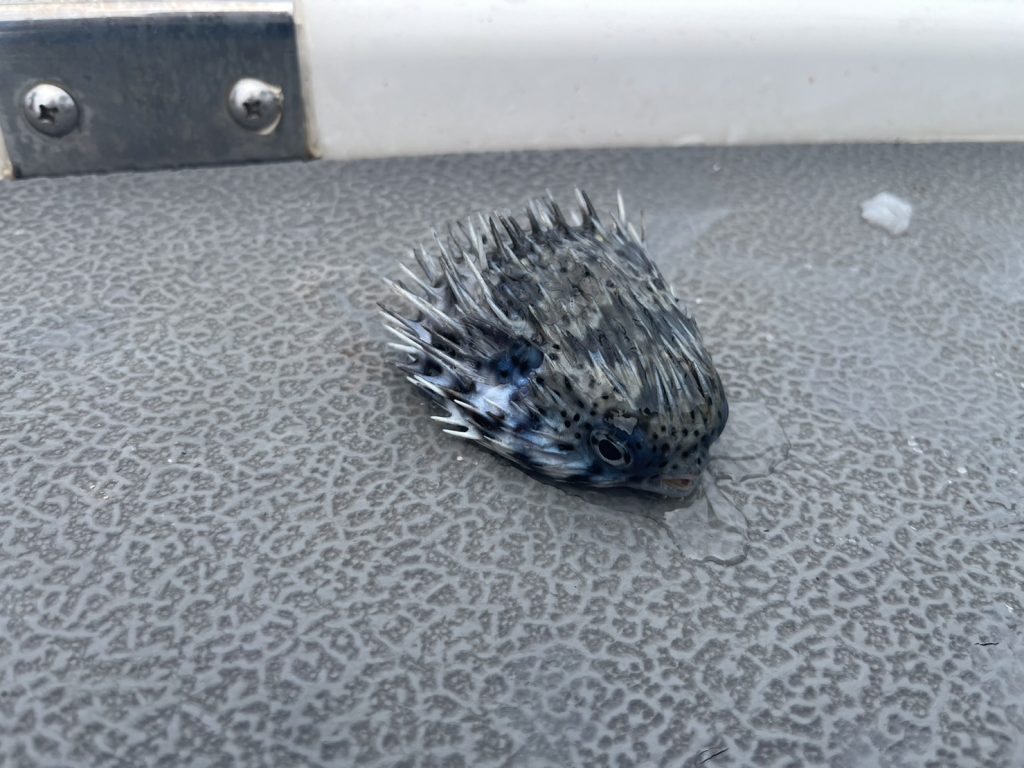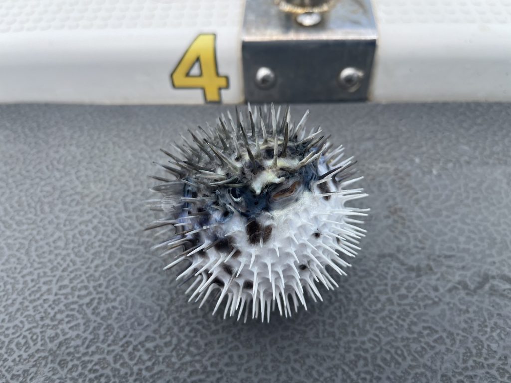 本日の釣果は、ハナダイ、ホウボウ、カナガシラ、トラフグ、ショウサイフグ、ハリセンボン、マサバ、サメ…8目。