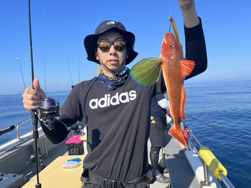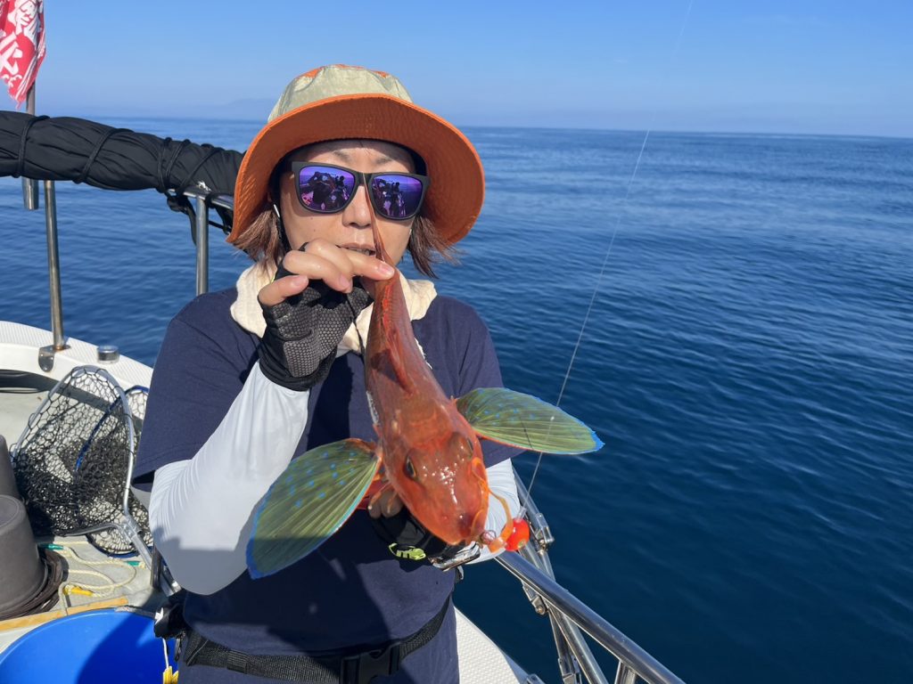 本日の釣果は、ハナダイ、ホウボウ、カナガシラ、トラフグ、ギガアジ、シイラ、マサバ、ケンサキイカ…8目。