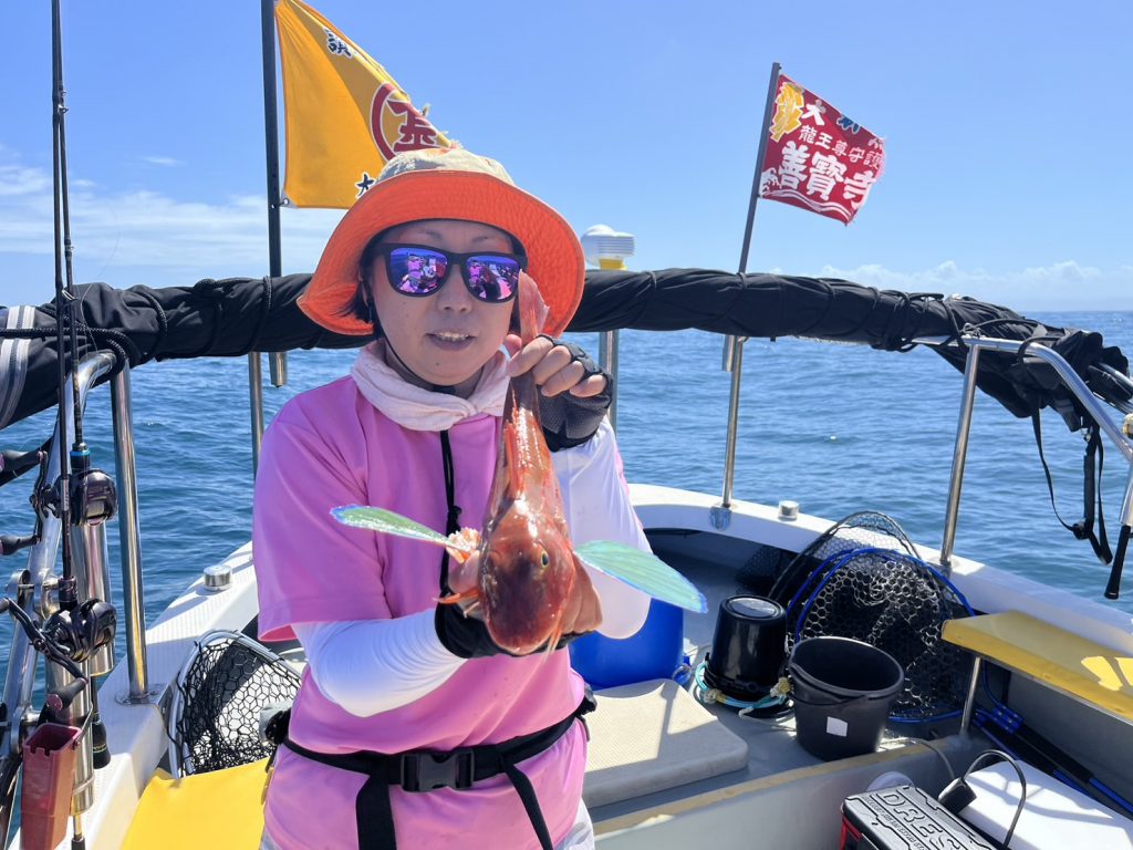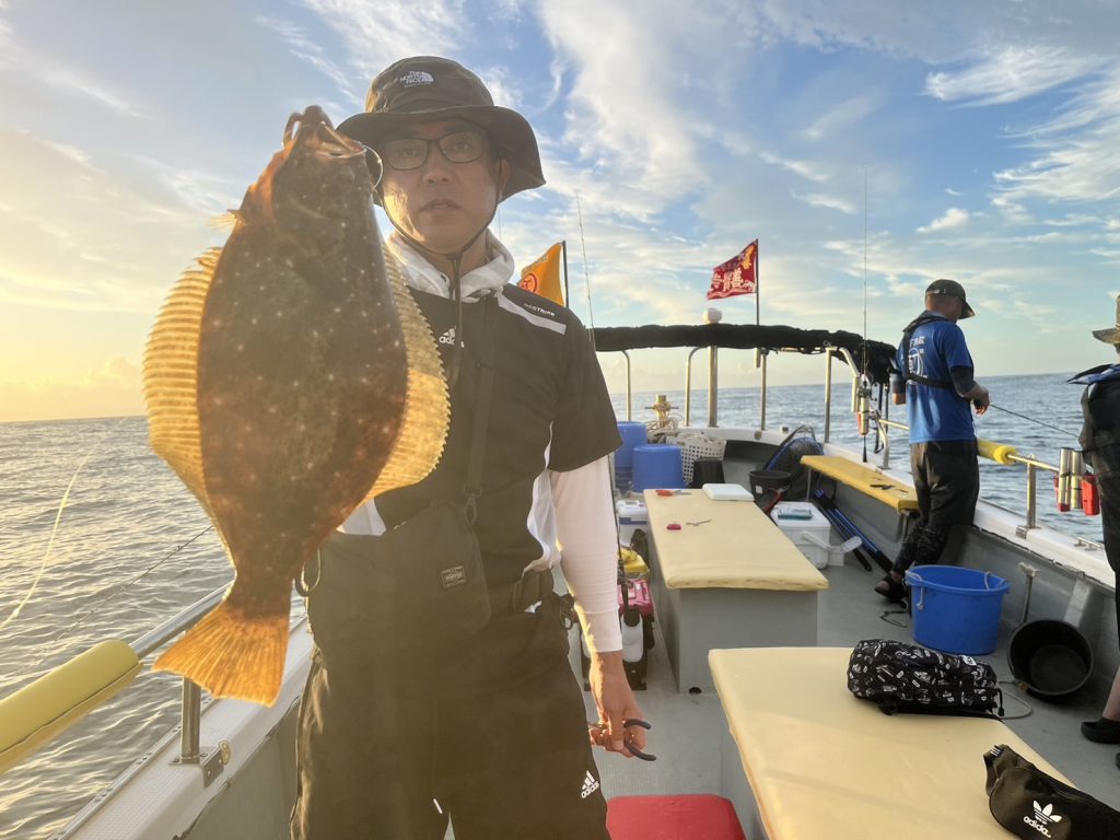 本日の釣果は、真鯛、ハナダイ、ホウボウ、カナガシラ、ヒラメ、イシガレイ、ギガアジ、メバル、イナダ…9目。