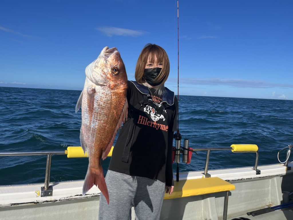 こちらの釣りガールは初乗船で初真鯛!おめでとうございます㊗