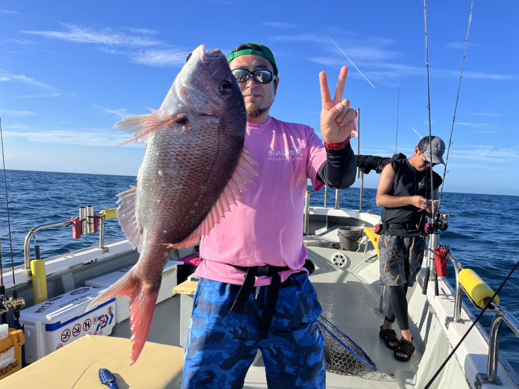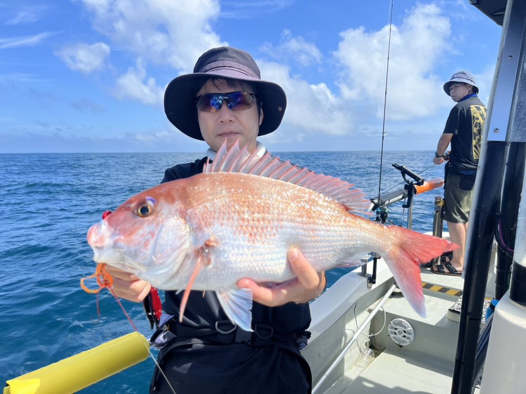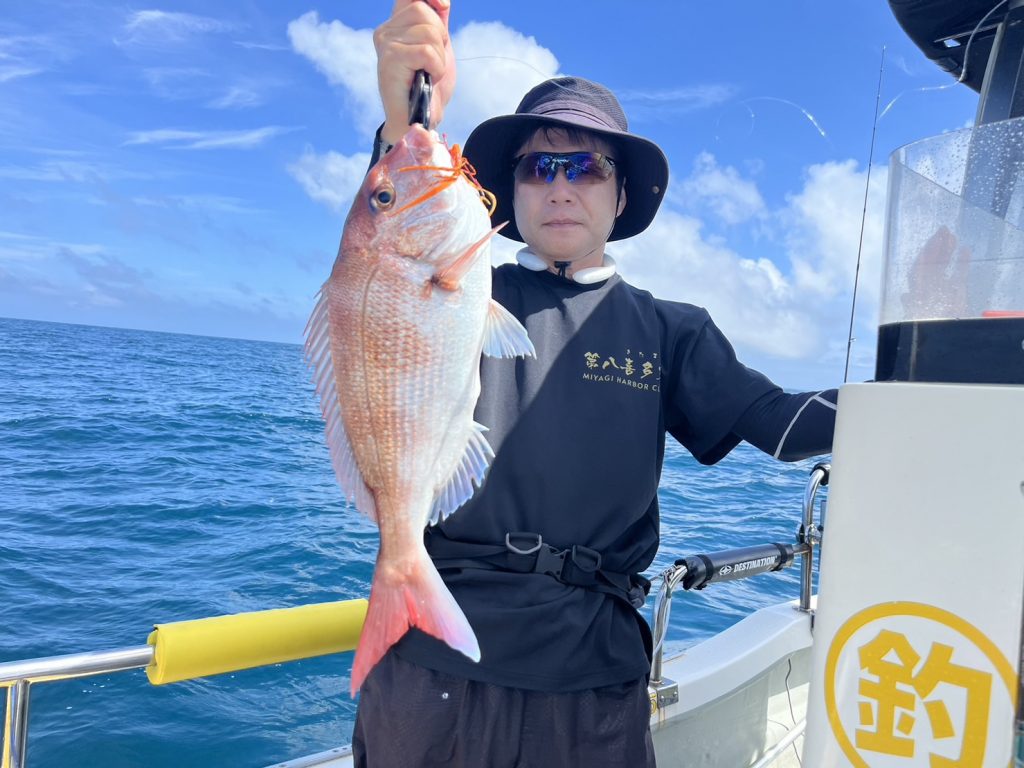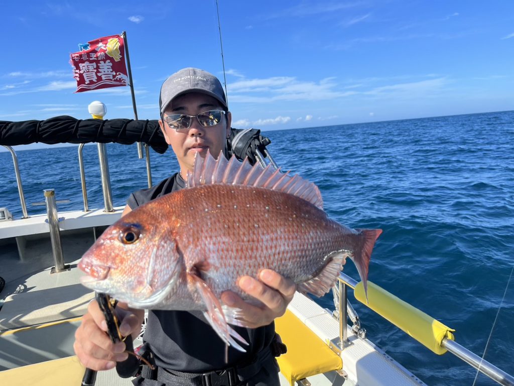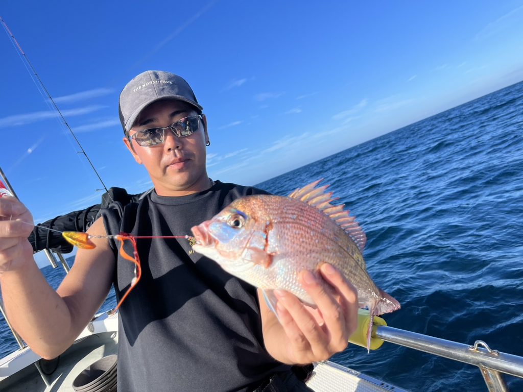 すると一投目からいきなり本命真鯛をキャッチ!
