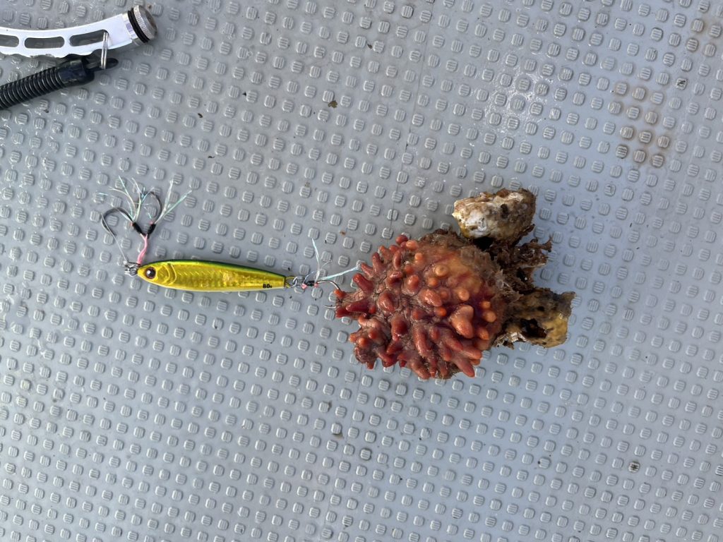 本日の釣果は、真鯛、ハナダイ、ホウボウ、カナガシラ、ヒラメ、ワラサ、メバル、アイナメ、メジ、サバフグ、ホヤ…11目。