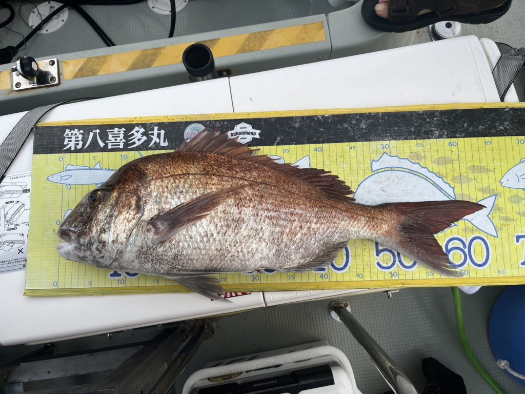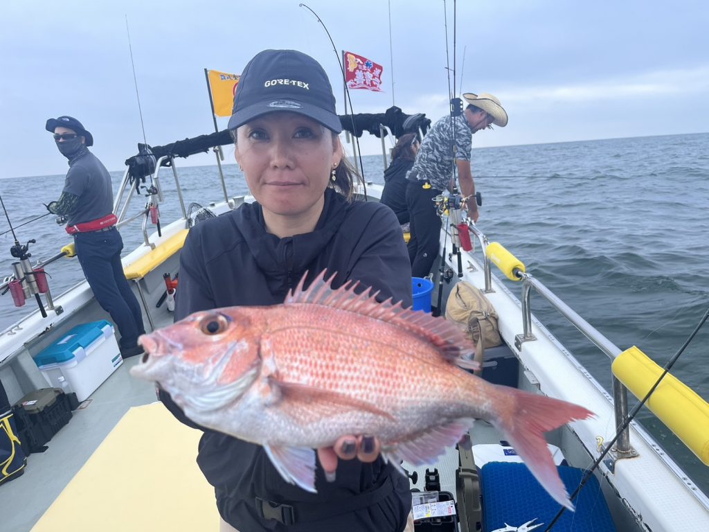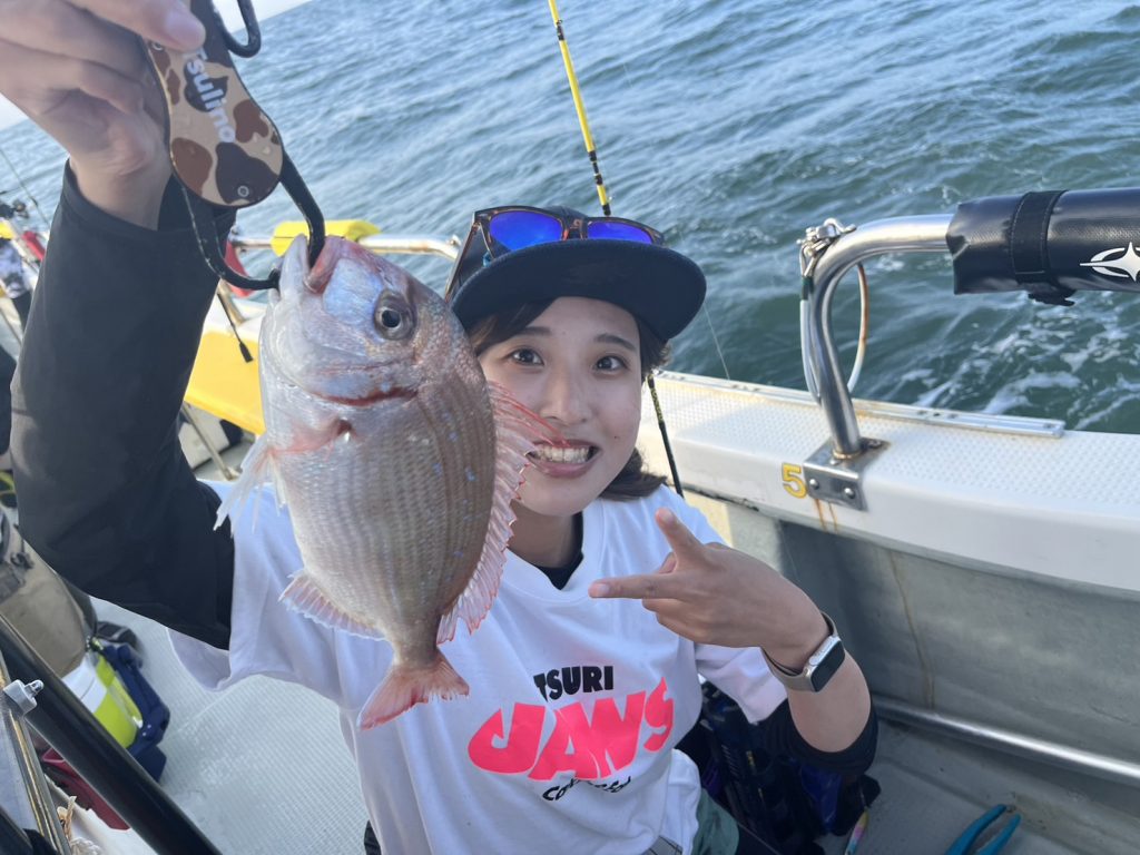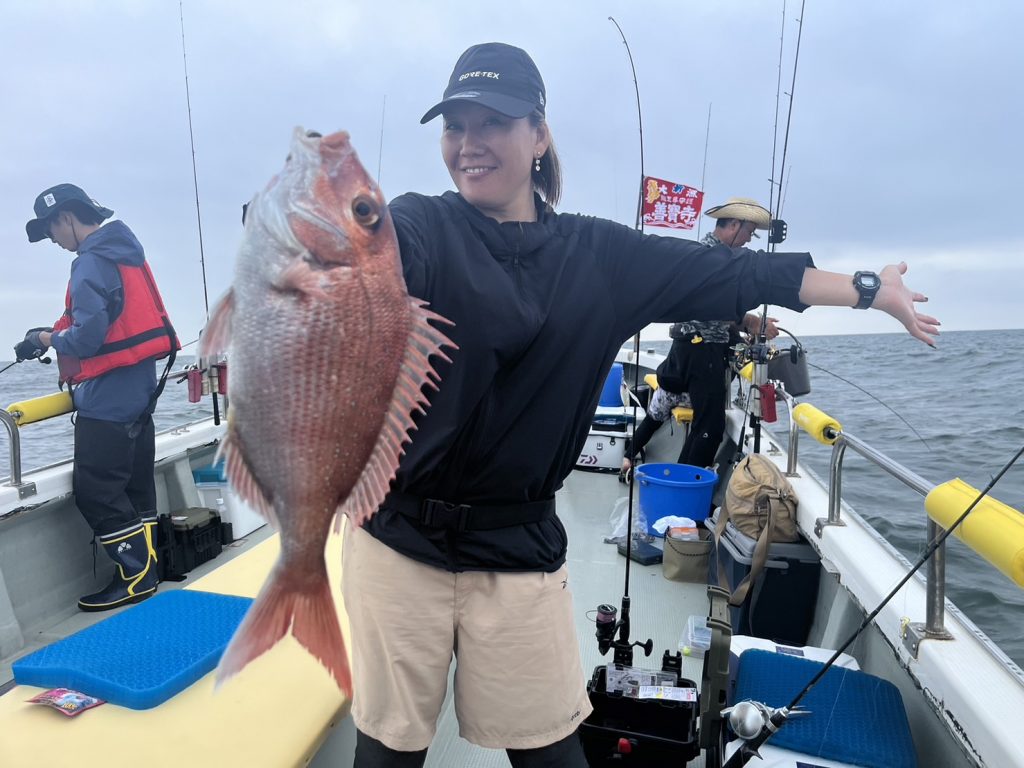 こちらの釣りガールも初乗船で真鯛キャッチ!おめでとうございます㊗