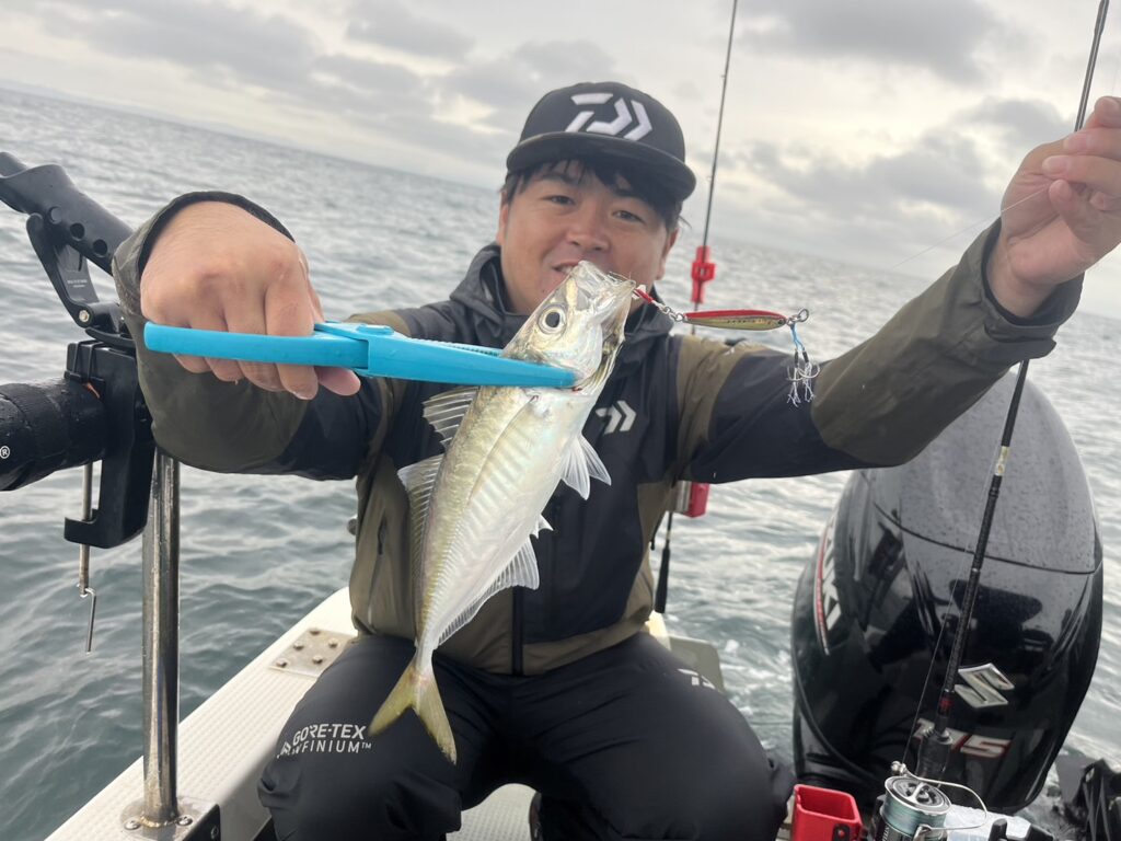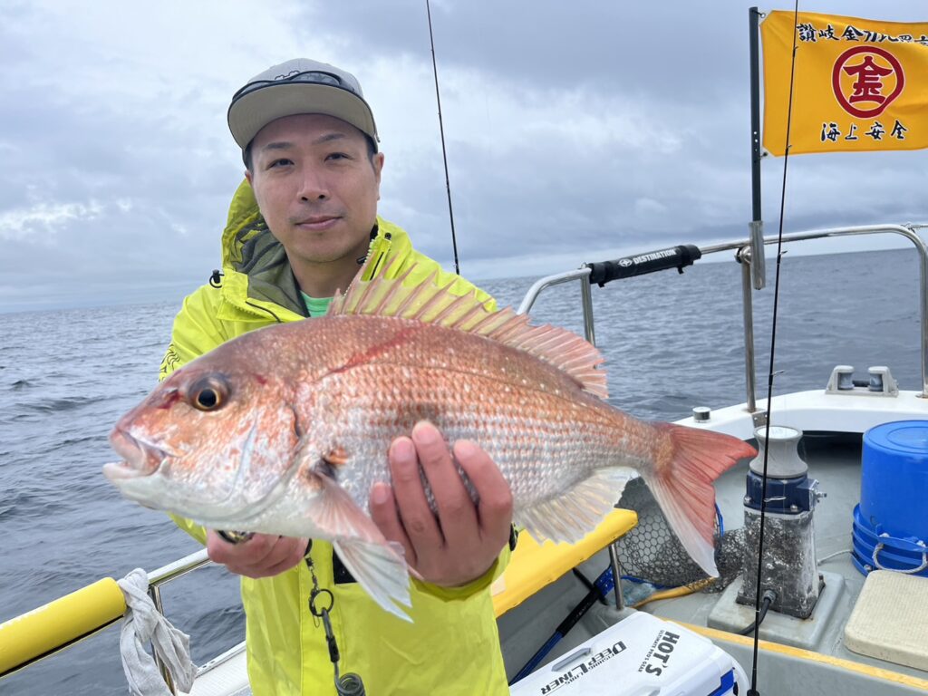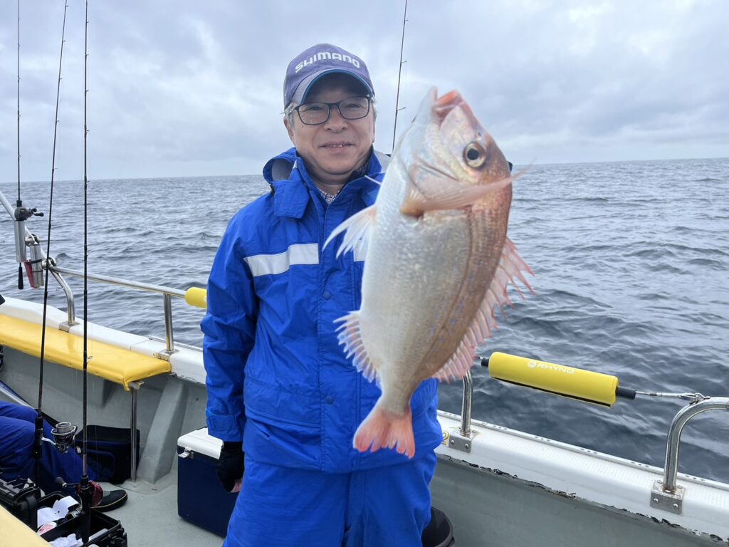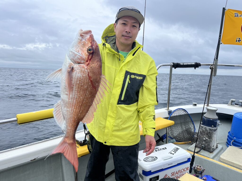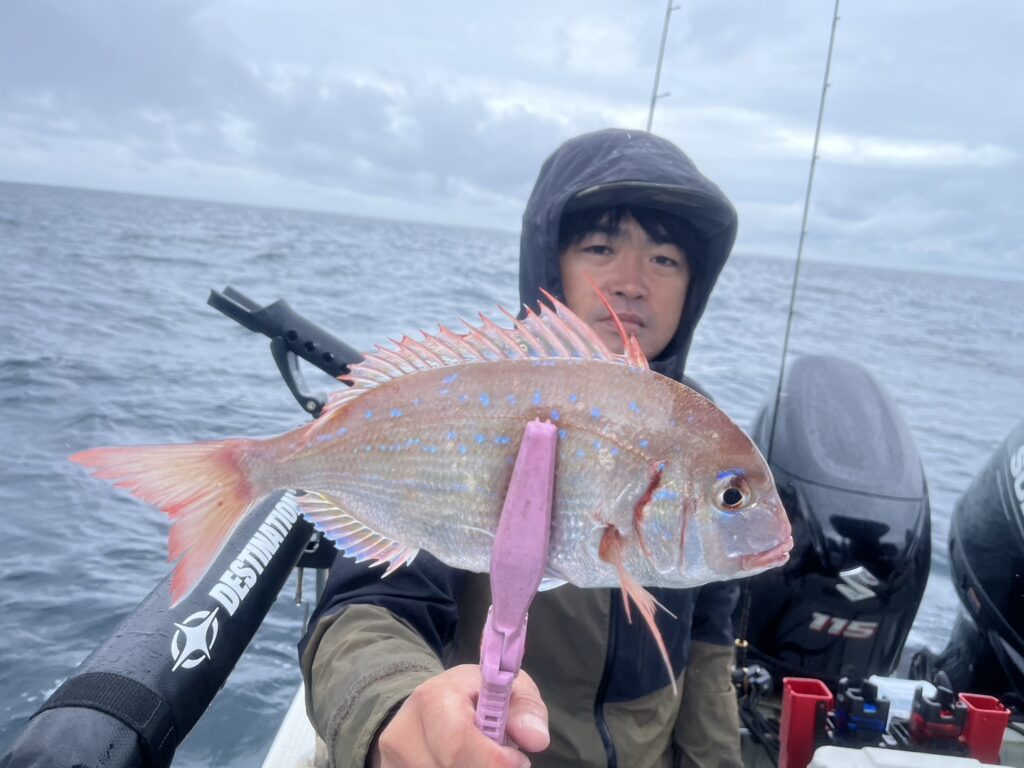 今日も雨の降る中、渋いながらも何とか本命真鯛を含む多魚種をキャッチして頂きました!