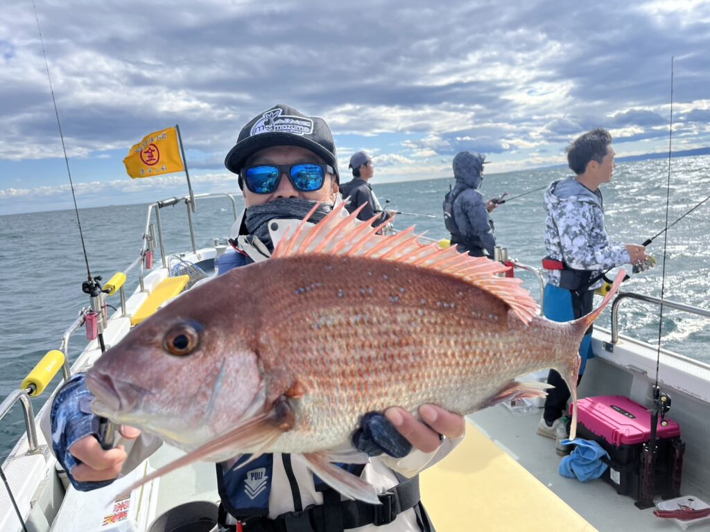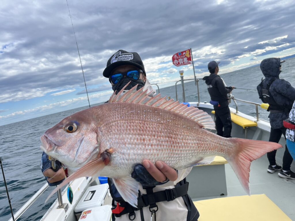 竿頭のアングラーは真鯛は3枚!
