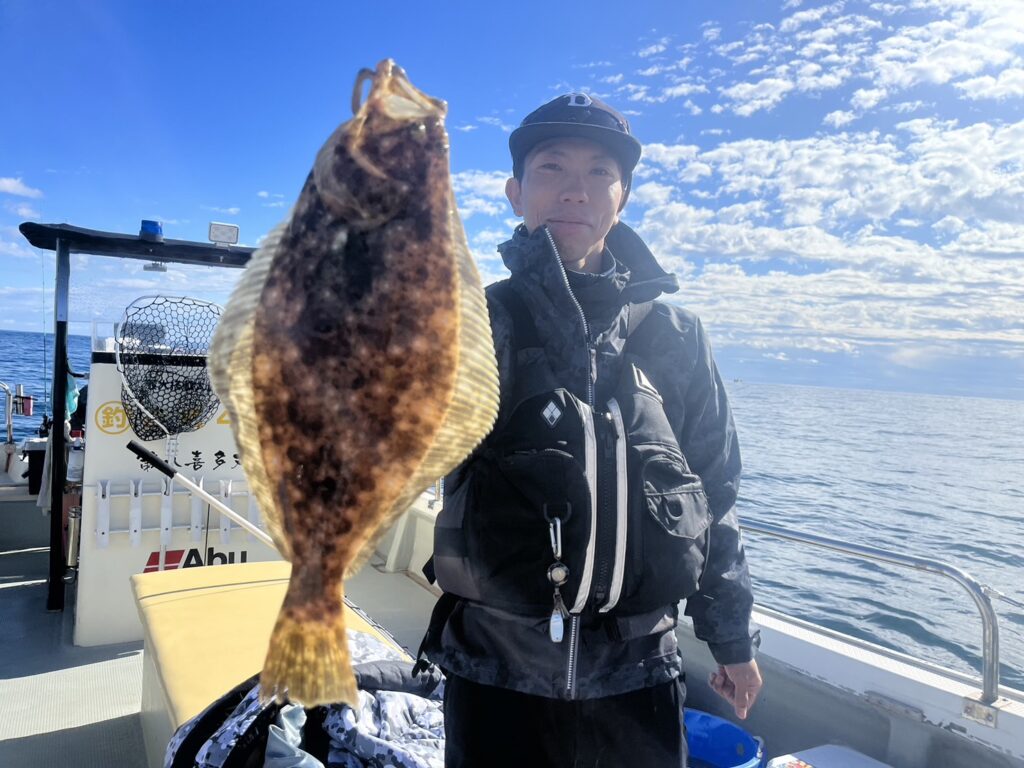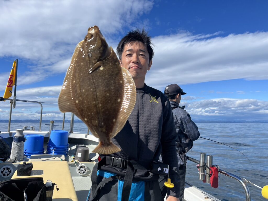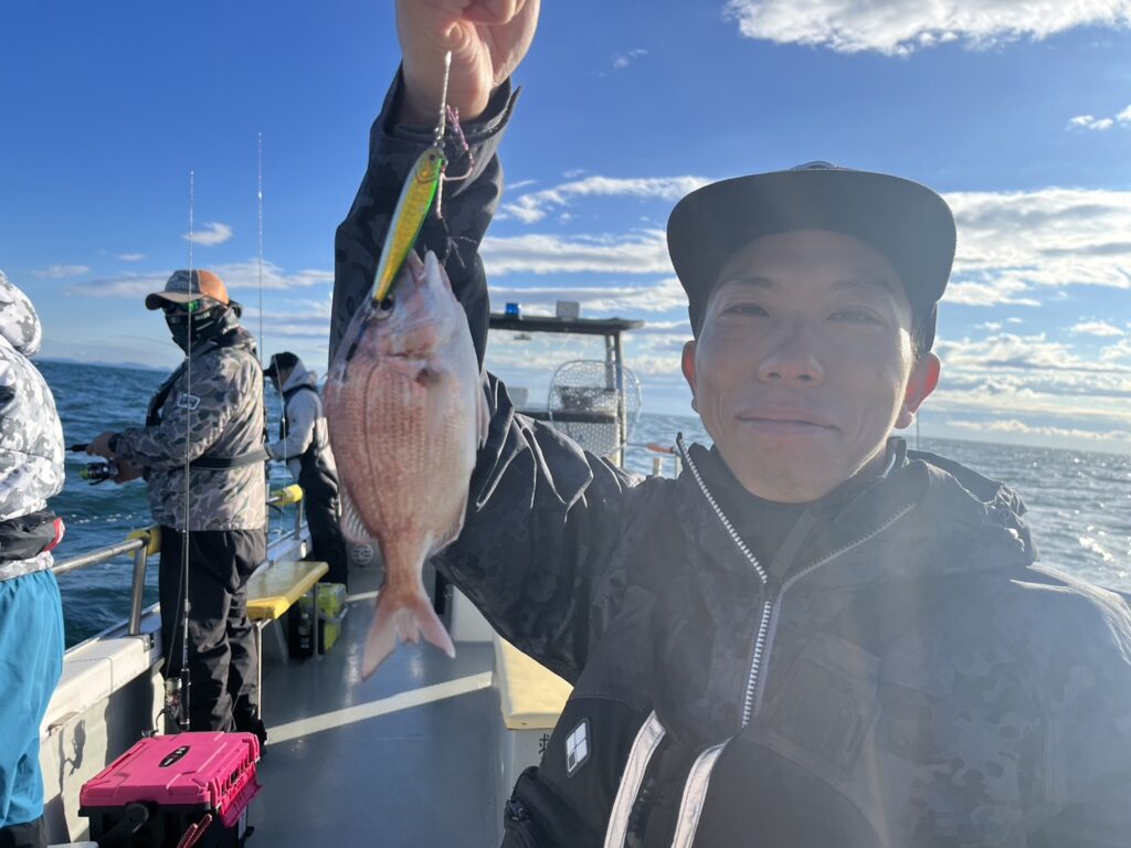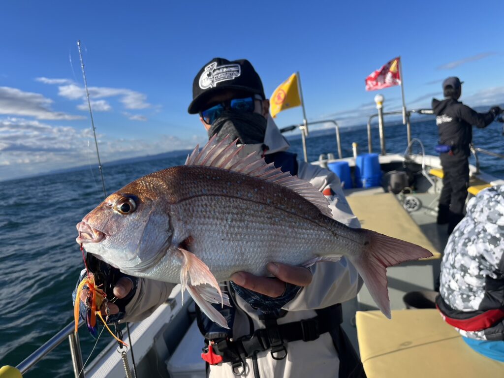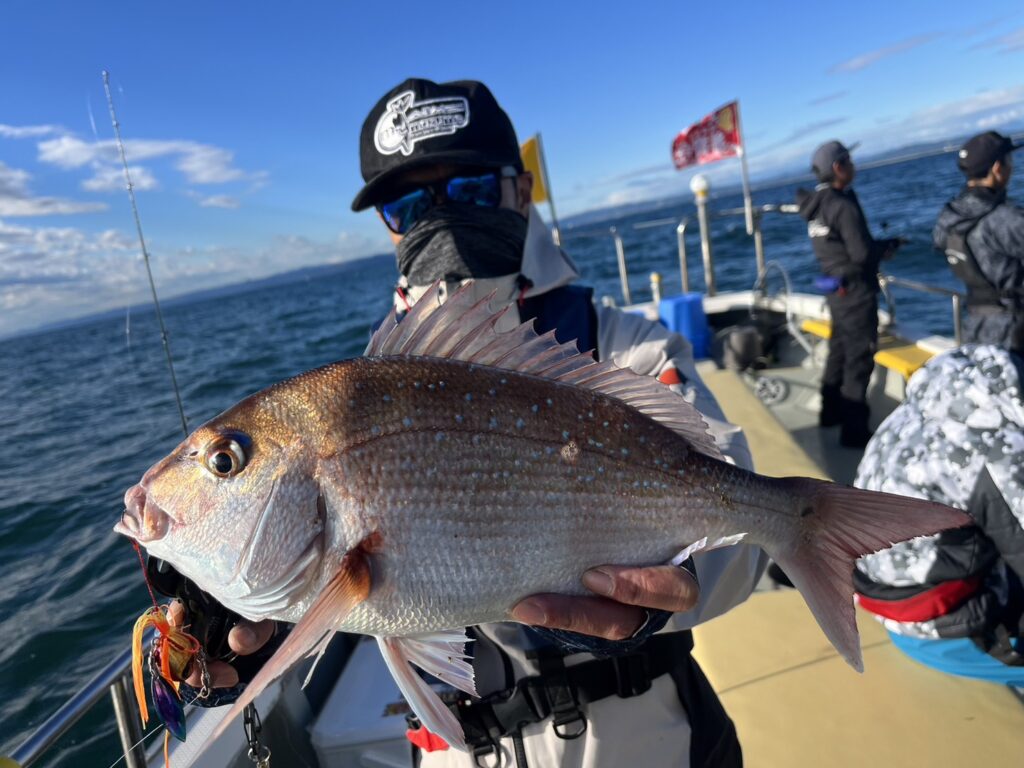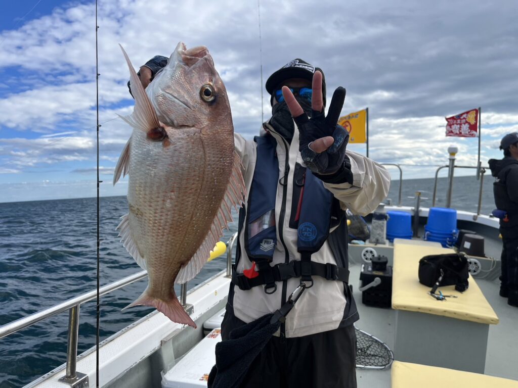 ヒラメはコンスタントに釣るアングラーのいる中、最後に何とか本命真鯛をキャッチして風の吹いたタイミングで早上がりとなりました。