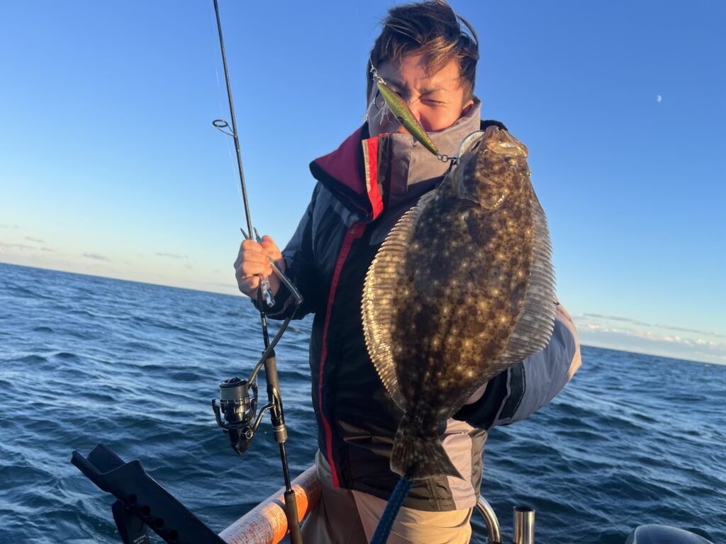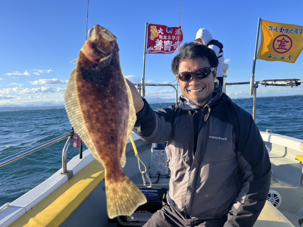その後は何かしらをポツリポツリと拾って夕まずめの時間帯に入りパタパタ真鯛をとヒラメをキャッチして本命真鯛は7枚チャリコ4枚!