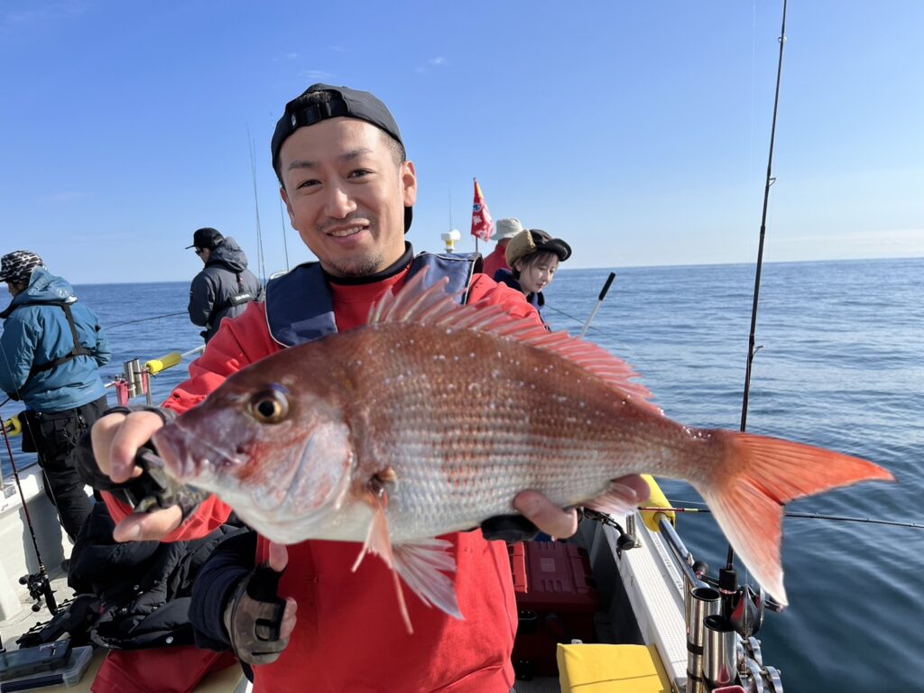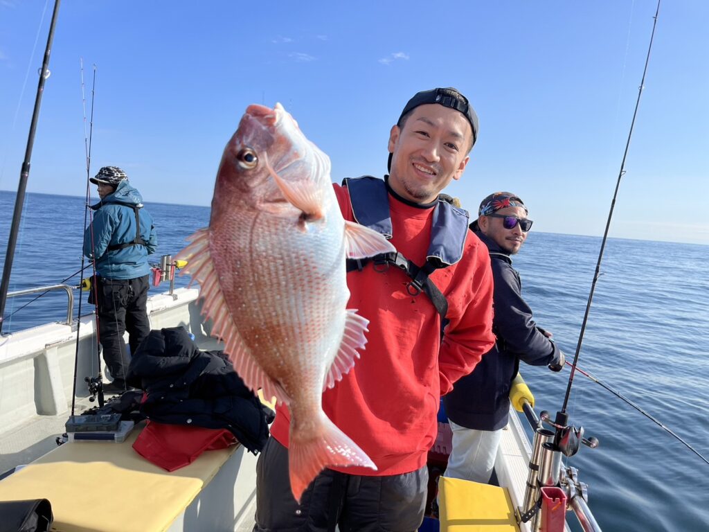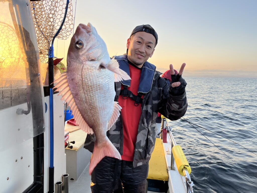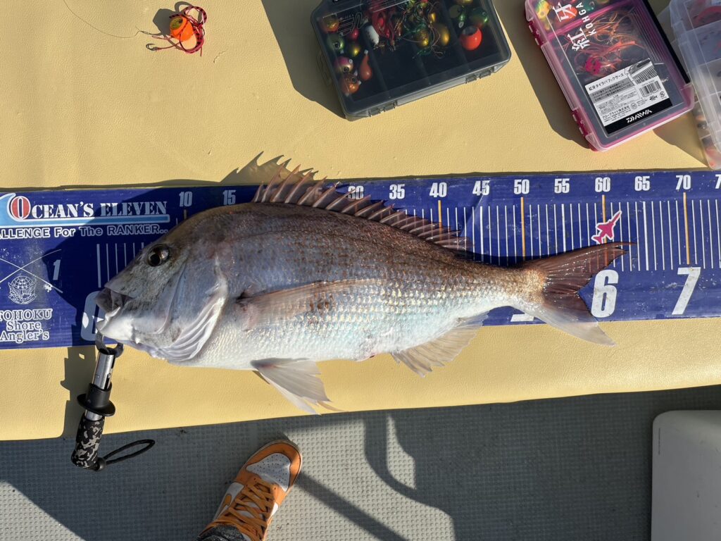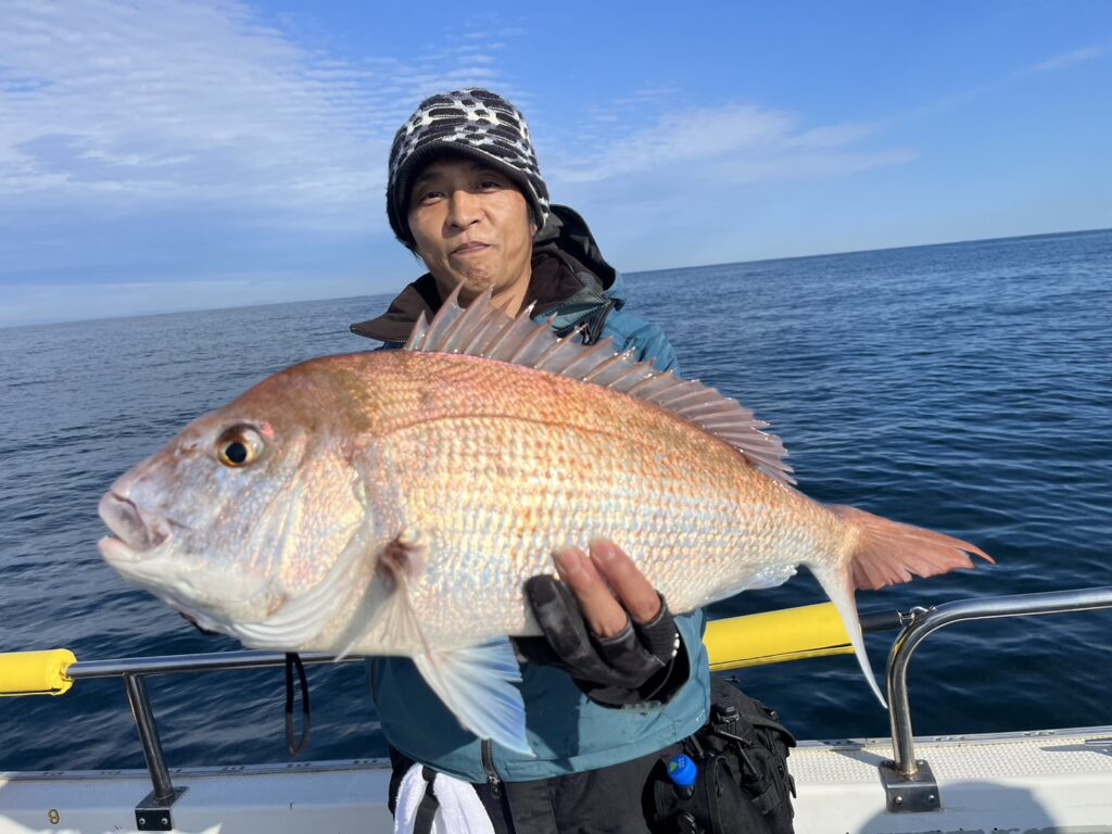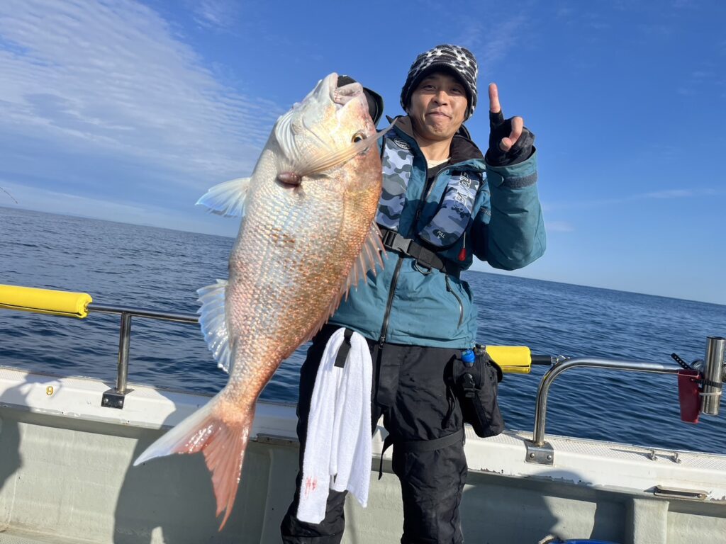 そんな中でも潮と風が動いたタイミングで本命真鯛は62cmを筆頭に5枚キャッチ!