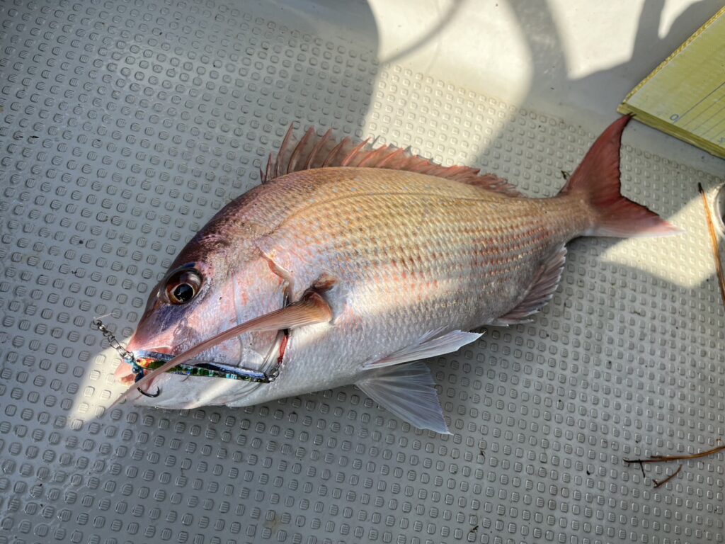 昼前になりようやく本命真鯛をキャッチするも、今日は青物が多すぎてなかなか真鯛まで届かず…。
